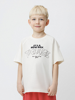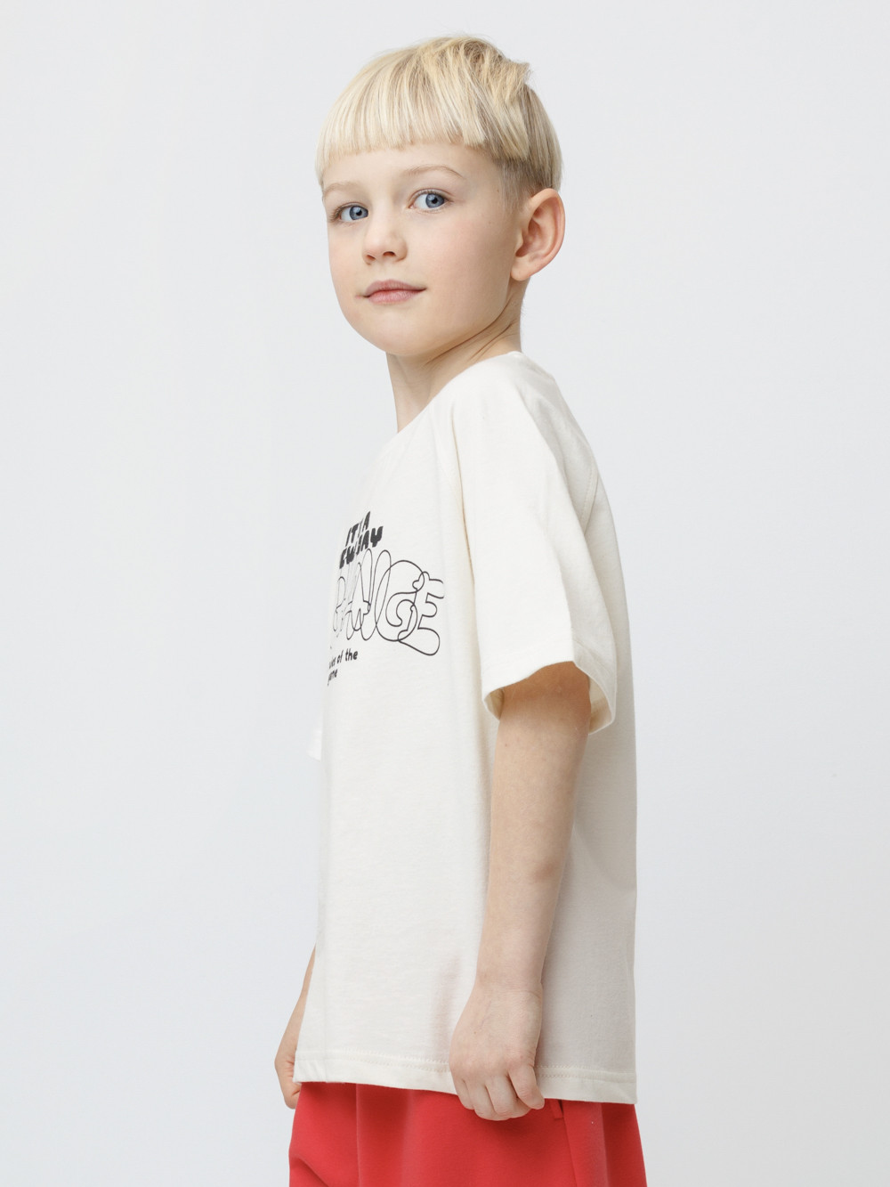 Футболка для мальчика из высококачественного трикотажного полотна. Оригинальный принт выполнен из стойких текстильных красителей. Изделие сохраняет цвет и форму после многократных стирок. Все трикотажные полотна производятся в соответствии с нормами швейцарского сертификата ЭкоТекс.