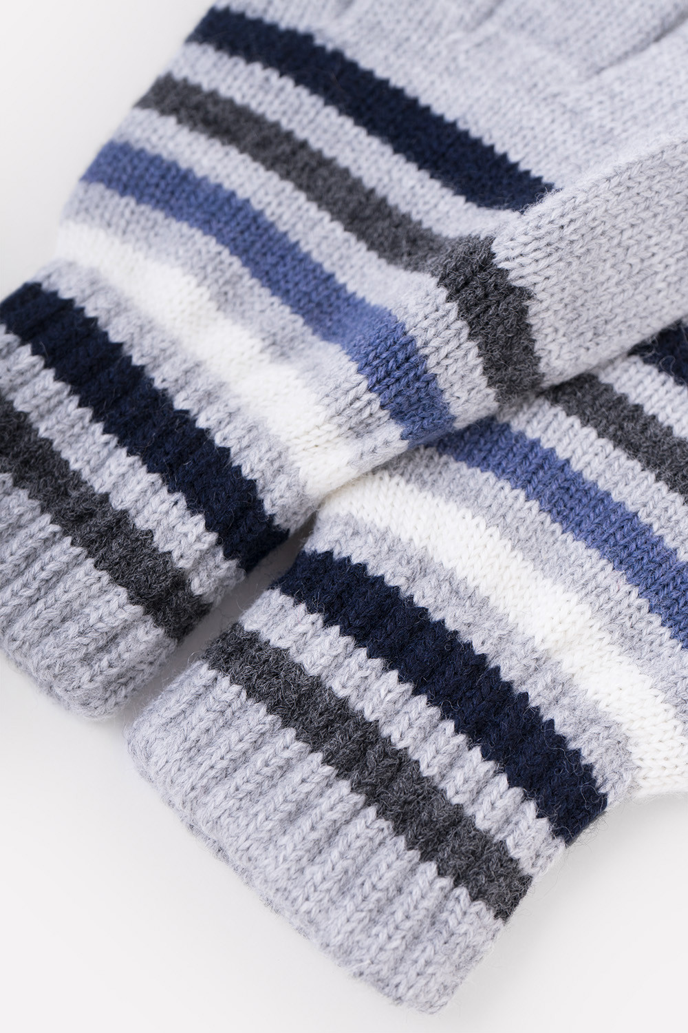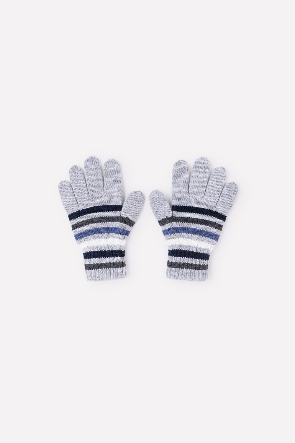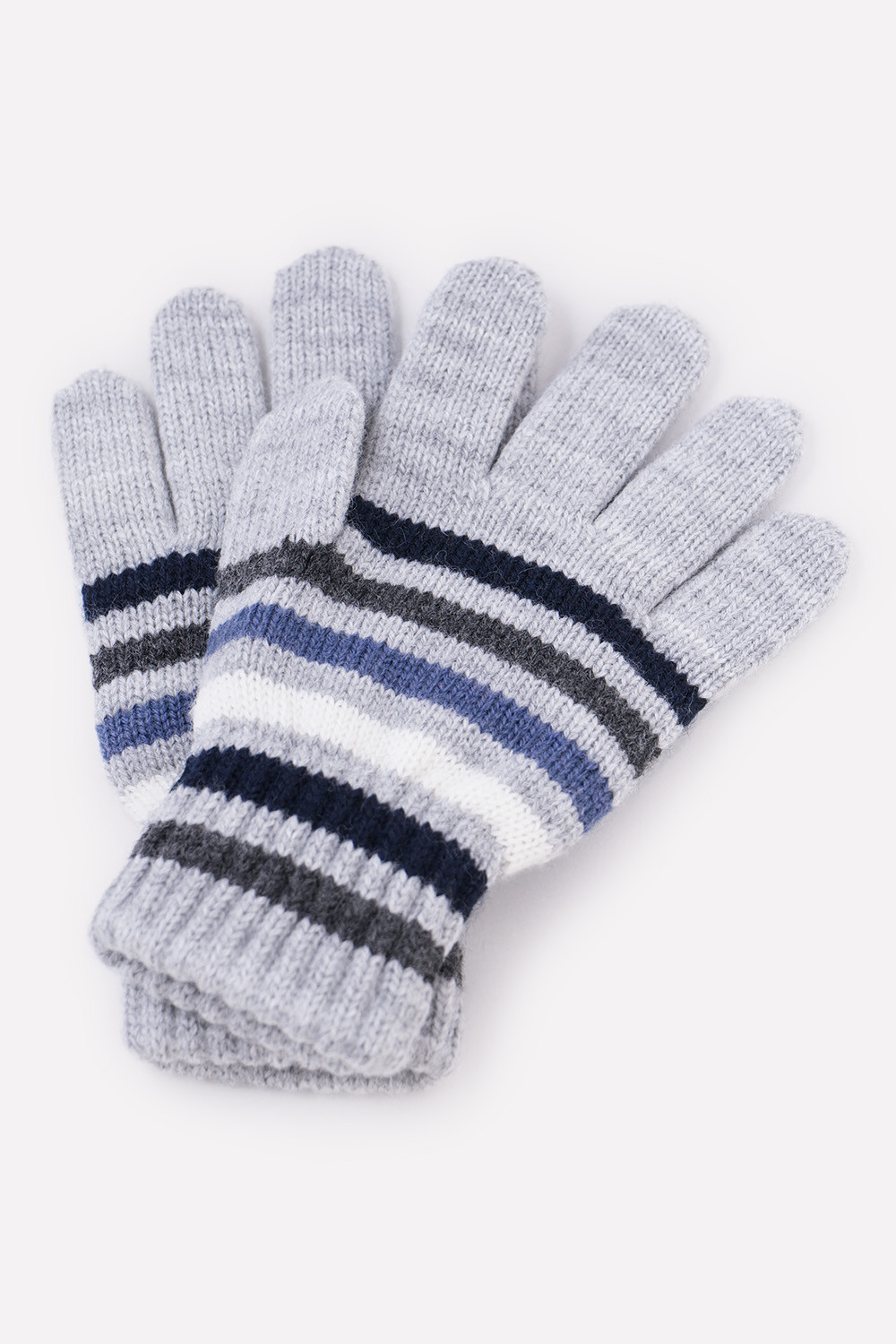 Перчатки в полоску из полушерстяной пряжи. Эластичные манжеты фиксируют перчатку на руке.