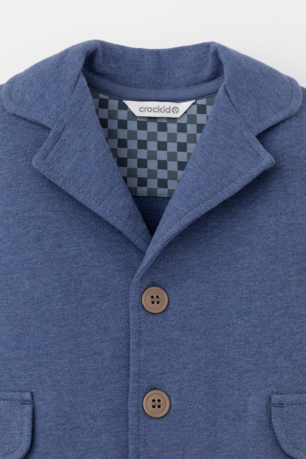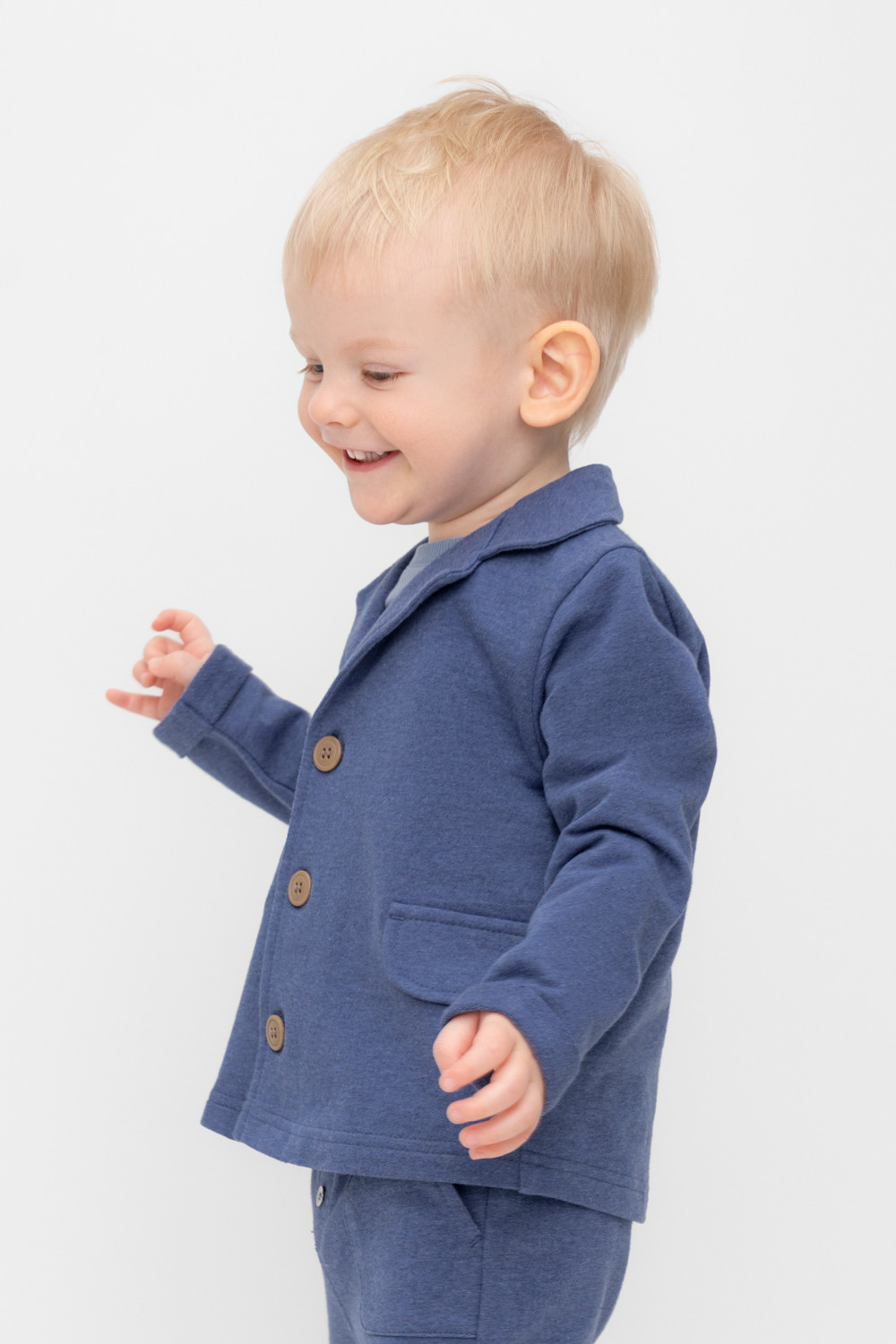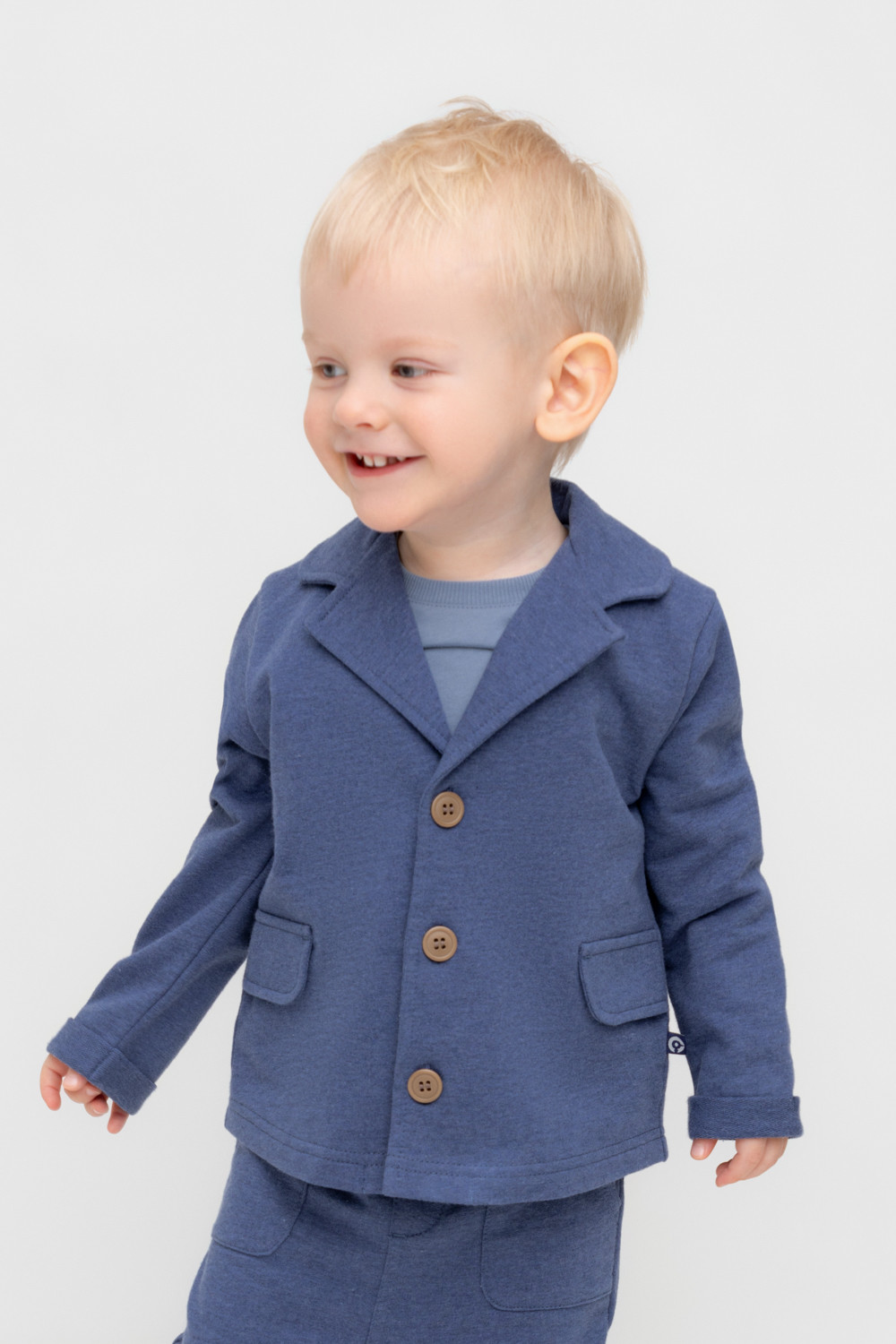 Трикотажный пиджак на пуговицах для мальчика, выполнен из петельчатого футера.