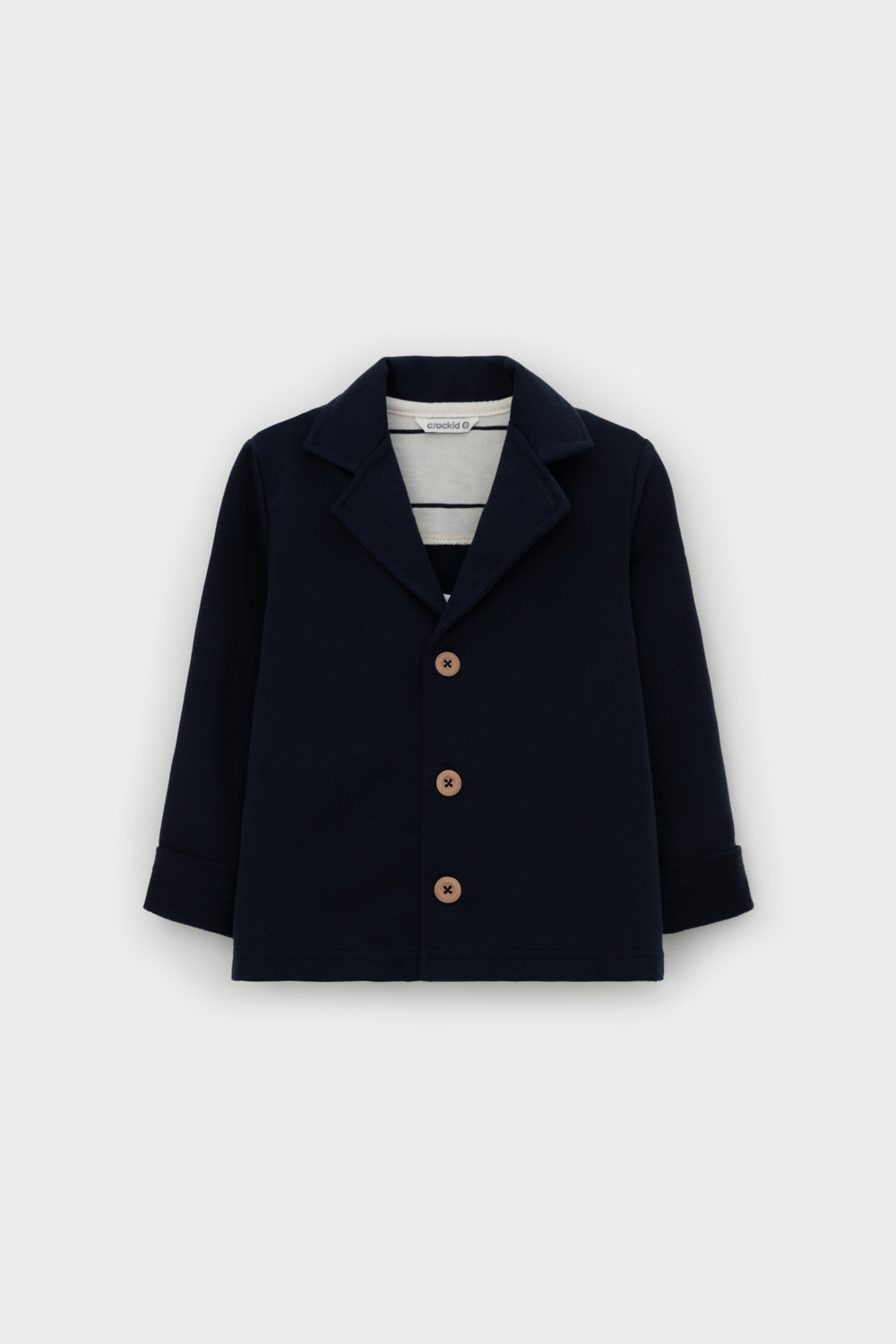 Пиджак для мальчика из высококачественного трикотажного полотна футер петля. Застёгивается на пуговицы. Изделие сохраняет цвет и форму после многократных стирок.