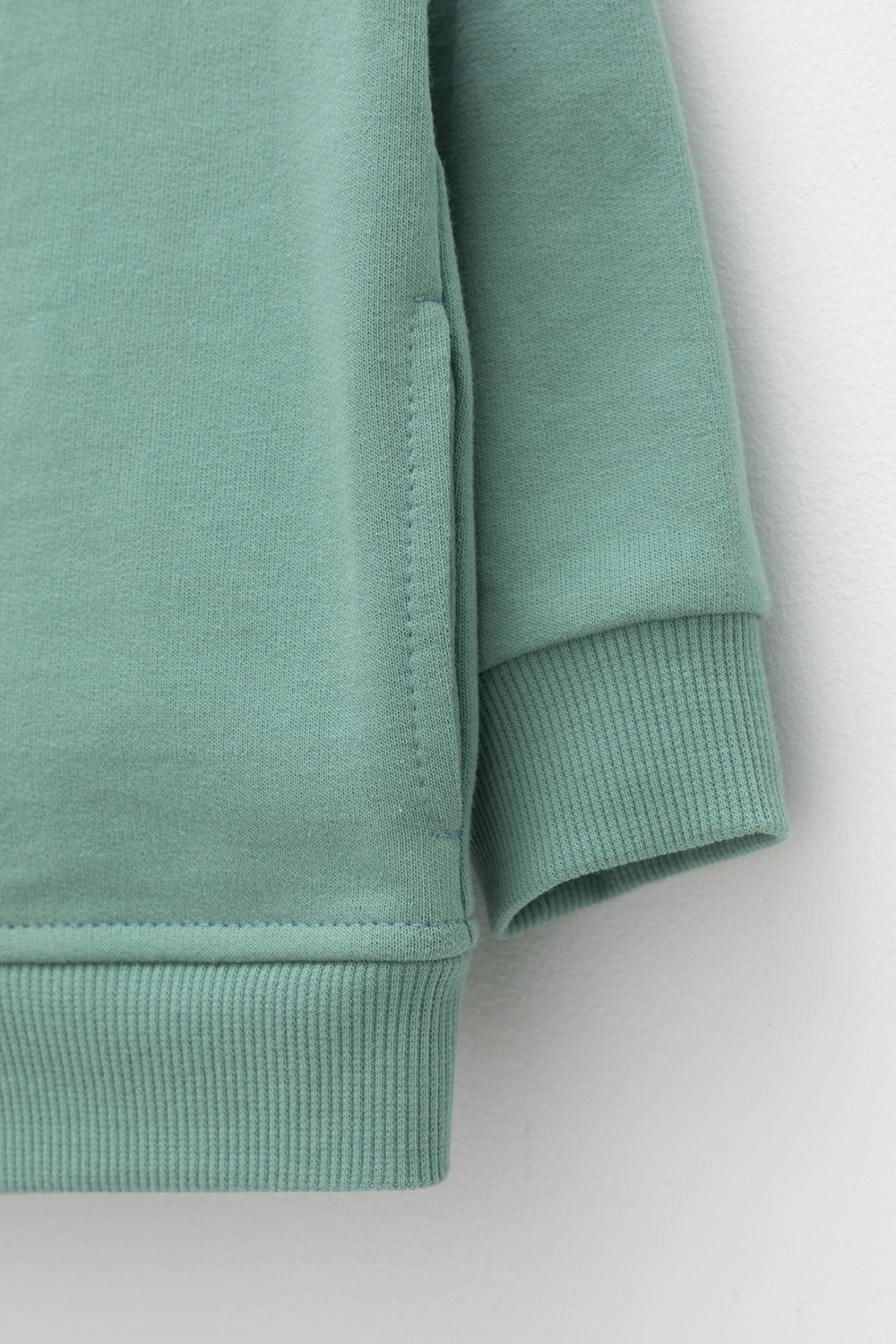 Бомбер однотонный для мальчика из мягкого трикотажа. Воротник, манжеты и пояс выполнены из эластичного трикотажа в рубчик Застёгивается на молнию. По бокам два удобных кармана.