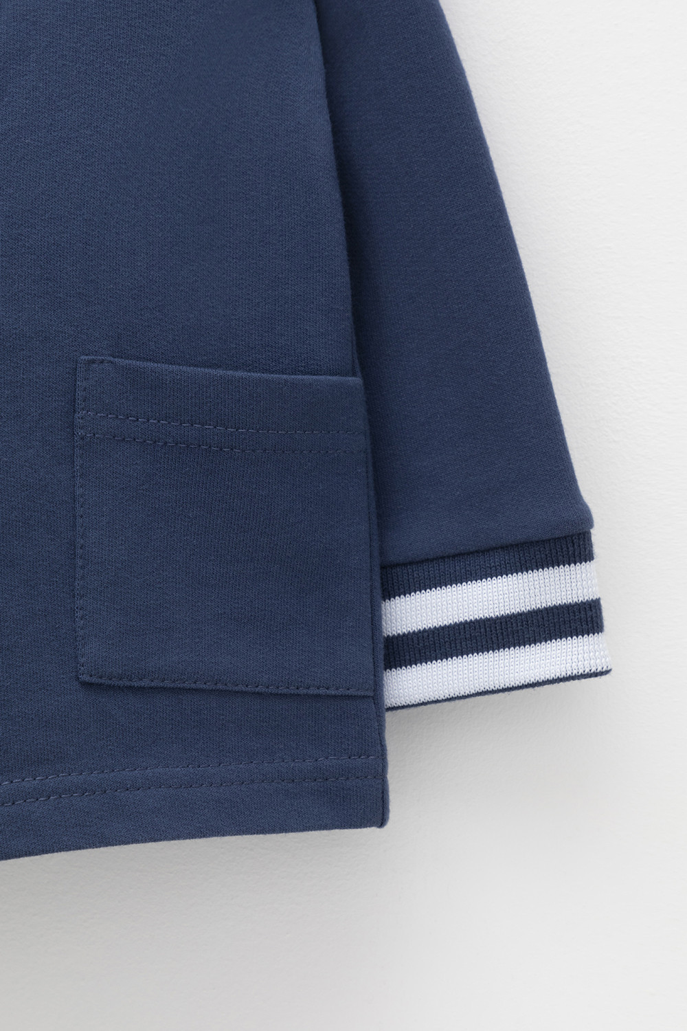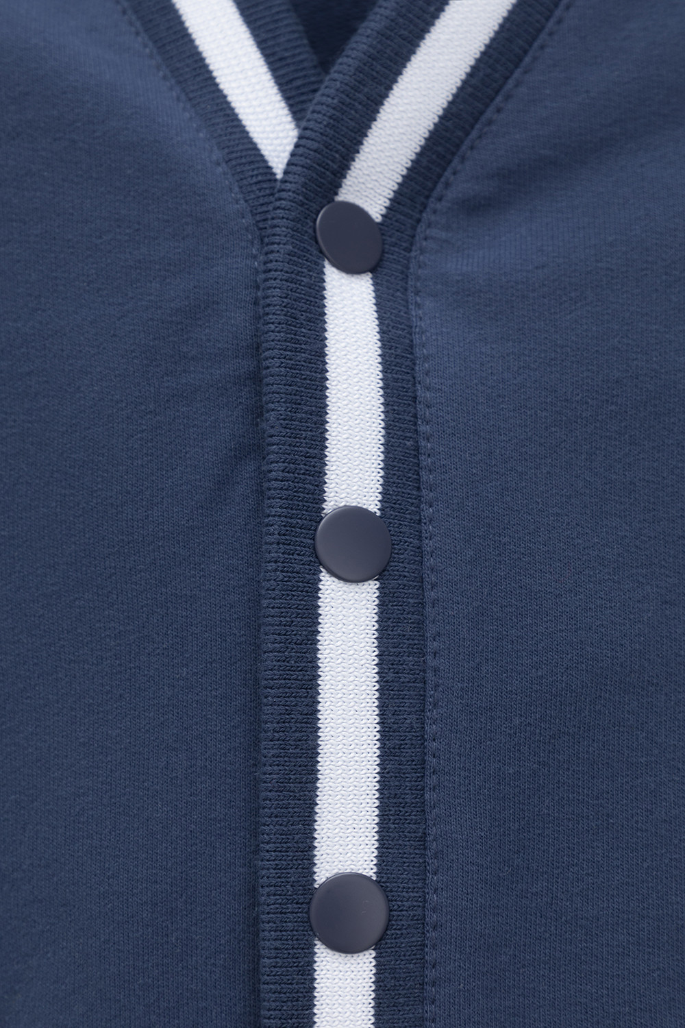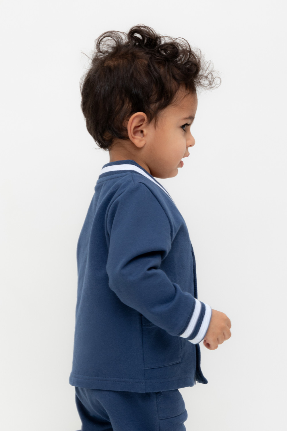 Жакет для мальчика из высококачественного трикотажного полотна футер петля. Застёгивается на кнопки. На рукавах эластичные вязаные манжеты. По бокам накладные карманы.