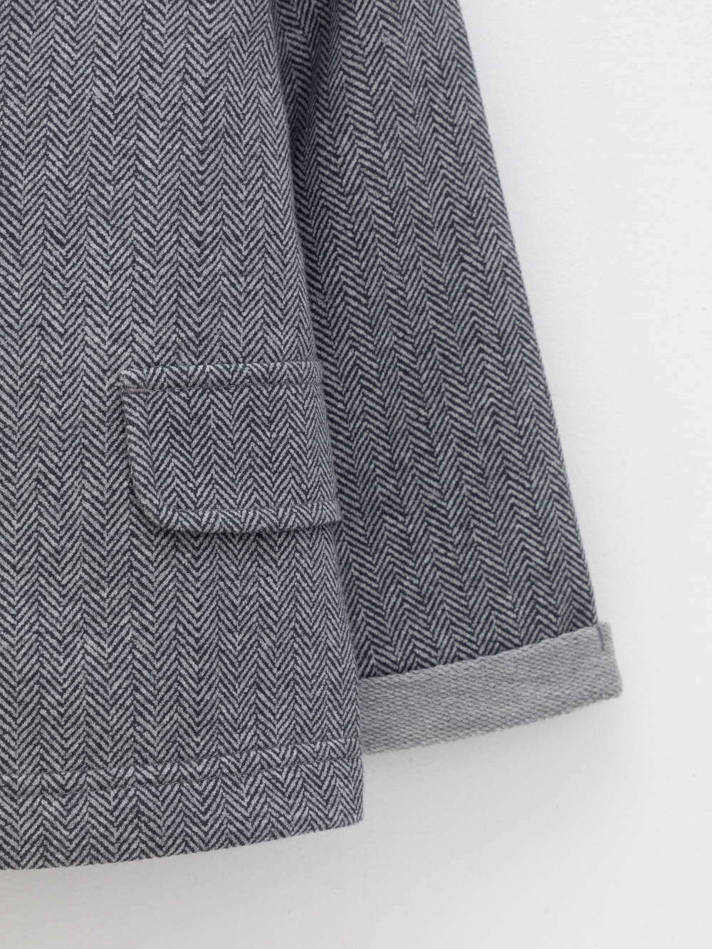 Жакет на пуговицах для мальчика. Изготовлен из высококачественного футера петли. У изделия длинные рукава с отворотами и имитированные карманы с клапанами. Внутри петелька из жаккарда. Все трикотажные полотна производятся в соответствии с нормами швейцарского сертификата ЭкоТекс.