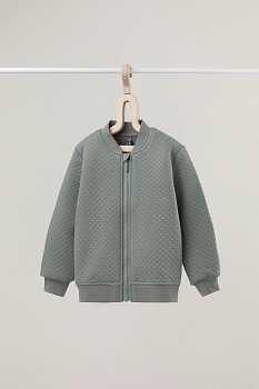 Тёплая куртка бомбер из капитония. Капитоний – это стёганое трикотажное полотно с утеплителем из полиэстеровой нити. Изделие застёгивается на молнию и имеет мягкие эластичные манжеты и пояс из рибаны. По бокам два удобных кармана. Все трикотажные полотна производятся в соответствии с нормами Швейцарского сертификата ЭкоТекс.