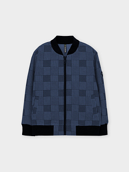 Бомбер для мальчика из мягкого трикотажа. Застёгивается на молнию. Воротник, манжеты и пояс -из эластичного трикотажа в рубчик. Спереди карманы с листочкой.