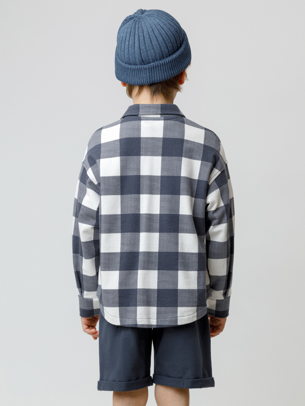 Свободная трикотажная рубашка для мальчика из мягкого петельчатого футера. Застёгивается на кнопки. Модель с закругленным низом и спущенным плечом. Рисунок в клетку выполнен из стойких текстильных гипоаллергенных красителей. Изделие сохраняет цвет и форму после многократных стирок. Все трикотажные полотна производятся в соответствии с нормами швейцарского сертификата ЭкоТекс.