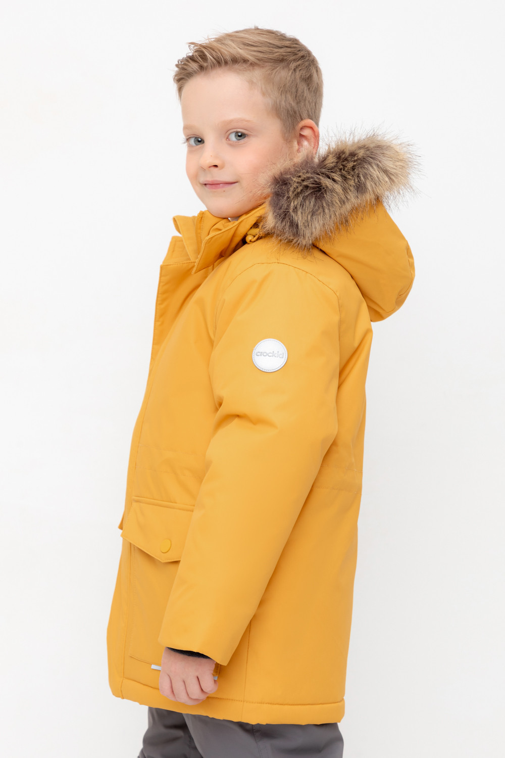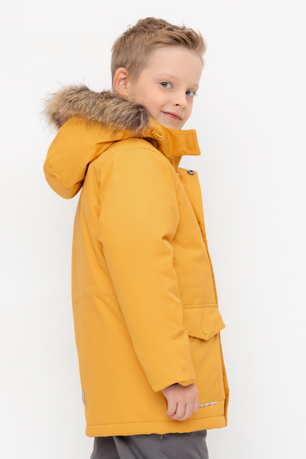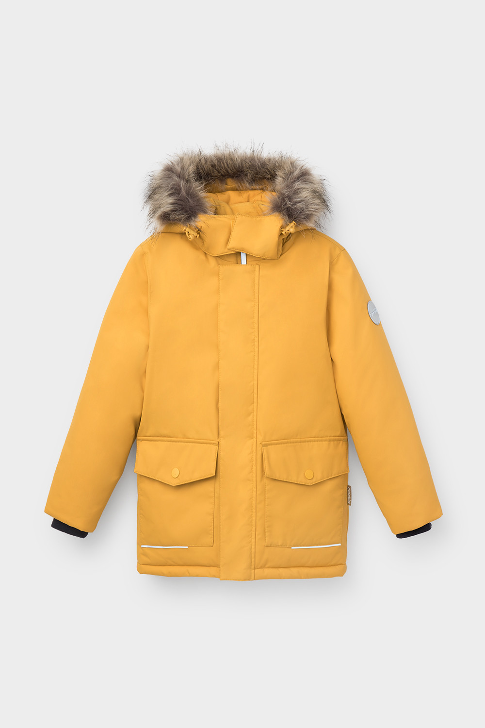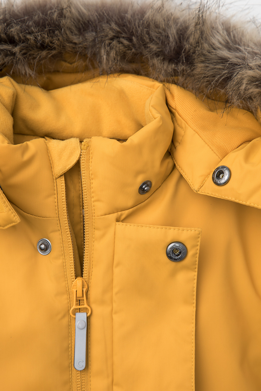 • Съемный капюшон на пилучках с отстегивающимся искусственным мехом