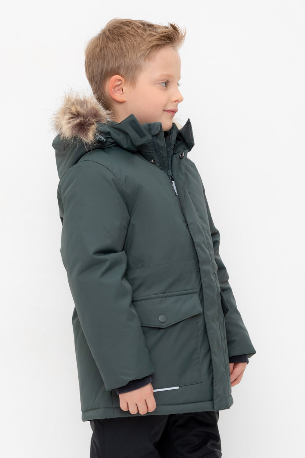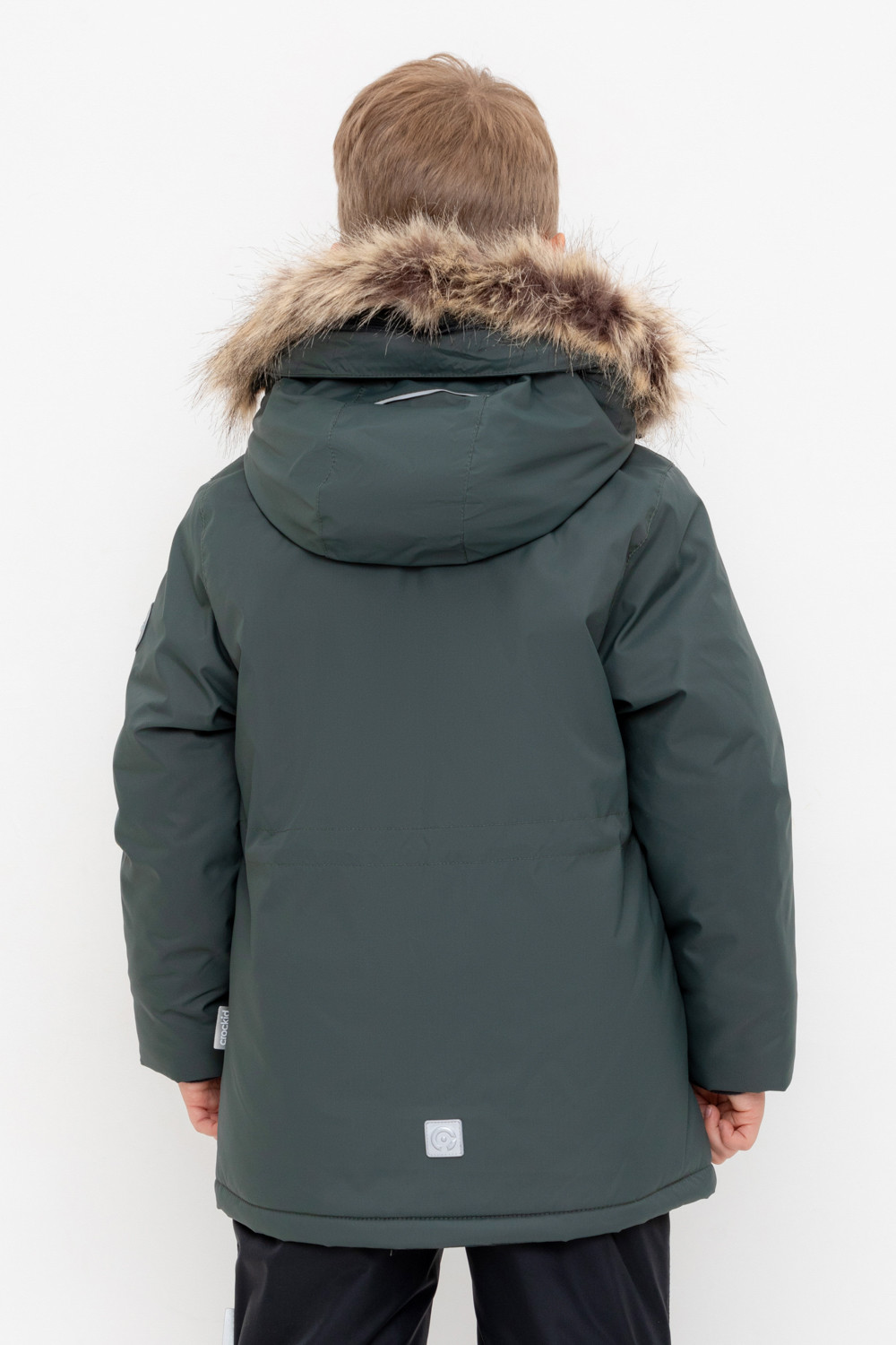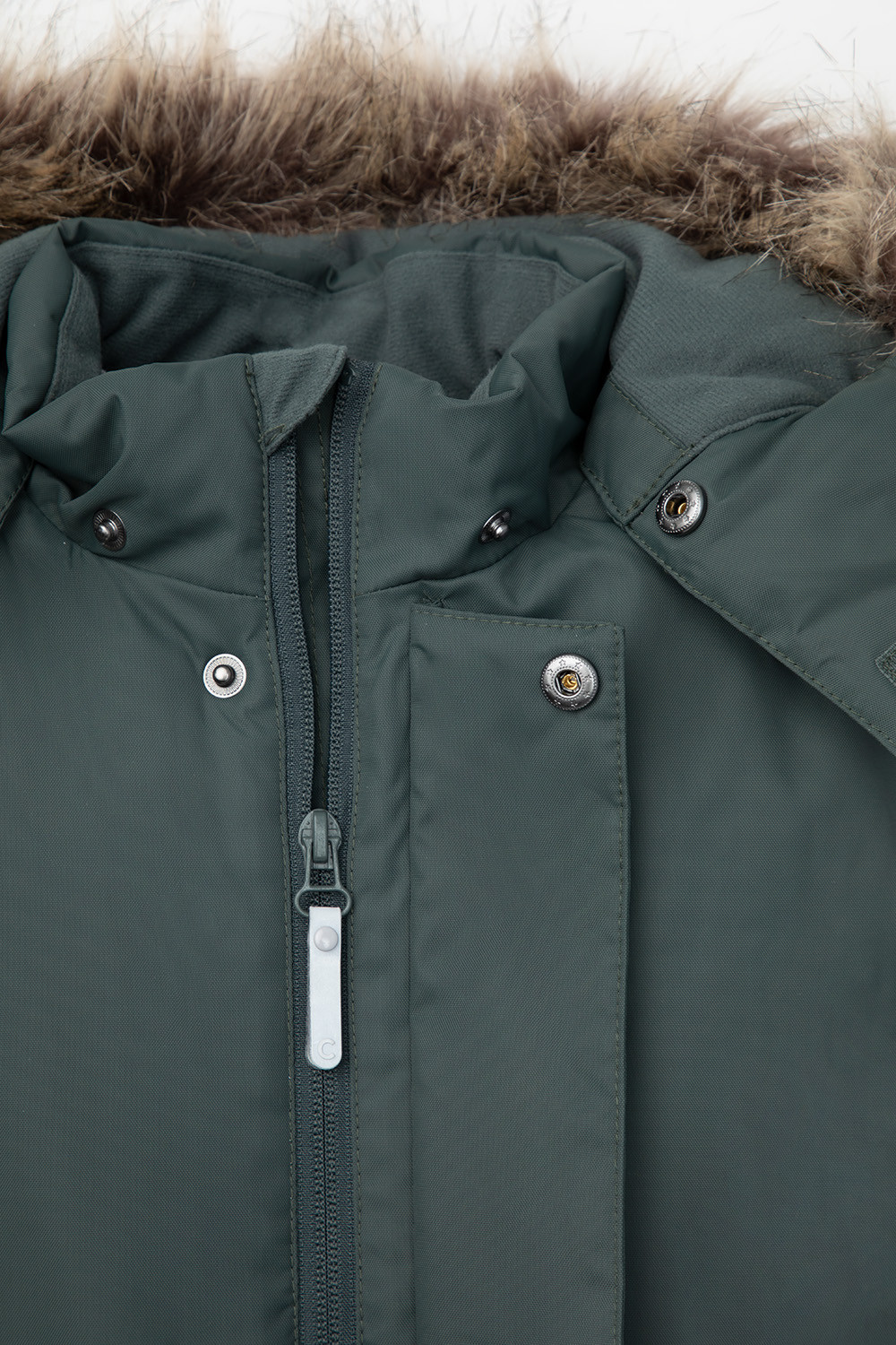 • Съемный капюшон на пилучках с отстегивающимся искусственным мехом