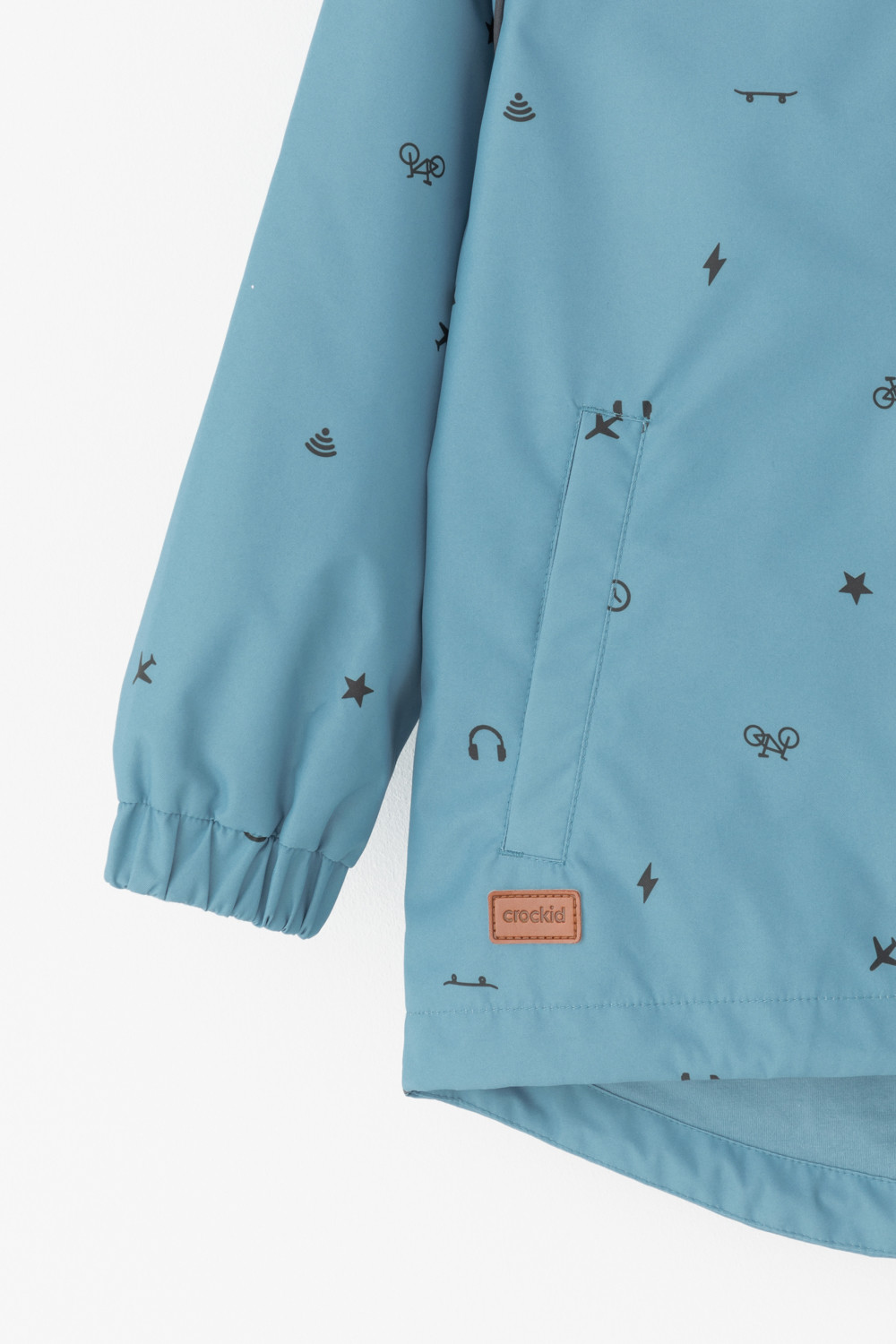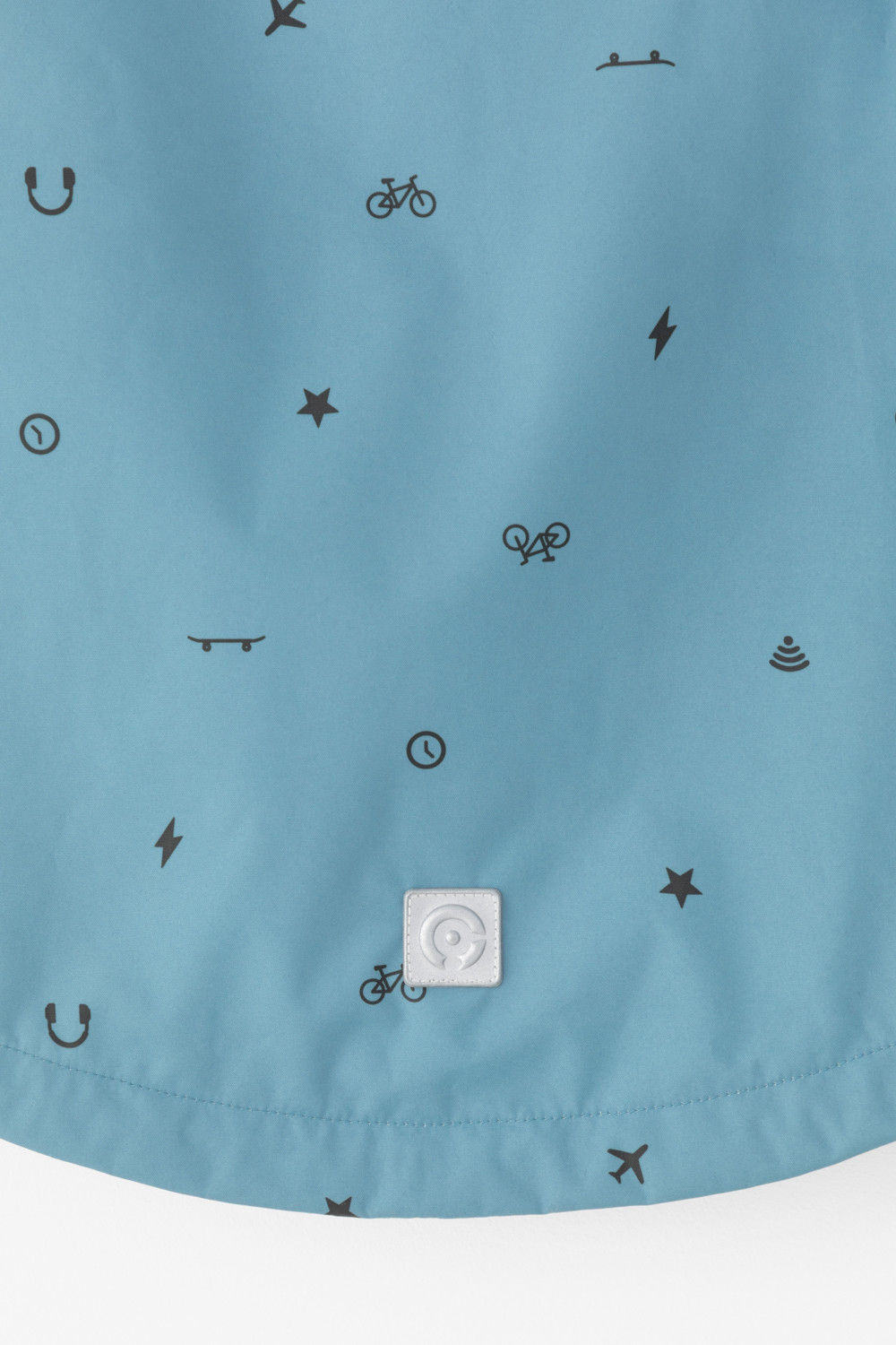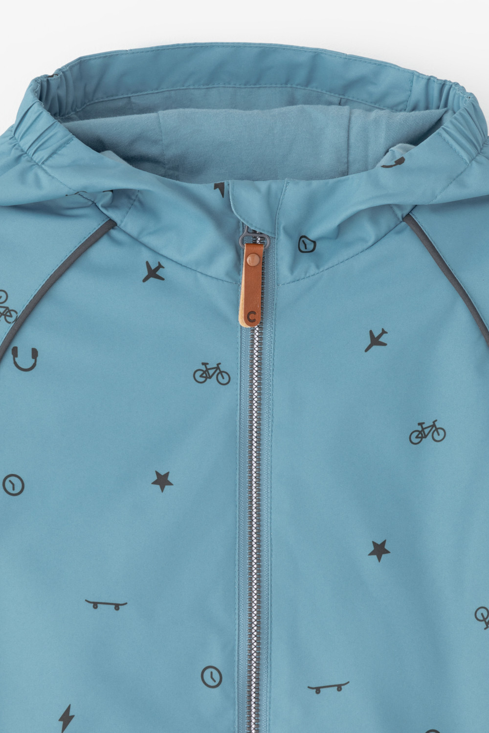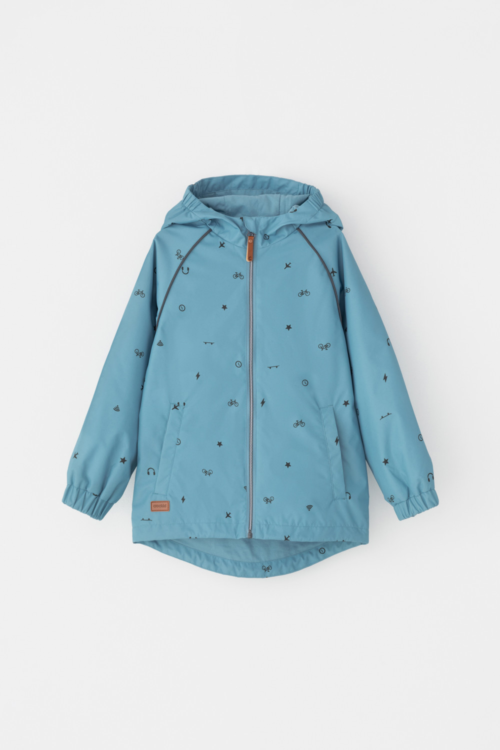 Ветровка для мальчика из мембранной ткани с дополнительной тефлоновой обработкой.  Верхняя мембранная ткань 1000/1000 с тефлоновым покрытием отталкивает воду и грязь и обладает «дышащими» свойствами. Подкладка выполнена 60% хлопка и 40% полиэстера. У изделия предусмотрена защита подбородка. Несъемный капюшон регулируется с помощью эластичного шнура со стопперами. Низ рукавов имеет эластичную резинку для лучшего прилегания. Во всех изделиях верхнего ассортимента для безопасности ребенка предусмотрены светоотражающие элементы.