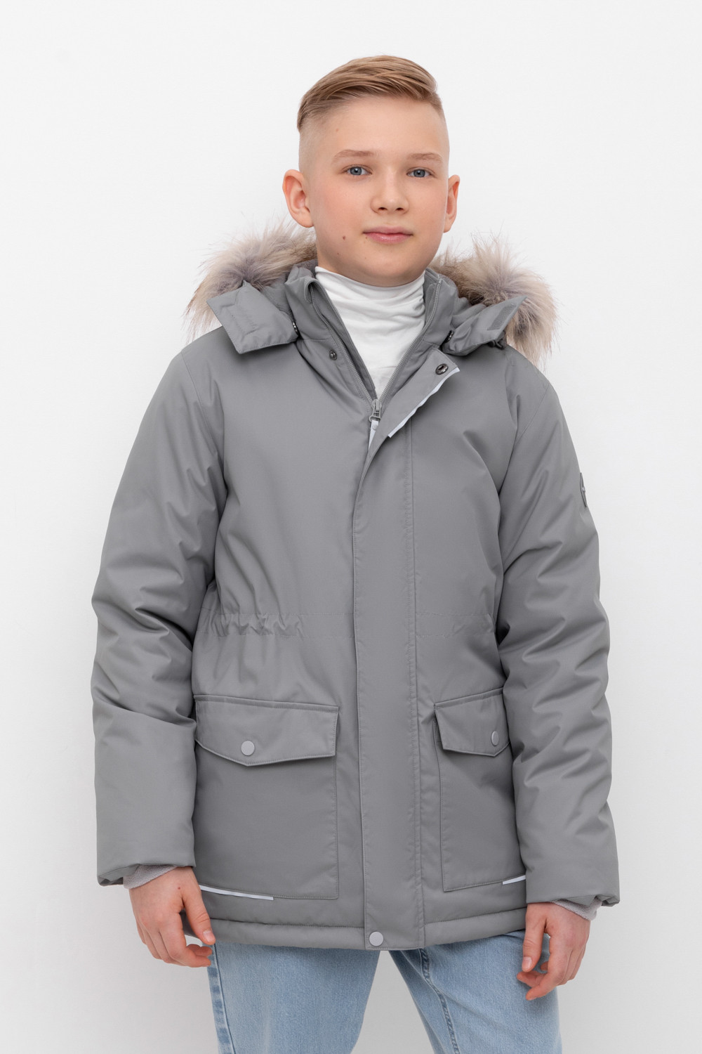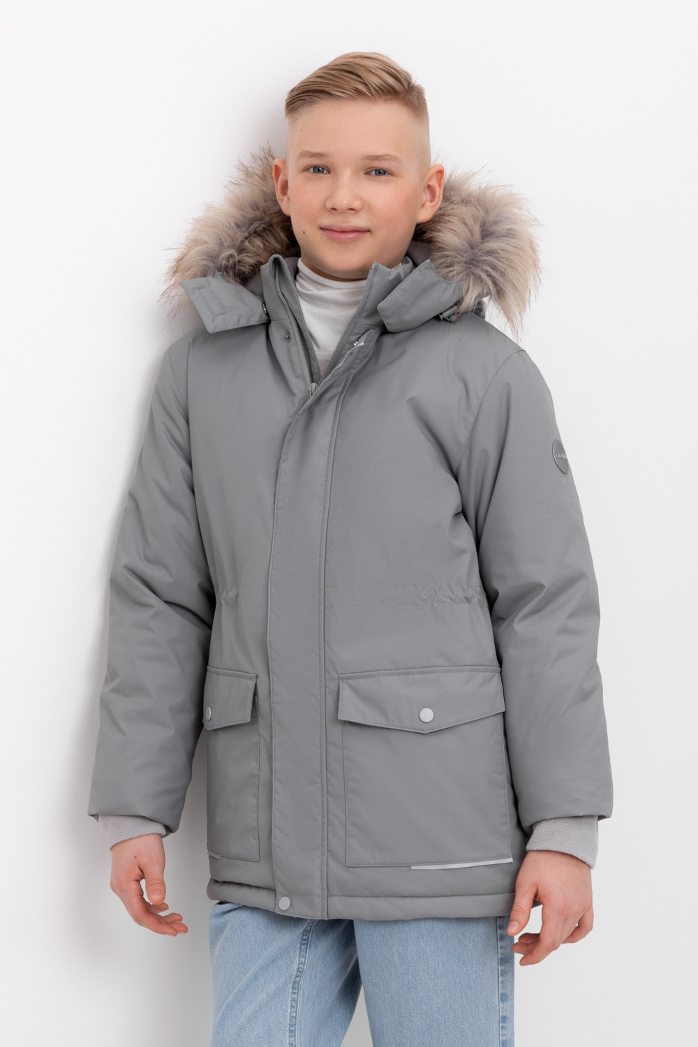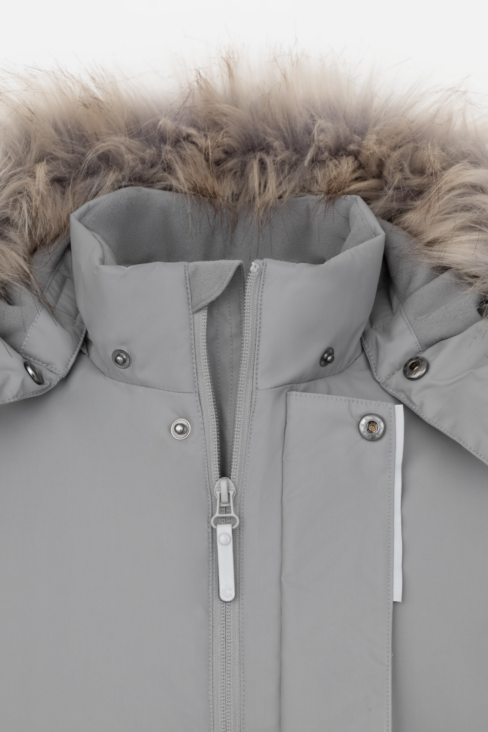 • Съемный капюшон на липучках с отстегивающимся искусственным мехом