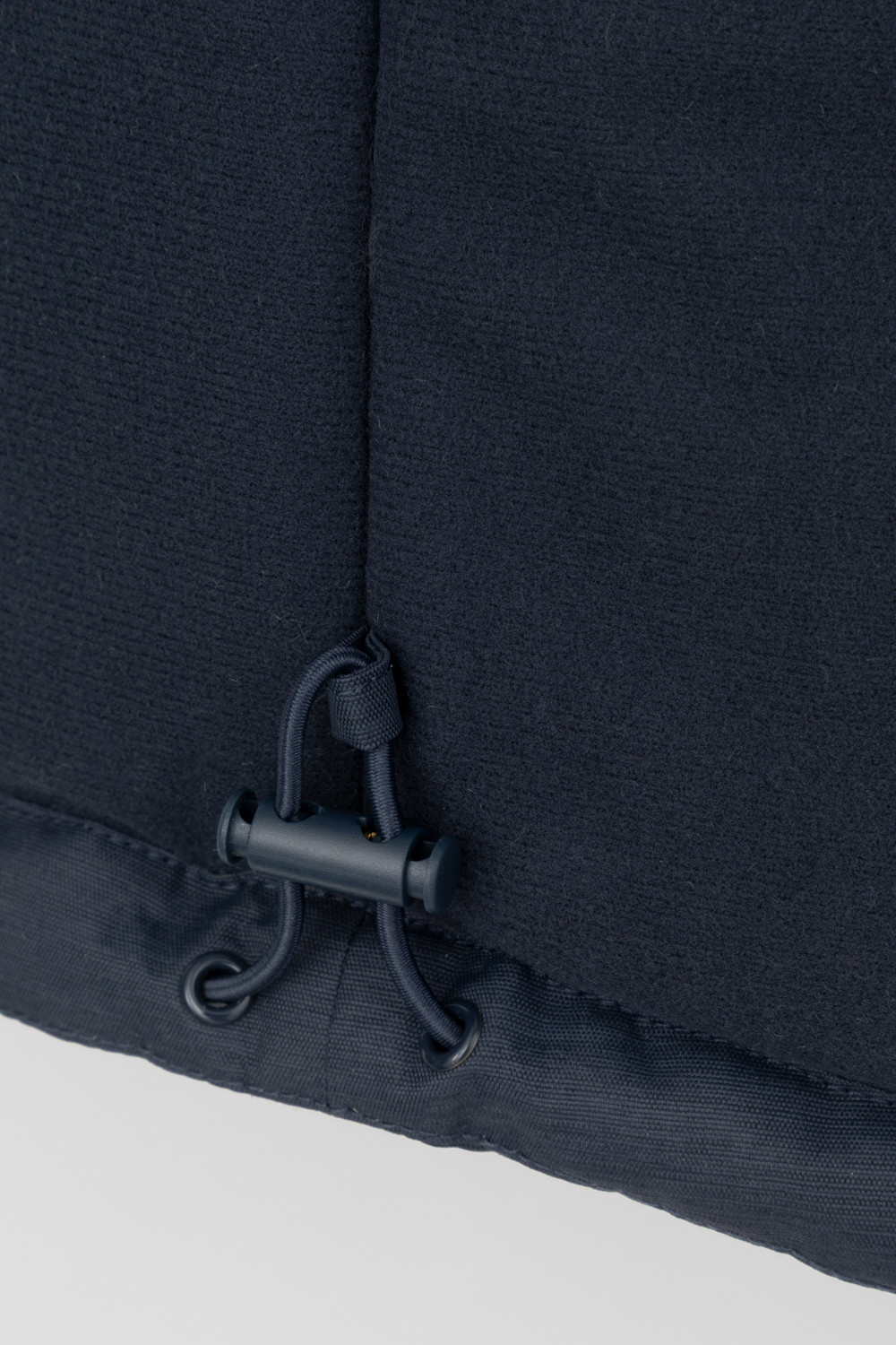 • Несъёмный капюшон с эластичными вставками по бокам.