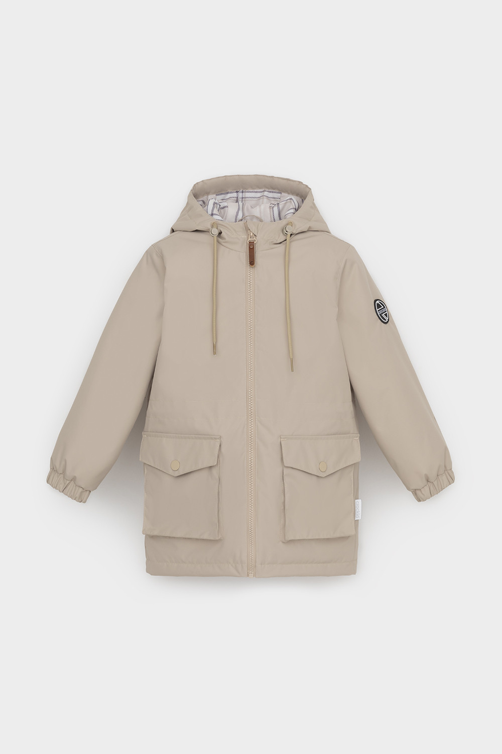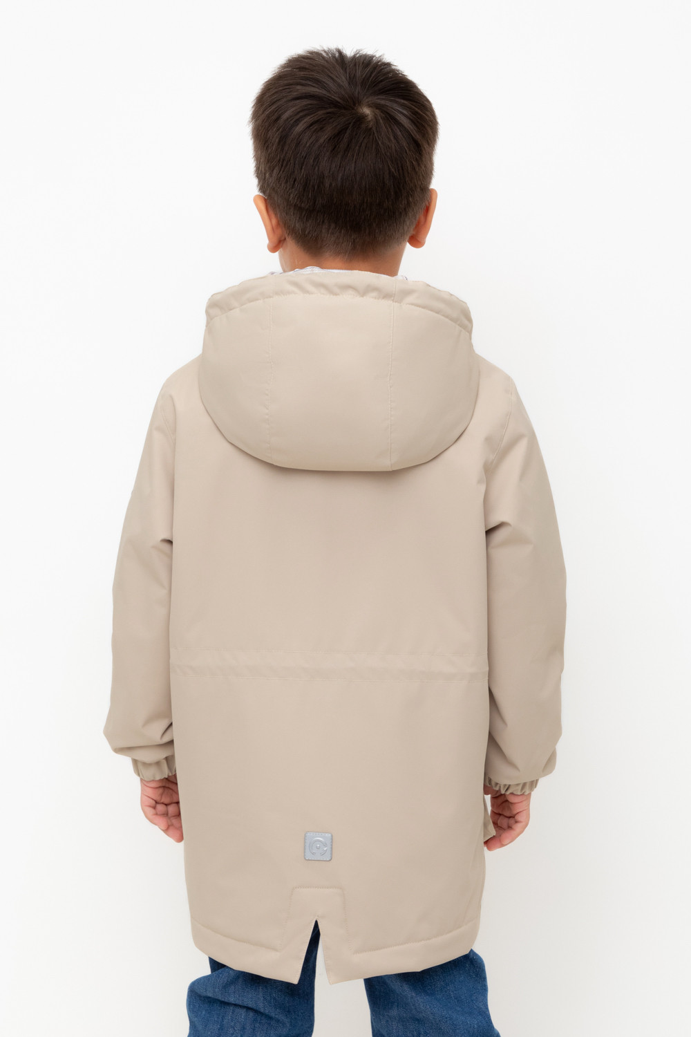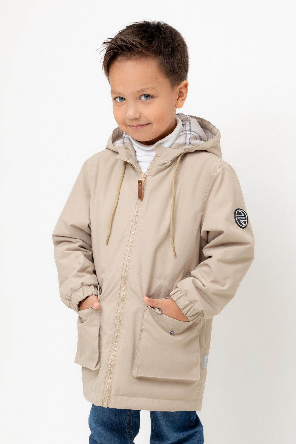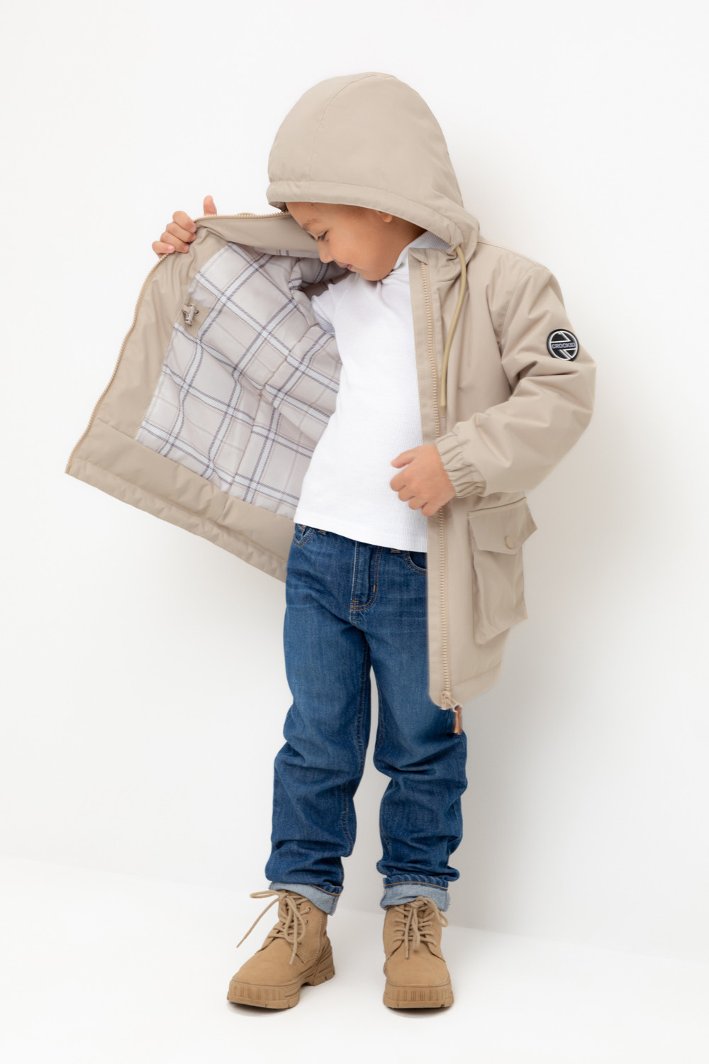 Демисезонная куртка для мальчика с утеплителем SEE®: 120 г/м2. Выполнена из мембранной ткани с дополнительной тефлоновой обработкой. Данный вид обработки предохраняет изделие от загрязнения и лучше отводит влагу. Подклад из 100% полиэстера. У изделия предусмотрена защита подбородка. Несъемный капюшон имеет эластичную утяжку со стопперами. Низ рукавов на эластичной резинке для лучшего прилегания. На талии утяжка при помощи шнура со стопперами. По бокам два накладных кармана с клапанами. Во всех изделиях верхнего ассортимента для безопасности ребенка предусмотрены светоотражающие элементы.