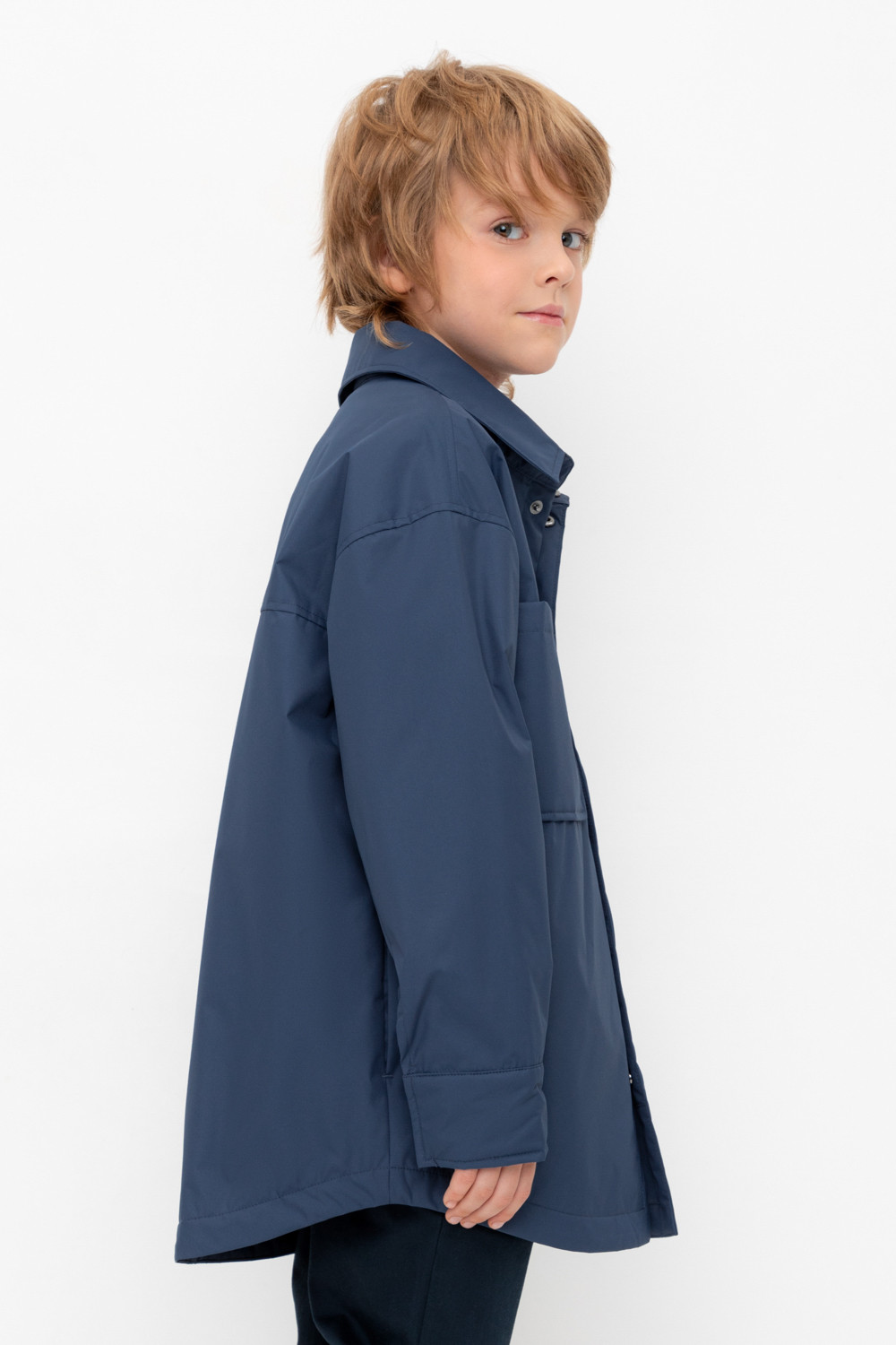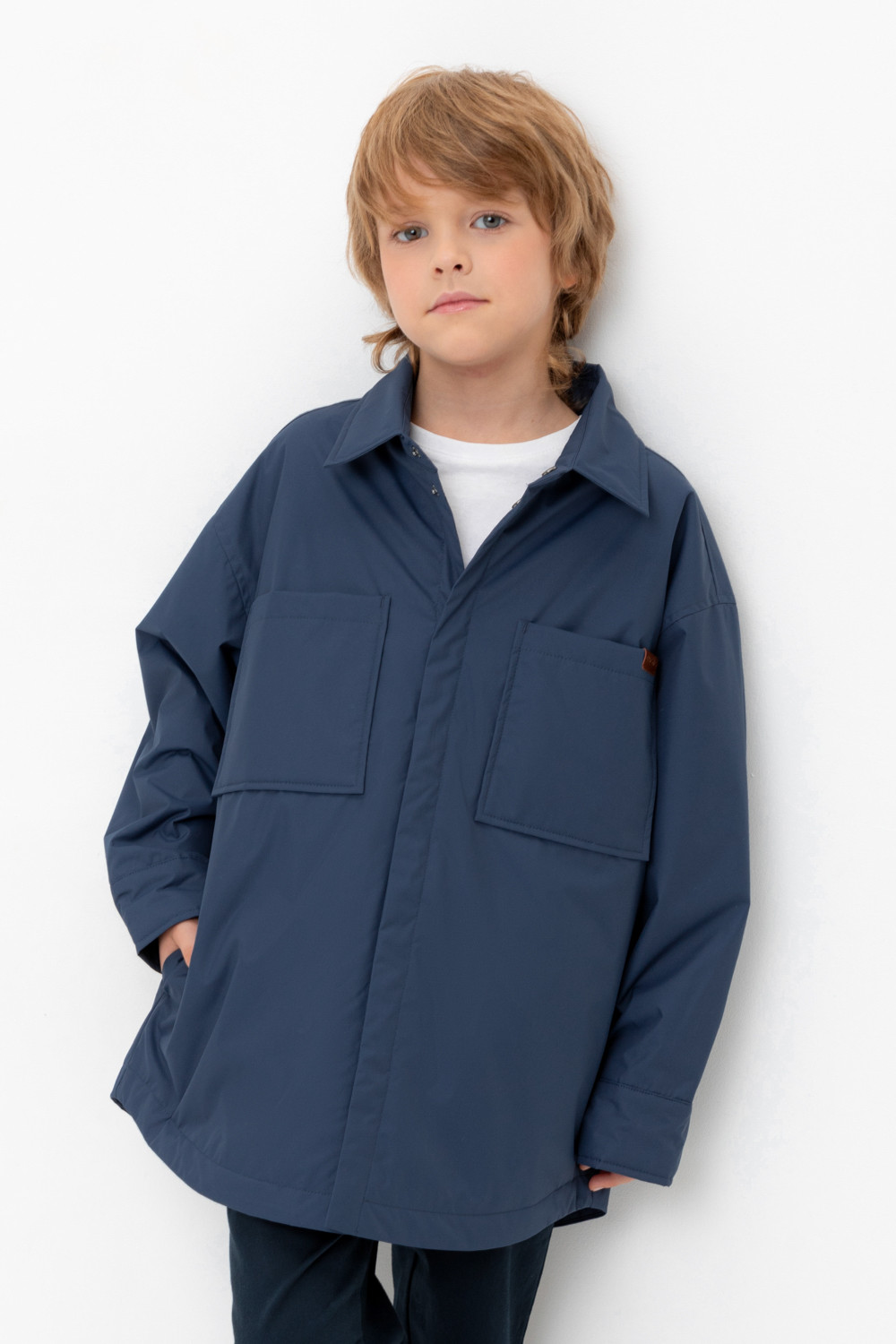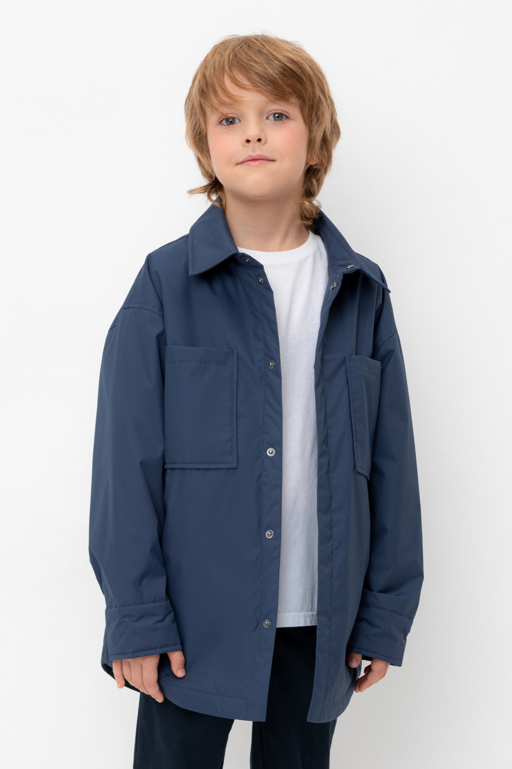 Куртка-рубашка для мальчика с утеплителем SEE®: 60 г/м2. Выполнена из мембранной ткани с дополнительной тефлоновой обработкой. Данный вид обработки предохраняет изделие от загрязнения и лучше отводит влагу. Подклад из 100% полиэстера. Спереди застёгивается на потайные кнопки. На груди два накладных кармана. Во всех изделиях верхнего ассортимента для безопасности ребенка предусмотрены светоотражающие элементы.