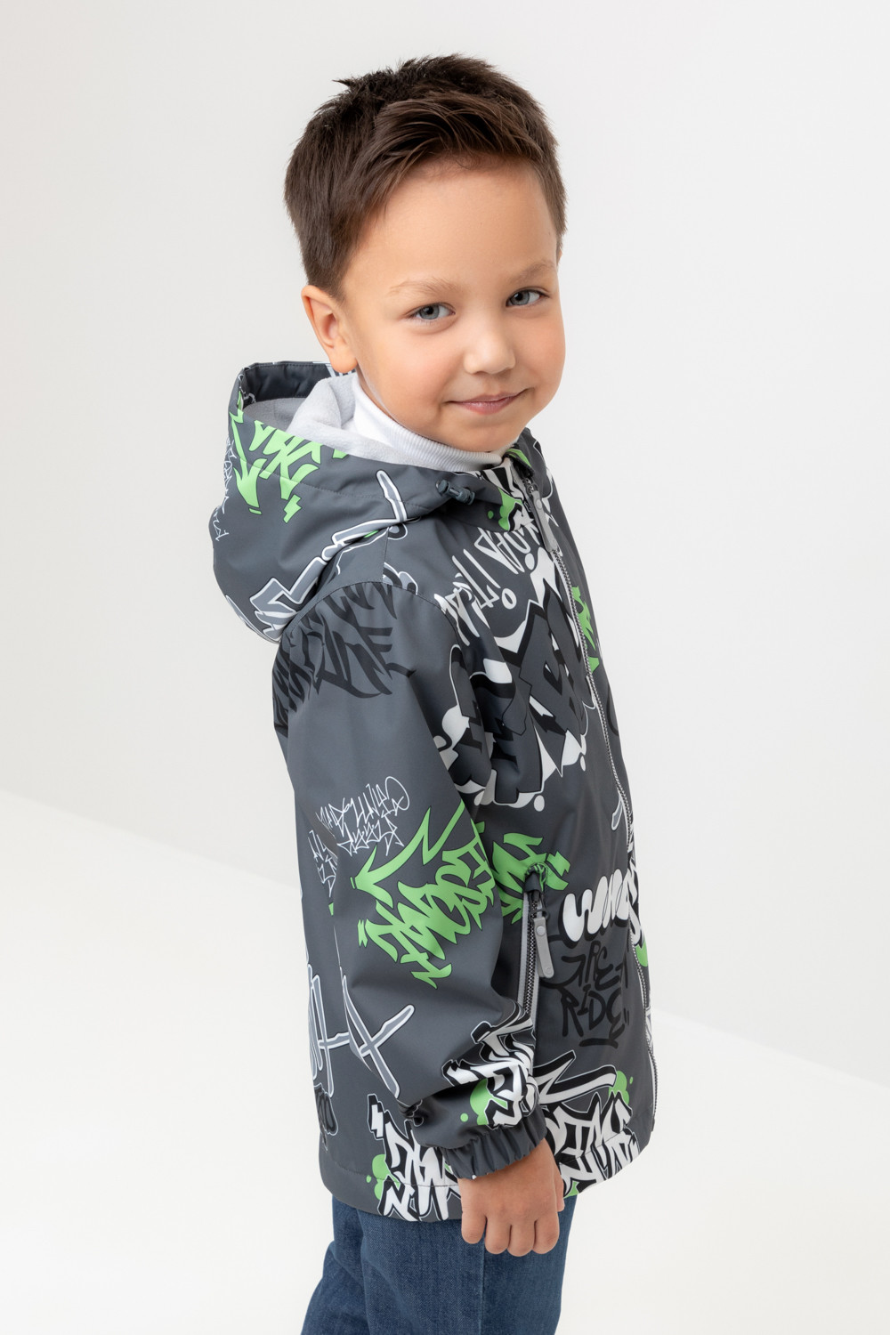 Ветровка для мальчика из мембранной ткани с дополнительной тефлоновой обработкой. Верхняя мембранная ткань 1000/1000 с тефлоновым покрытием отталкивает воду и грязь и обладает «дышащими» свойствами. Подкладка выполнена из флиса, 100% полиэстер. У изделия предусмотрена защита подбородка. Несъемный капюшон регулируется с помощью эластичного шнура со стопперами. Низ рукавов имеет эластичную резинку для лучшего прилегания. Во всех изделиях верхнего ассортимента для безопасности ребенка предусмотрены светоотражающие элементы.