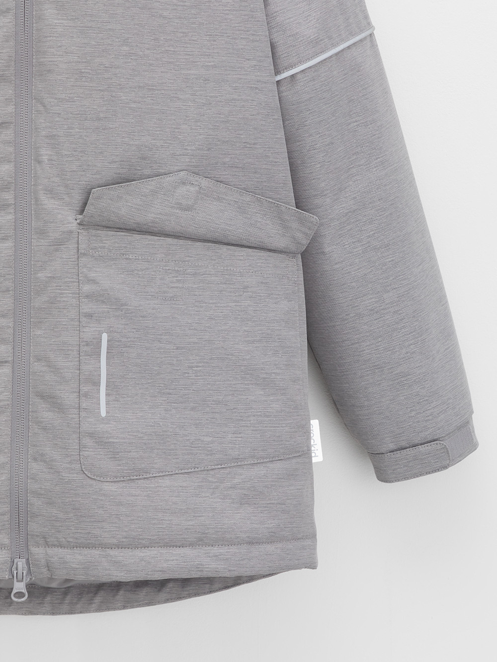 Демисезонная куртка для мальчика с утеплителем SEE®: 120 г/м2. Выполнена из мембранной ткани с тефлоновой обработкой. Данный вид обработки предохраняет изделие от загрязнения и хорошо отталкивает влагу. Подклад выполнен из 100% полиэстера. Куртка застёгивается на молнию, предусмотрена защита подбородка. Несъёмный капюшон имеет эластичные утяжки по бокам для лучшего прилегания. Низ рукавов на эластичной резинке регулируется по ширине с помощью липучек. По низу изделия эластичная утяжка со стопперами. По бокам два кармана с клапанами на магнитных кнопках. Во всех изделиях верхнего ассортимента для безопасности ребёнка предусмотрены светоотражающие элементы.