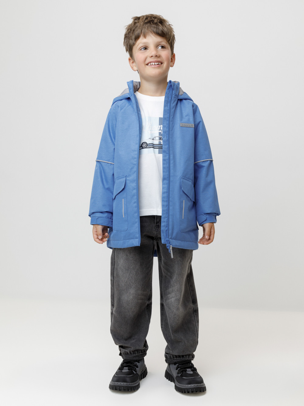 Демисезонная куртка для мальчика с утеплителем SEE®: 120 г/м2. Выполнена из мембранной ткани с тефлоновой обработкой. Данный вид обработки предохраняет изделие от загрязнения и хорошо отталкивает влагу. Подклад выполнен из 100% полиэстера. Куртка застёгивается на молнию, предусмотрена защита подбородка. Несъёмный капюшон имеет эластичные утяжки по бокам для лучшего прилегания. Низ рукавов на эластичной резинке регулируется по ширине с помощью липучек. По низу изделия эластичная утяжка со стопперами. По бокам два кармана с клапанами на магнитных кнопках. Во всех изделиях верхнего ассортимента для безопасности ребёнка предусмотрены светоотражающие элементы.