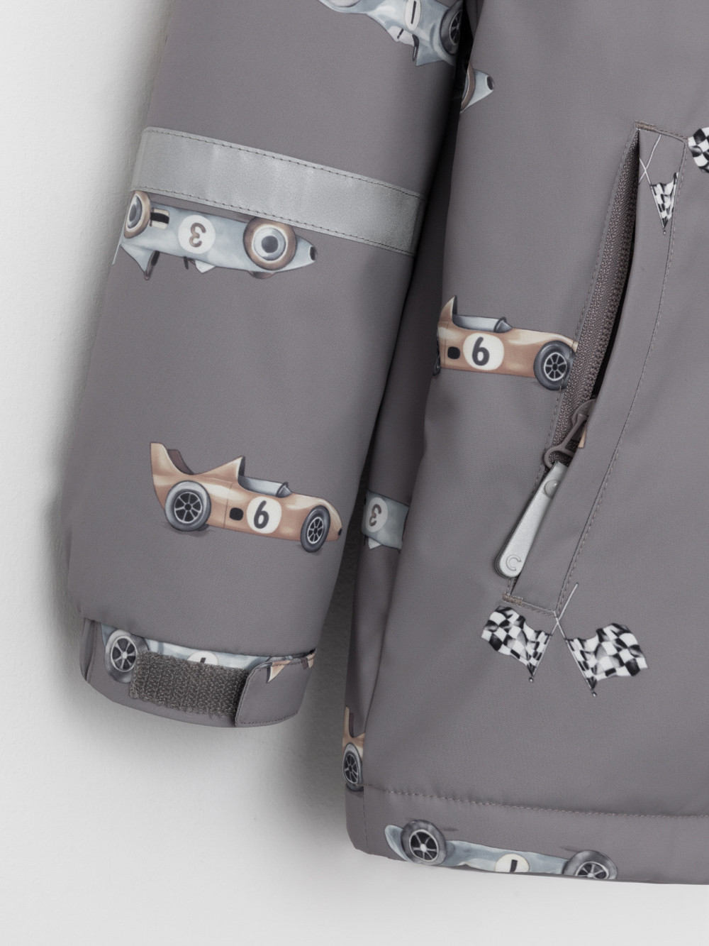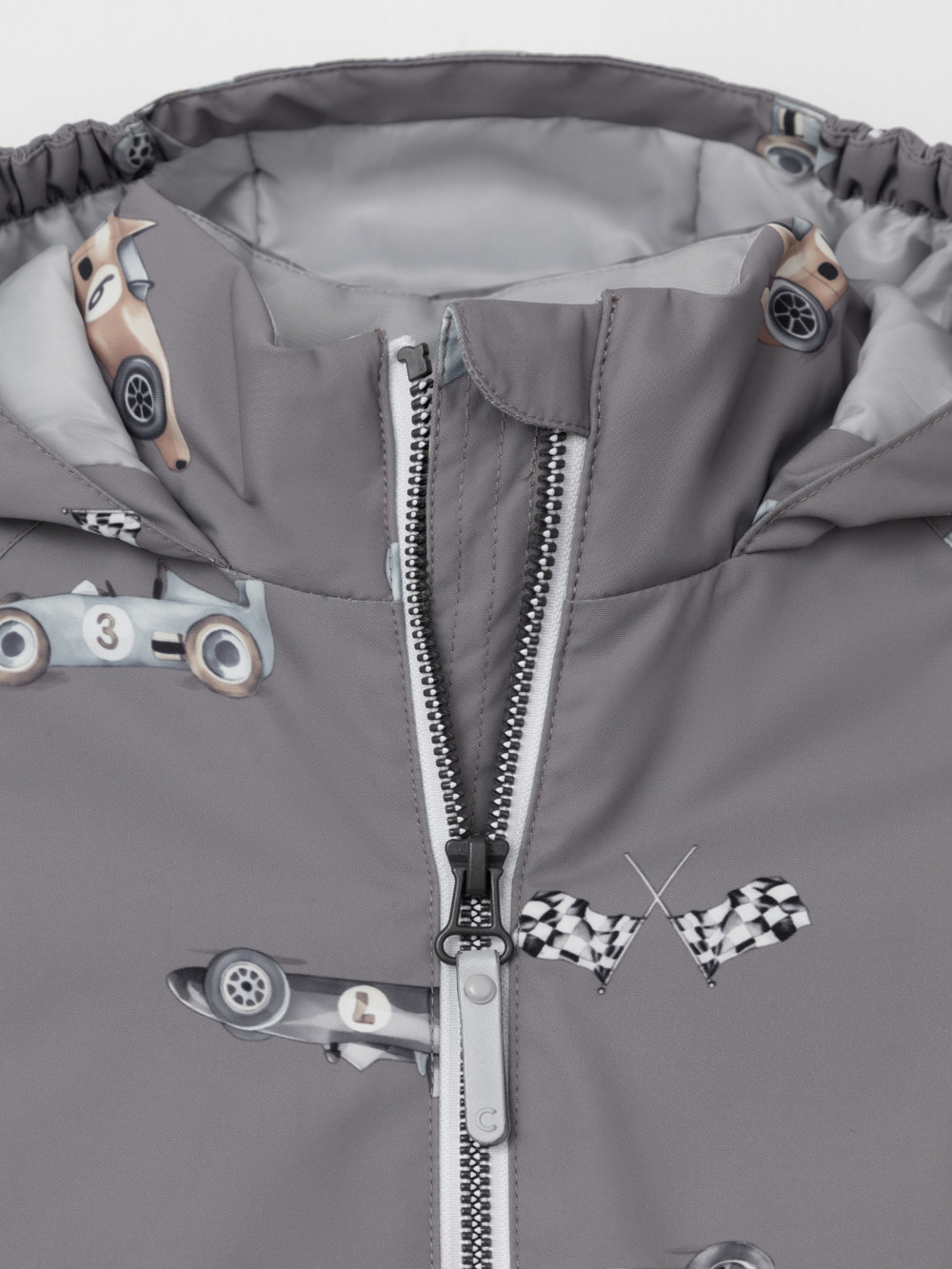 Демисезонная куртка для мальчика с утеплителем SEE®: 120 г/м2. Выполнена из мембранной ткани с тефлоновой обработкой. Данный вид обработки предохраняет изделие от загрязнения и хорошо отталкивает влагу. Подклад выполнен из трикотажа в размерах 86-92 и 92-98 и из 100% полиэстера в размерах от 98-104 до 116-122. Куртка застёгивается на молнию, предусмотрена защита подбородка. Несъёмный капюшон имеет эластичные утяжки по бокам. Низ рукавов на эластичной резинке регулируется с помощью липучек для лучшего прилегания. По низу изделия эластичная утяжка со стопперами. По бокам два кармана на молниях. Во всех изделиях верхнего ассортимента для безопасности ребёнка предусмотрены светоотражающие элементы.