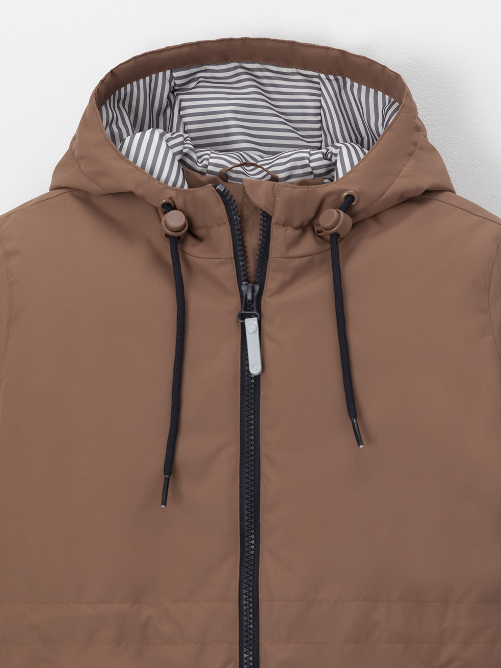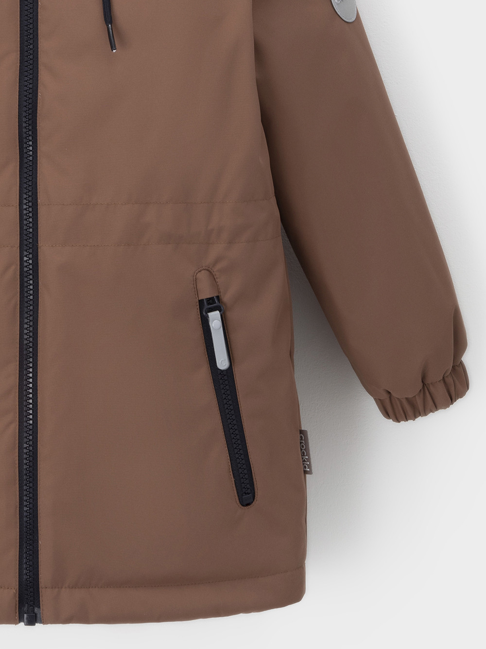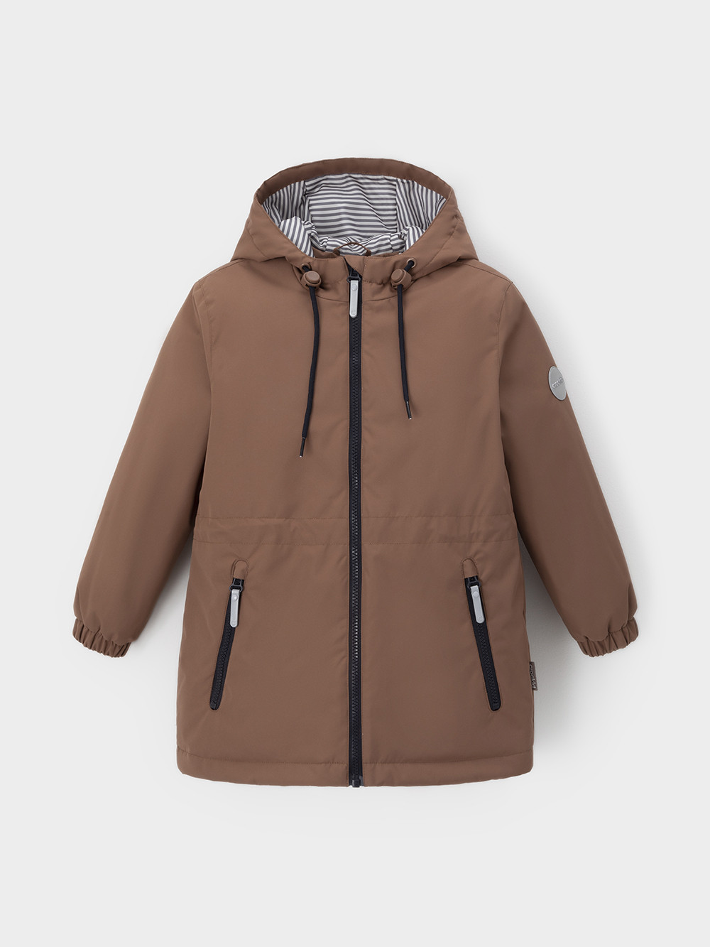 Демисезонная куртка для мальчика с утеплителем SEE, 120 г/м2. Выполнена из мембранной ткани с тефлоновой обработкой. Данный вид обработки предохраняет изделие от загрязнения и хорошо отталкивает влагу. Подклад выполнен из 100% полиэстера. Куртка застёгивается на молнию, предусмотрена защита подбородка. Несъёмный капюшон имеет утяжку на шнур со стопперами по бокам. Низ рукавов на эластичной резинке. По талии эластичная утяжка со стопперами. По бокам два кармана на молниях. Во всех изделиях верхнего ассортимента для безопасности ребёнка предусмотрены светоотражающие элементы.
