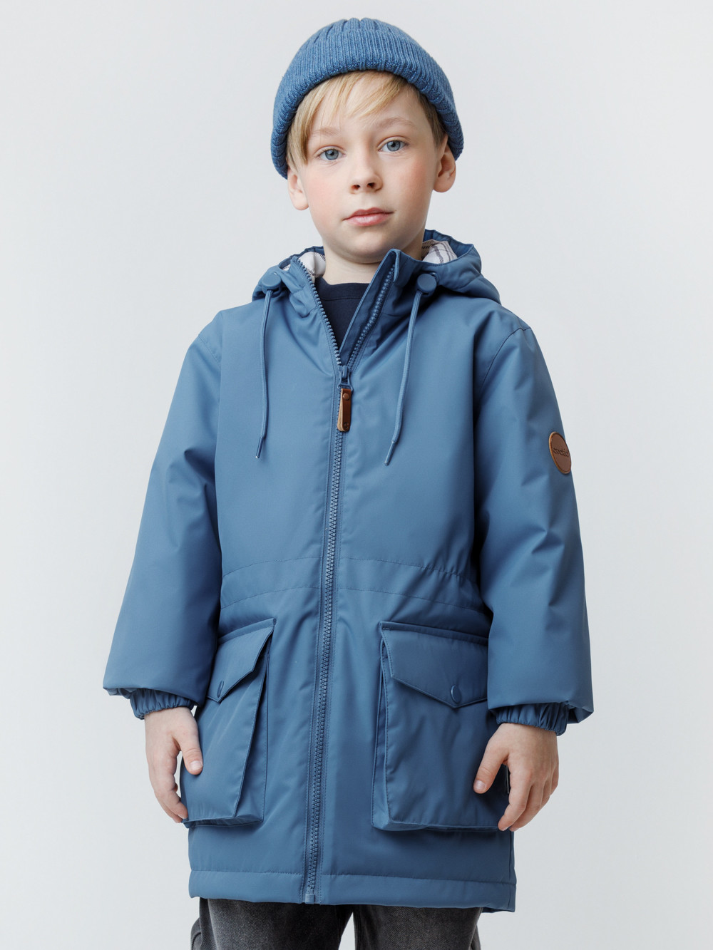 Демисезонная куртка для мальчика с утеплителем Fellex®: 120 г/м2. Выполнена из мембранной ткани с тефлоновой обработкой. Данный вид обработки предохраняет изделие от загрязнения и хорошо отталкивает влагу. Подклад выполнен из 100% полиэстера. Куртка застёгивается на молнию, предусмотрена защита подбородка. Несъёмный капюшон имеет утяжку на шнур со стопперами по бокам. Низ рукавов на эластичной резинке. По талии эластичная утяжка со стопперами. По бокам два кармана с клапанами на кнопках. Во всех изделиях верхнего ассортимента для безопасности ребёнка предусмотрены светоотражающие элементы.