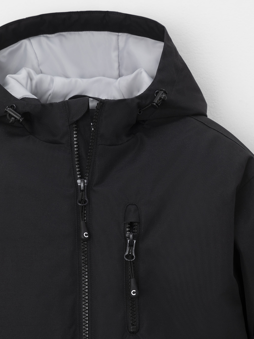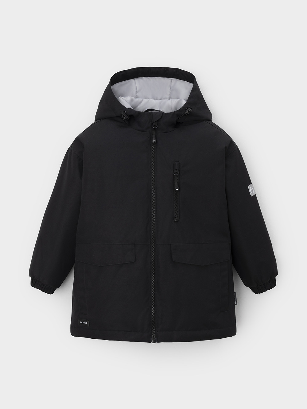 Демисезонная куртка для мальчика с утеплителем SEE, 120 г/м2. Выполнена из мембранной ткани с тефлоновой обработкой. Данный вид обработки предохраняет изделие от загрязнения и хорошо отталкивает влагу. Подклад выполнен из 100% полиэстера. Куртка застёгивается на молнию, предусмотрена защита подбородка. Несъёмный капюшон имеет эластичную утяжку со стопперами. На рукавах эластичные манжеты. Есть два кармана по бокам и нагрудный карман на молнии. Во всех изделиях верхнего ассортимента для безопасности ребёнка предусмотрены светоотражающие элементы.