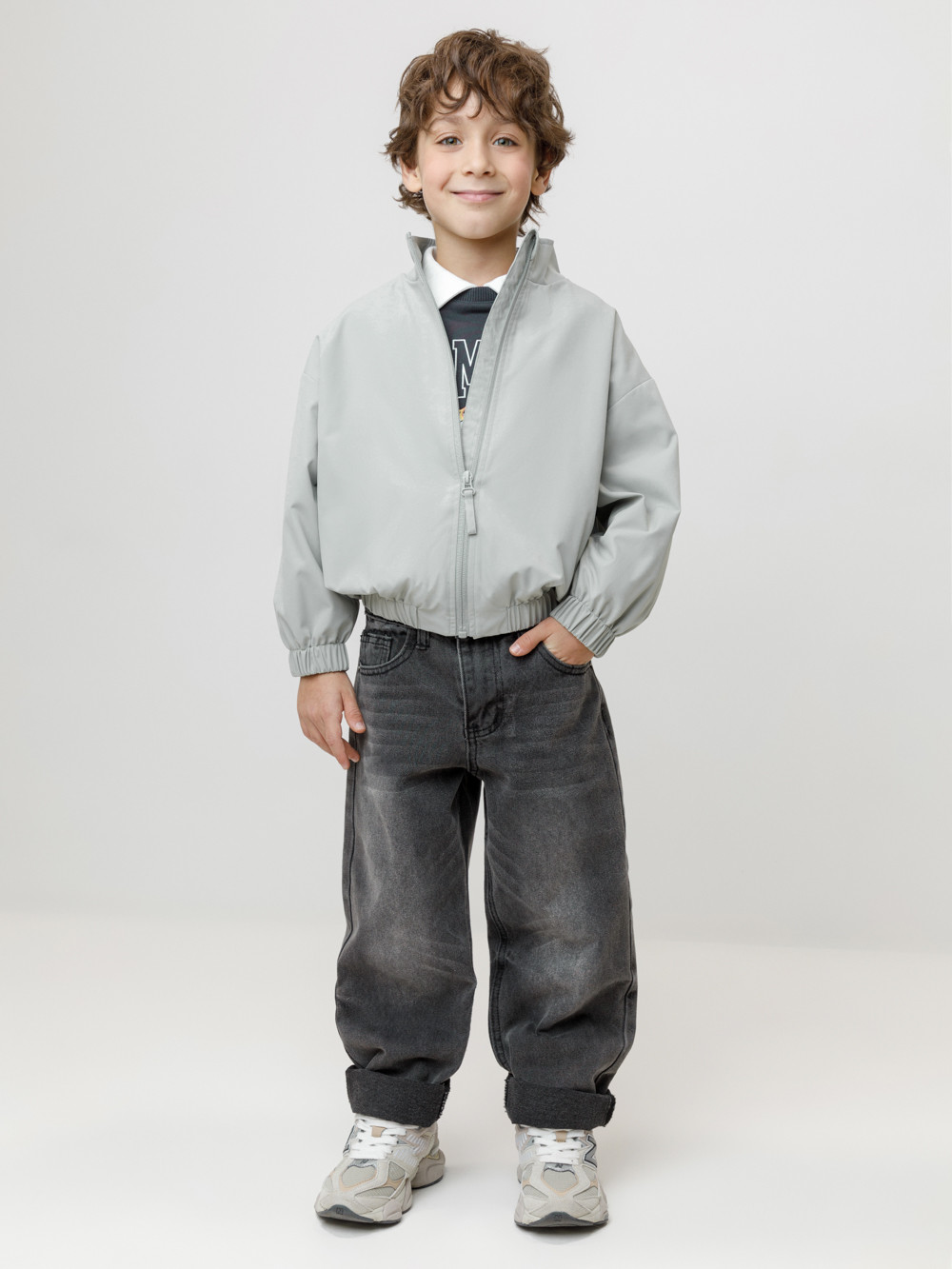Ветровка для мальчика из ткани с дополнительной тефлоновой обработкой. Верхний слой обеспечивает надёжную влагостойкость и воздухопроницаемость. Подклад из 100% полиэстера. У изделия удобная застёжка на молнию и воротник-стойка. На рукавах эластичные манжеты. Эластичная резинка по низу изделия. По бокам два удобных кармана. Светоотражающие элементы служат для дополнительной безопасности в тёмное время суток.