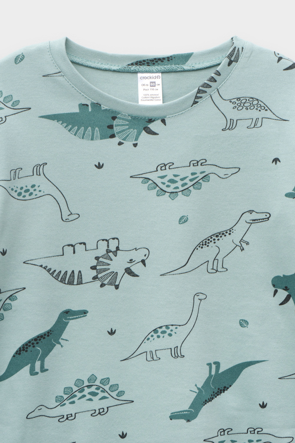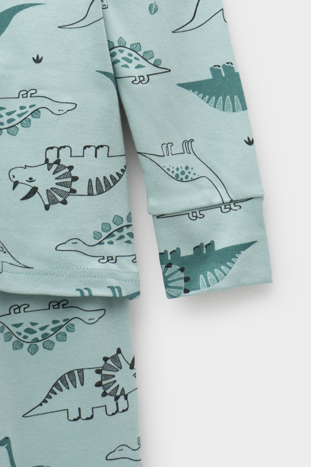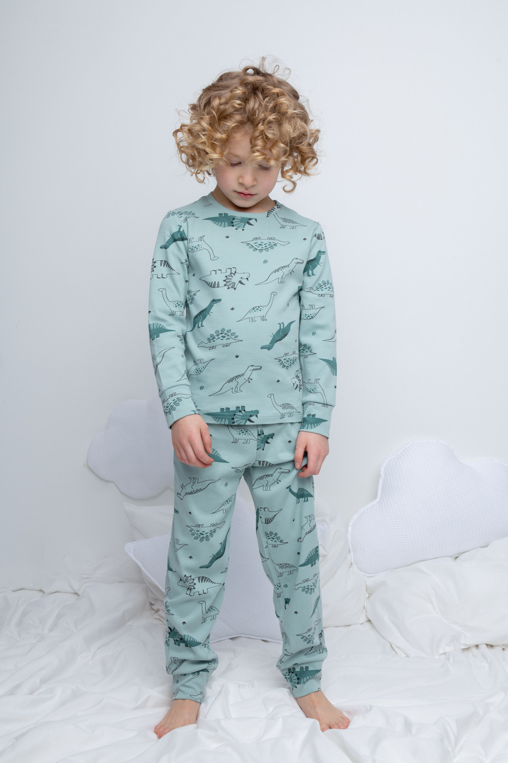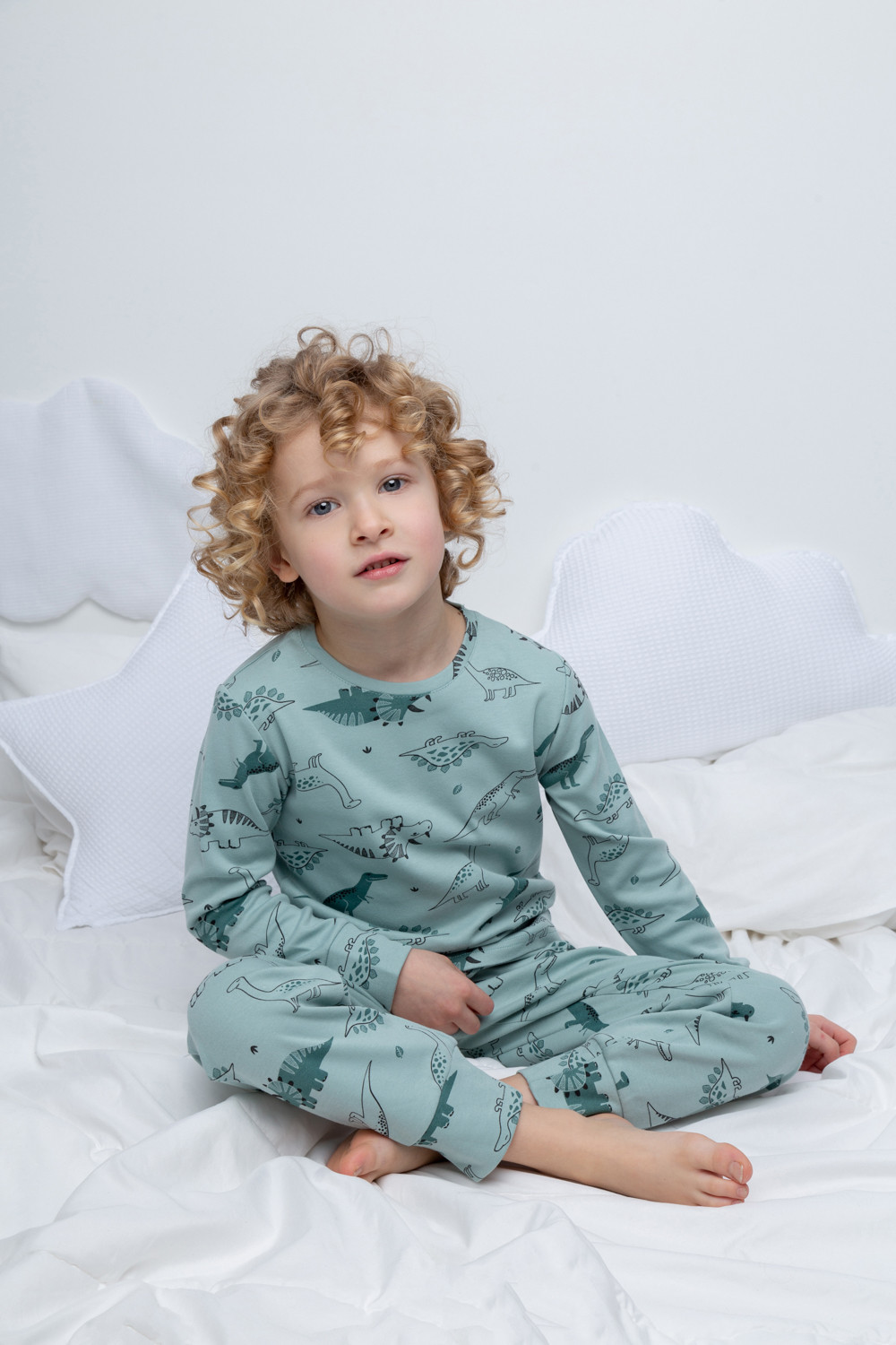 Трикотажная пижама из натурального хлопка. Джемпер с длинными втачными рукавами и брюки с эластичной резинкой в поясе. Мягкие манжеты на рукавах и по низу брюк. Оригинальная набивка выполнена из стойких текстильных гипоаллергенных красителей. Изделие сохраняет цвет и форму после многократных стирок. Все трикотажные полотна производятся в соответствии с нормами швейцарского сертификата ЭкоТекс.