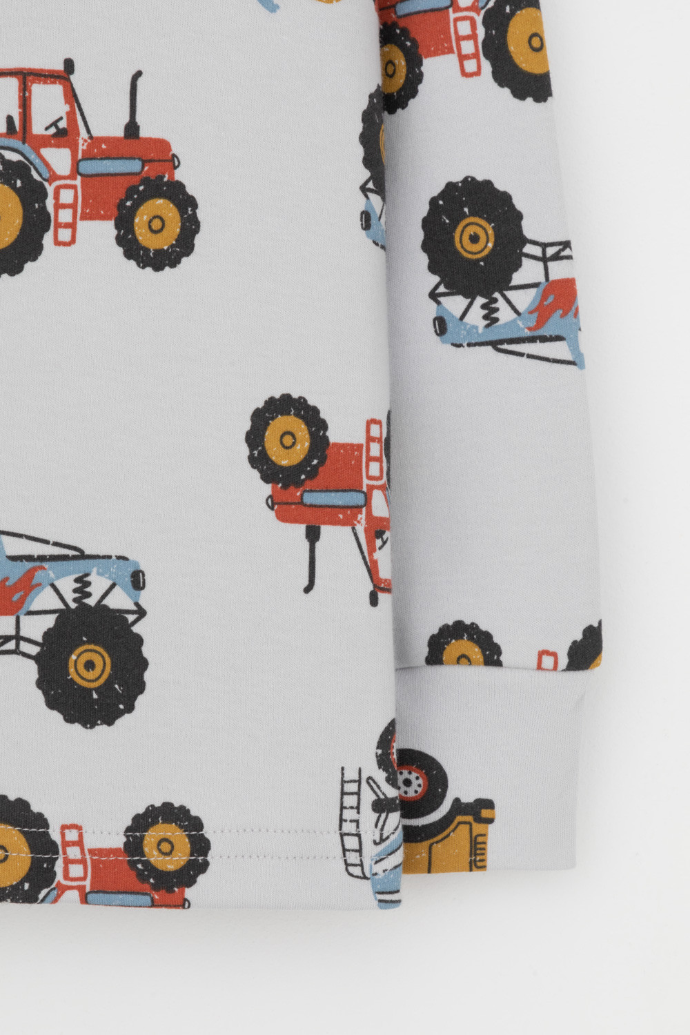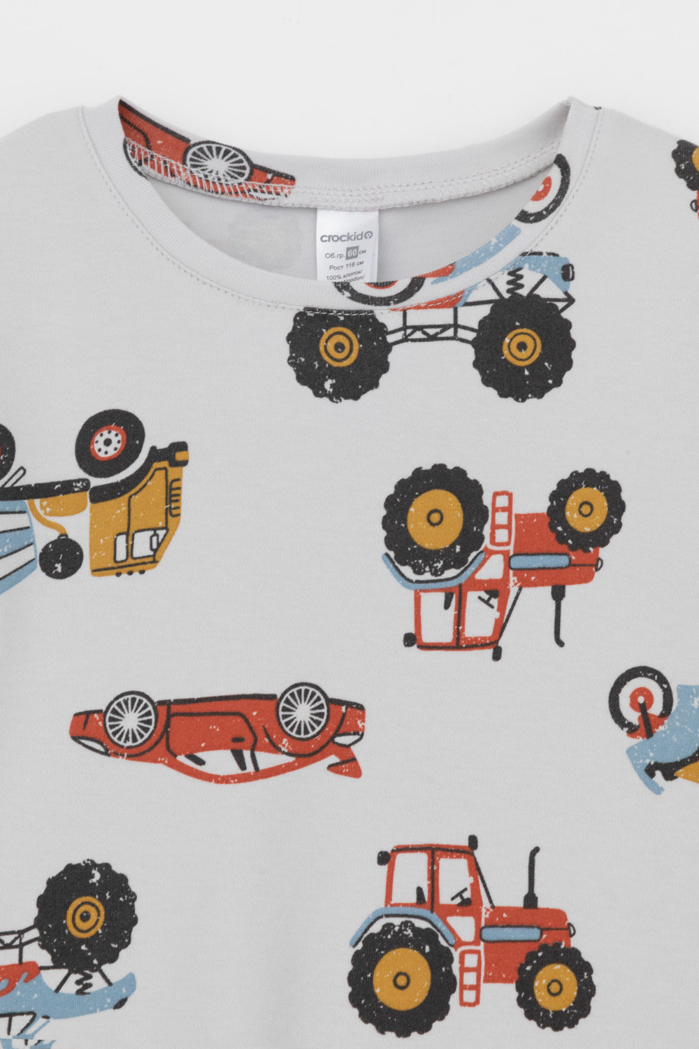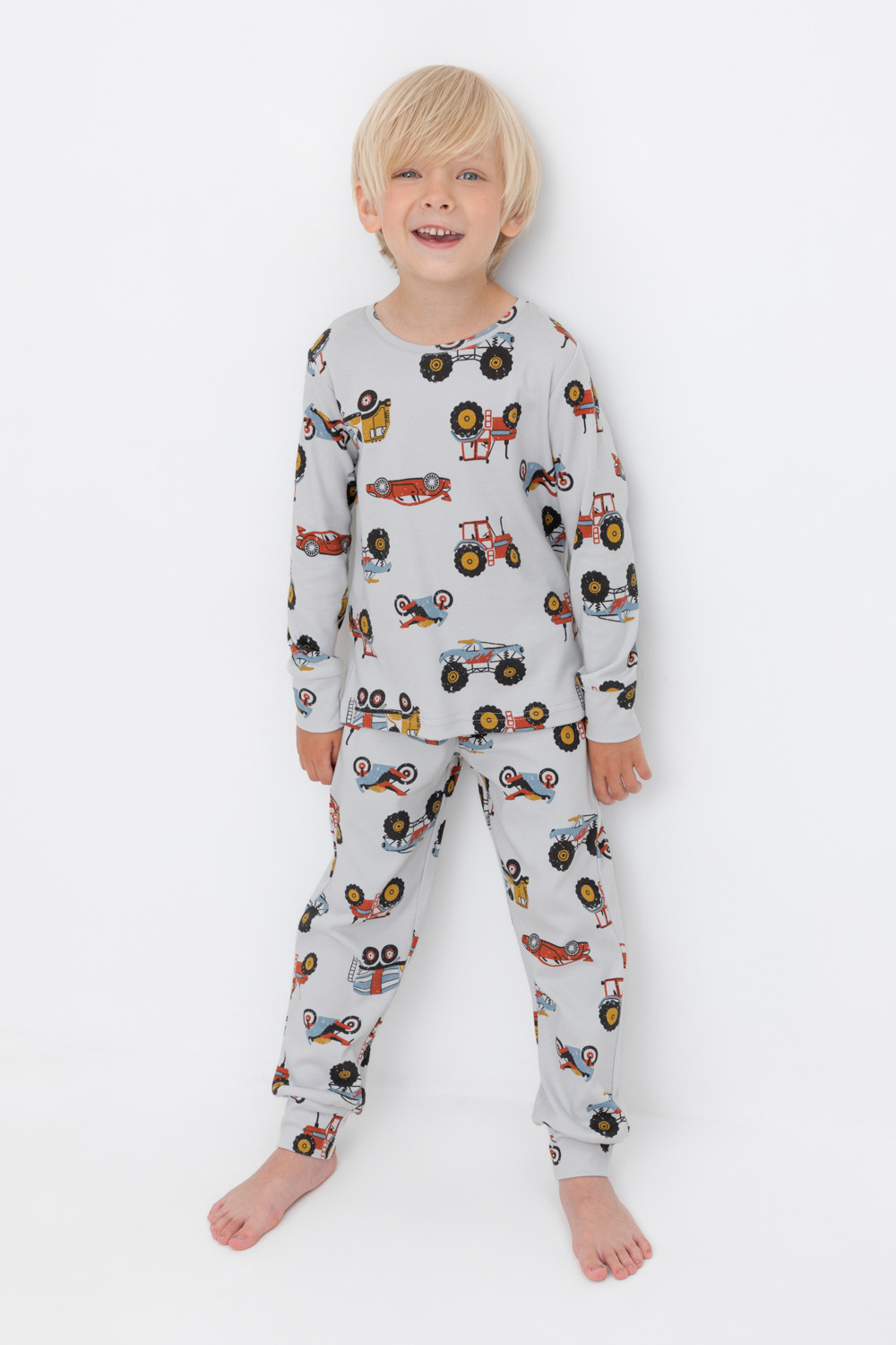 Трикотажная пижама из натурального хлопка. Джемпер с длинными рукавами с эластичными манжетами. У брюк эластичный пояс на резинке. Оригинальная набивка выполнена из стойких, гипоаллергенных текстильных красителей. Пижама сохраняет цвет и форму после многократных стирок. Все трикотажные полотна производятся в соответствии с нормами Швейцарского сертификата ЭкоТекс.