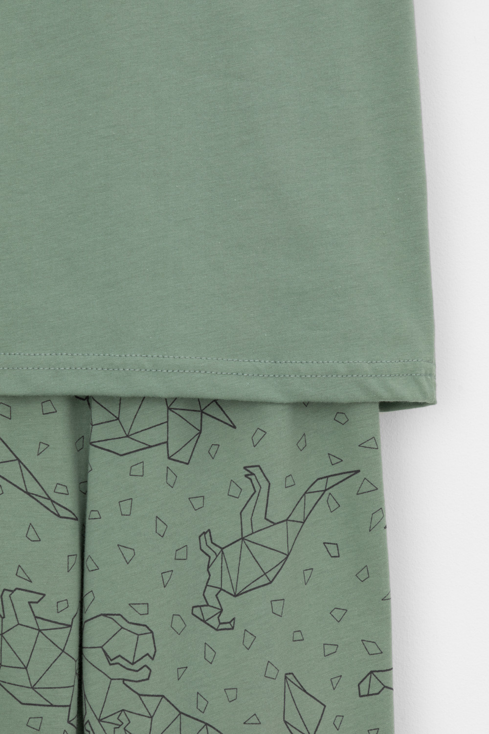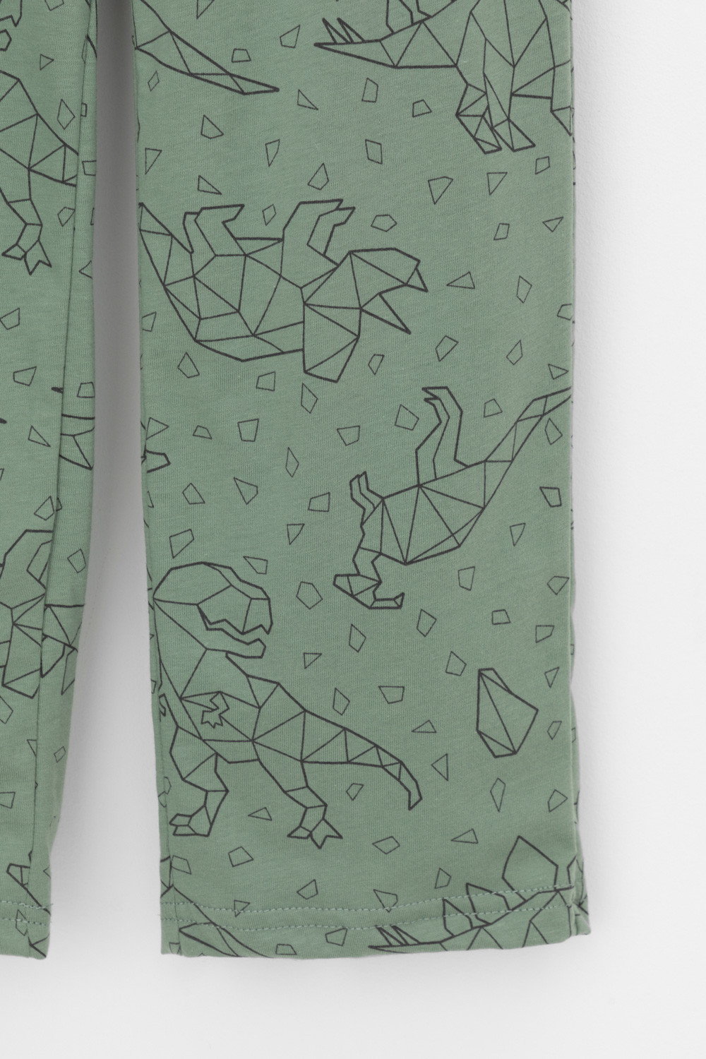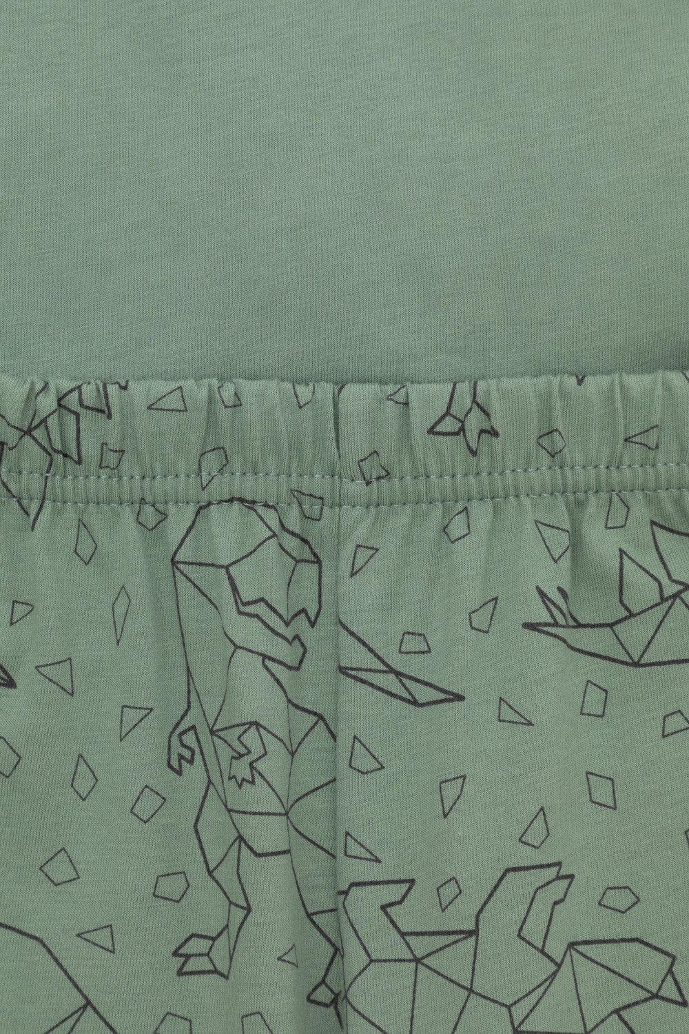 Трикотажная пижама из натурального хлопка.  Футболка с короткими рукавами с принтом. У брюк эластичный пояс на резинке. Оригинальные принт и набивка выполнены из стойких, гипоаллергенных текстильных красителей. Пижама сохраняет цвет и форму после многократных стирок. Все трикотажные полотна производятся в соответсвии с нормами Швейцарского сертификата ЭкоТекс.