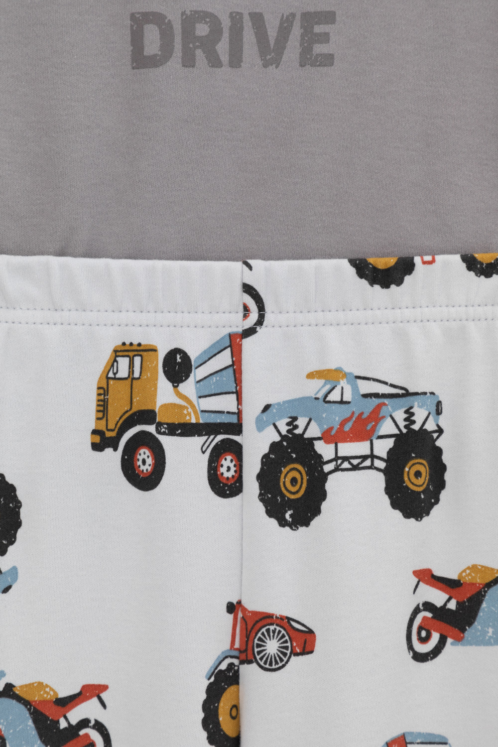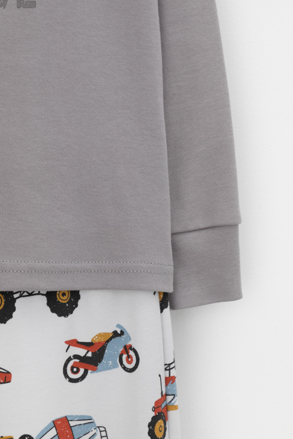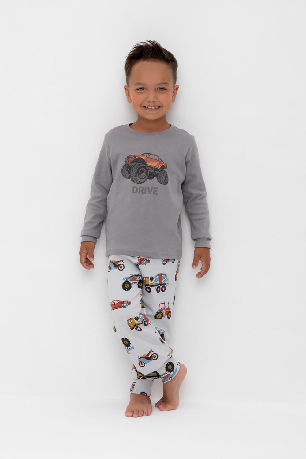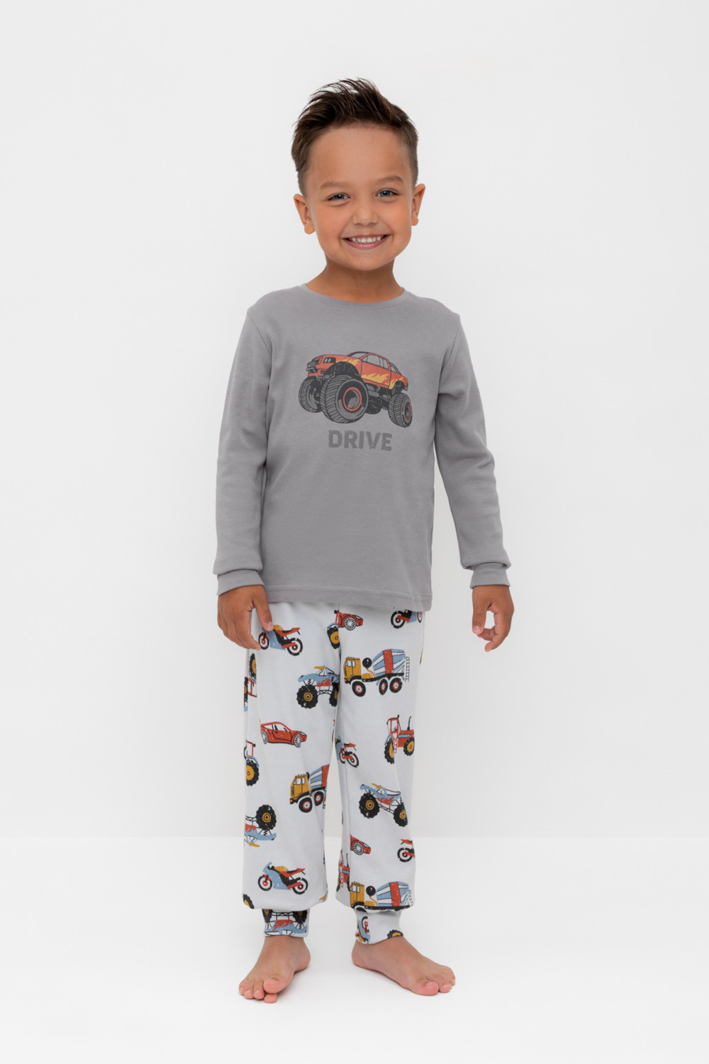 Трикотажная пижама из натурального хлопка. Джемпер с длинными рукавами с эластичными манжетами. У брюк эластичный пояс на резинке. Оригинальная набивка и принт выполнены из стойких, гипоаллергенных текстильных красителей. Пижама сохраняет цвет и форму после многократных стирок. Все трикотажные полотна производятся в соответствии с нормами Швейцарского сертификата ЭкоТекс.