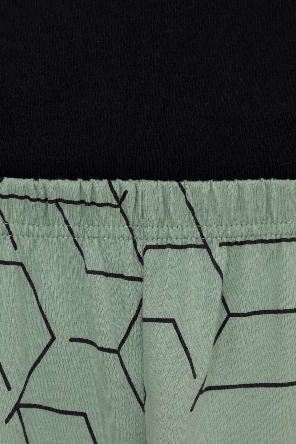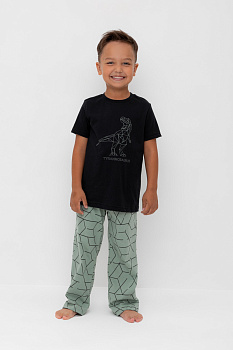 Трикотажная пижама из натурального хлопка.  Футболка с короткими рукавами с принтом. У брюк эластичный пояс на резинке. Оригинальные принт и набивка выполнены из стойких, гипоаллергенных текстильных красителей. Пижама сохраняет цвет и форму после многократных стирок. Все трикотажные полотна производятся в соответсвии с нормами Швейцарского сертификата ЭкоТекс.