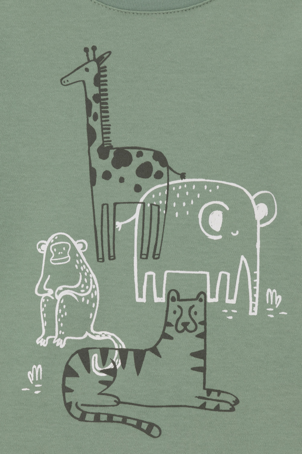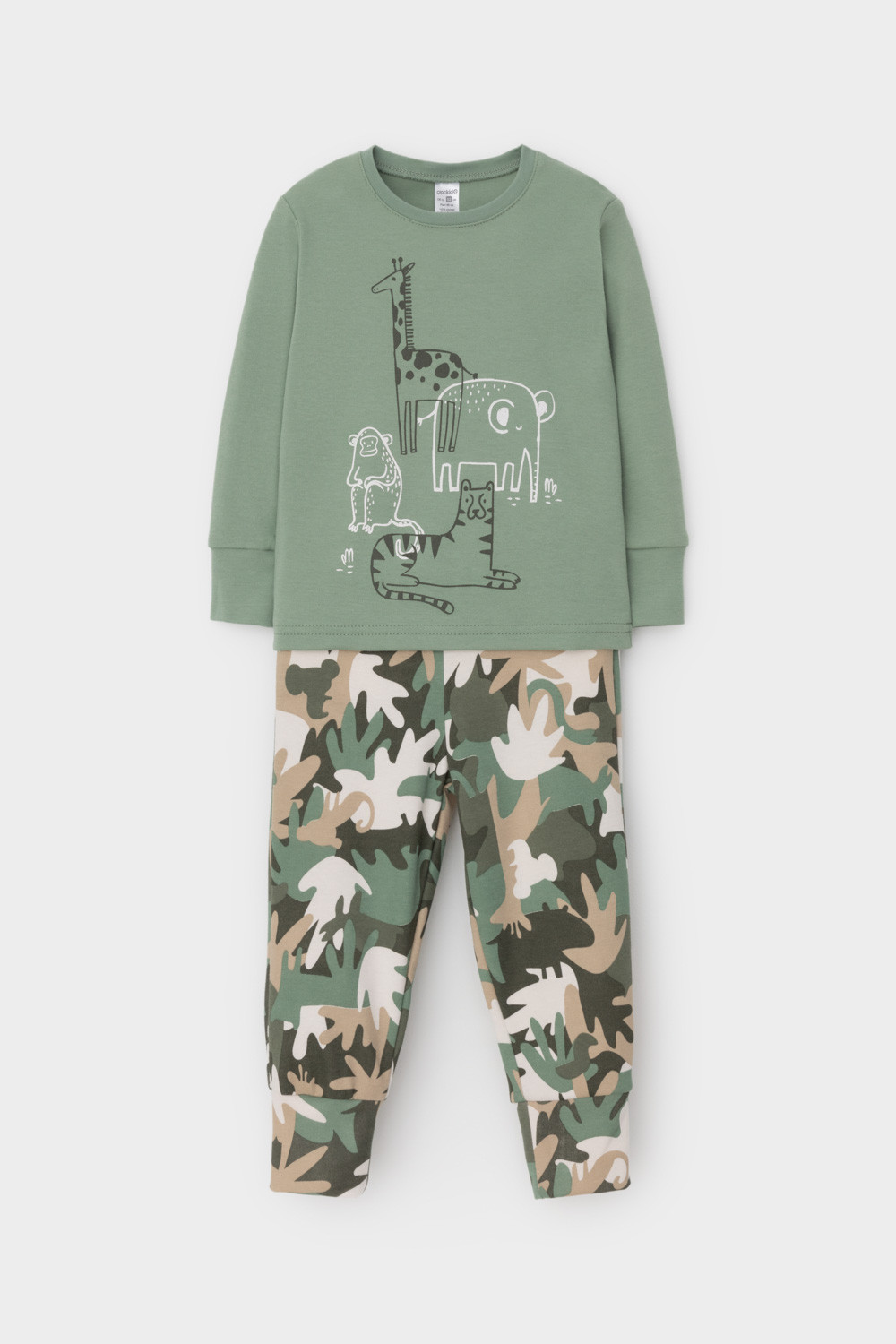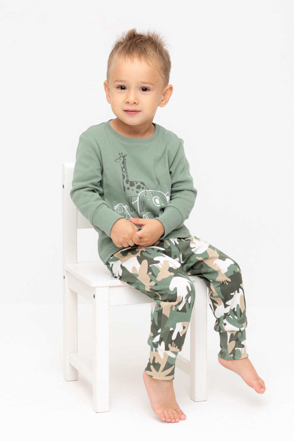 Трикотажная пижама из натурального хлопка. Джемпер с длинными рукавами с эластичными манжетами. У брюк эластичный пояс на резинке. Оригинальная набивка и принт выполнены из стойких, гипоаллергенных текстильных красителей. Пижама сохраняет цвет и форму после многократных стирок. Все трикотажные полотна производятся в соответствии с нормами Швейцарского сертификата ЭкоТекс.
