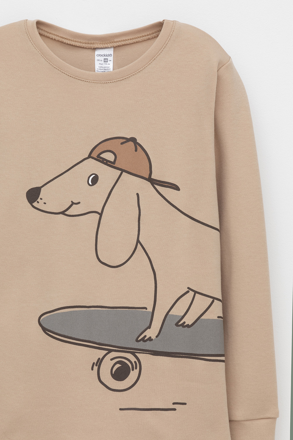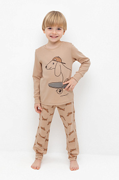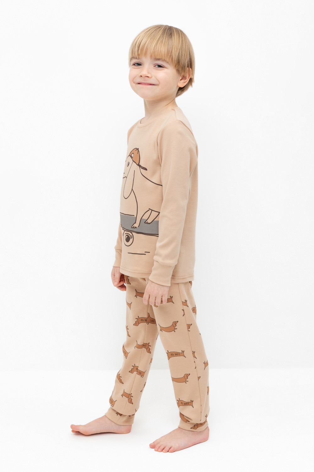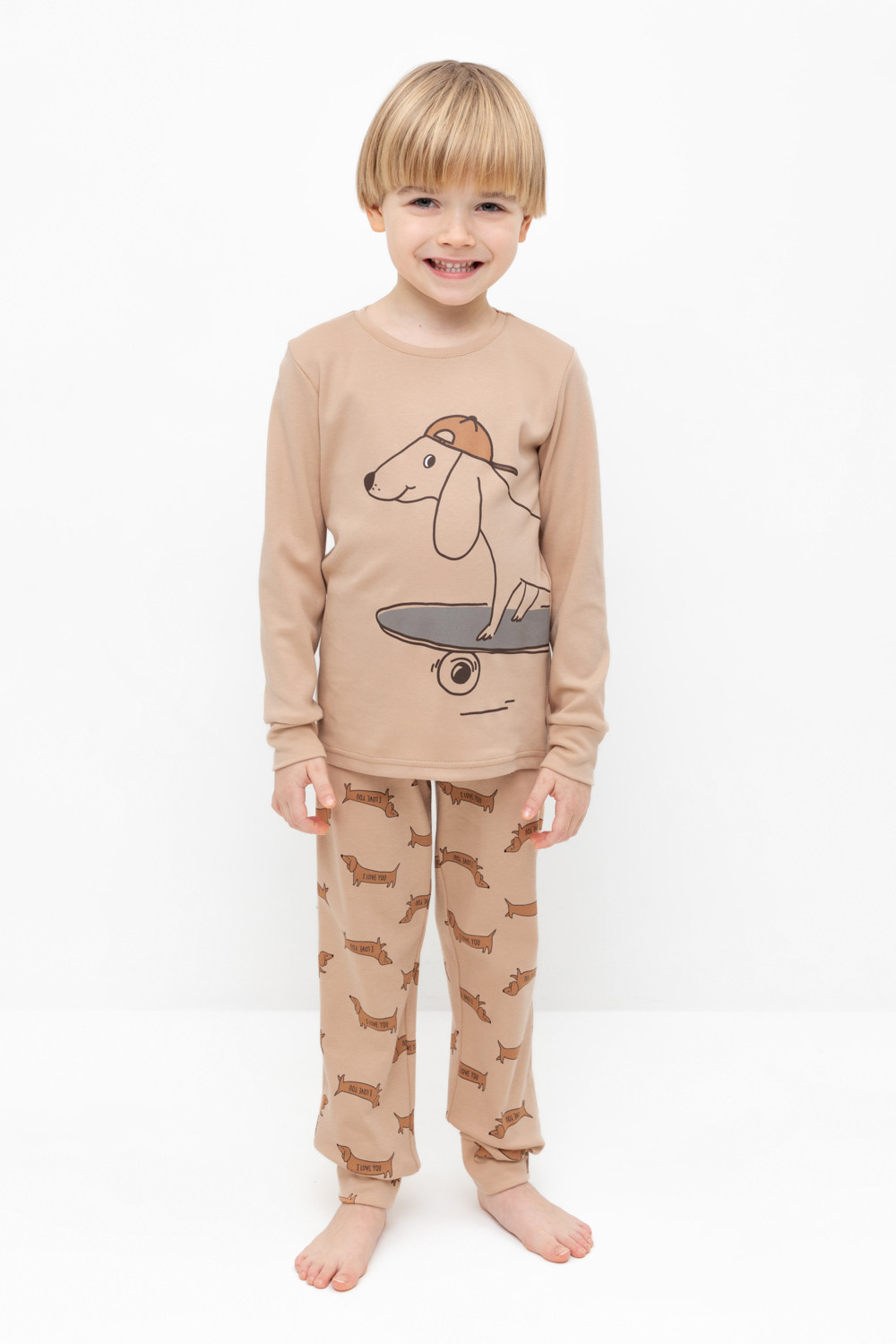 Трикотажная пижама из натурального хлопка. Джемпер с длинными втачными рукавами и брюки с эластичной резинкой в поясе. Мягкие манжеты на рукавах и по низу брюк. Оригинальная набивка и принт выполнены из стойких текстильных гипоаллергенных красителей. Изделие сохраняет цвет и форму после многократных стирок. Все трикотажные полотна производятся в соответсвии с нормами швейцарского сертификата ЭкоТекс.