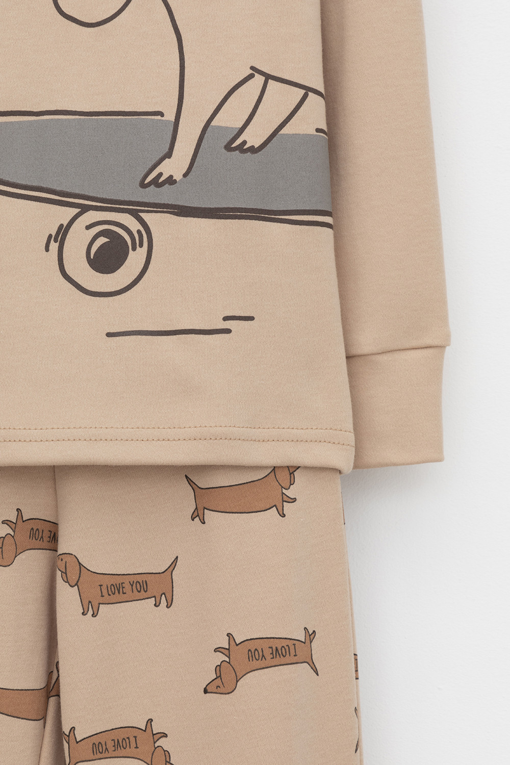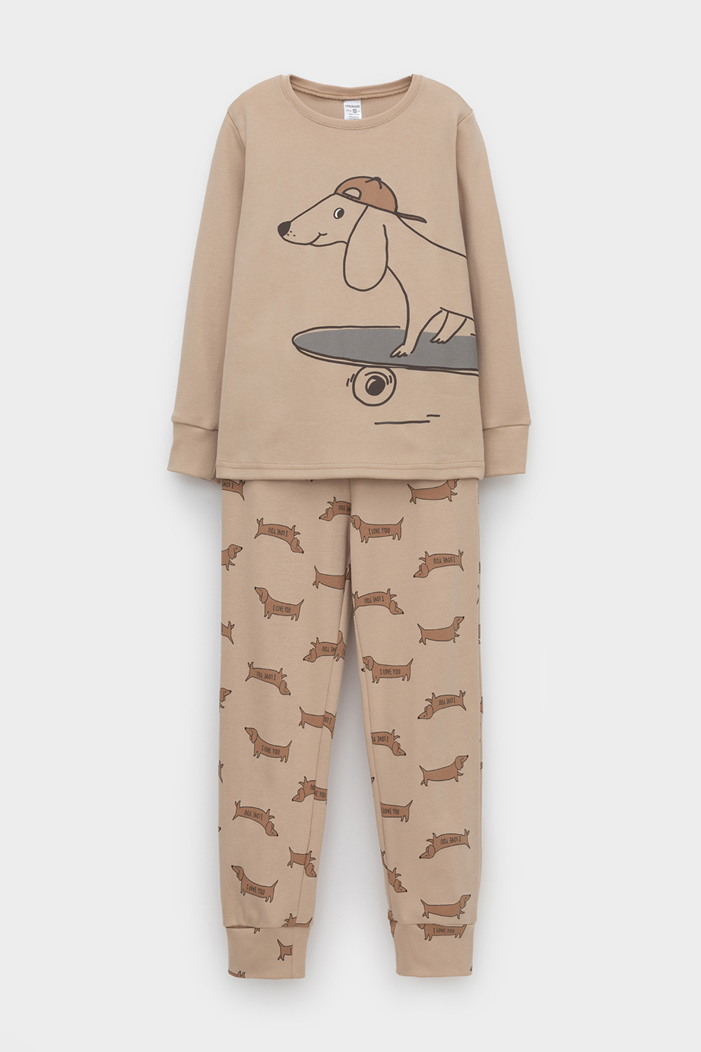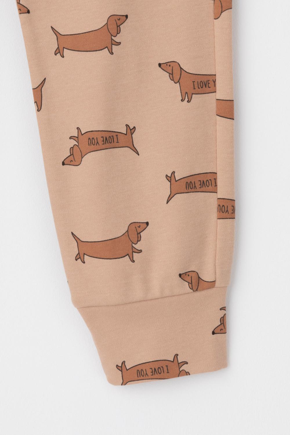 Трикотажная пижама из натурального хлопка. Джемпер с длинными втачными рукавами и брюки с эластичной резинкой в поясе. Мягкие манжеты на рукавах и по низу брюк. Оригинальная набивка и принт выполнены из стойких текстильных гипоаллергенных красителей. Изделие сохраняет цвет и форму после многократных стирок. Все трикотажные полотна производятся в соответсвии с нормами швейцарского сертификата ЭкоТекс.