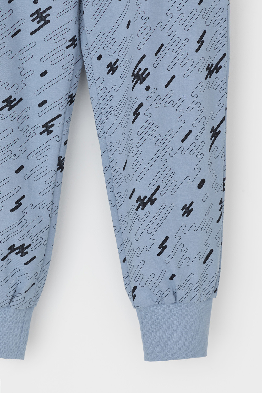Трикотажная пижама из натурального хлопка. Джемпер с длинными втачными рукавами и брюки с эластичной резинкой в поясе. Мягкие манжеты по низу брюк. Оригинальные набивка и принт выполнены из стойких гипоаллергенных текстильных гипоаллергенных красителей. Изделие сохраняет цвет и форму после многократных стирок. Все трикотажные полотна производятся в соответсвии с нормами швейцарского сертификата ЭкоТекс.