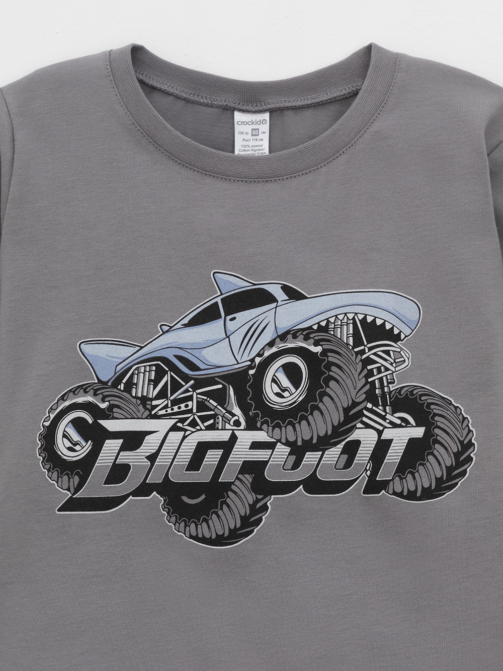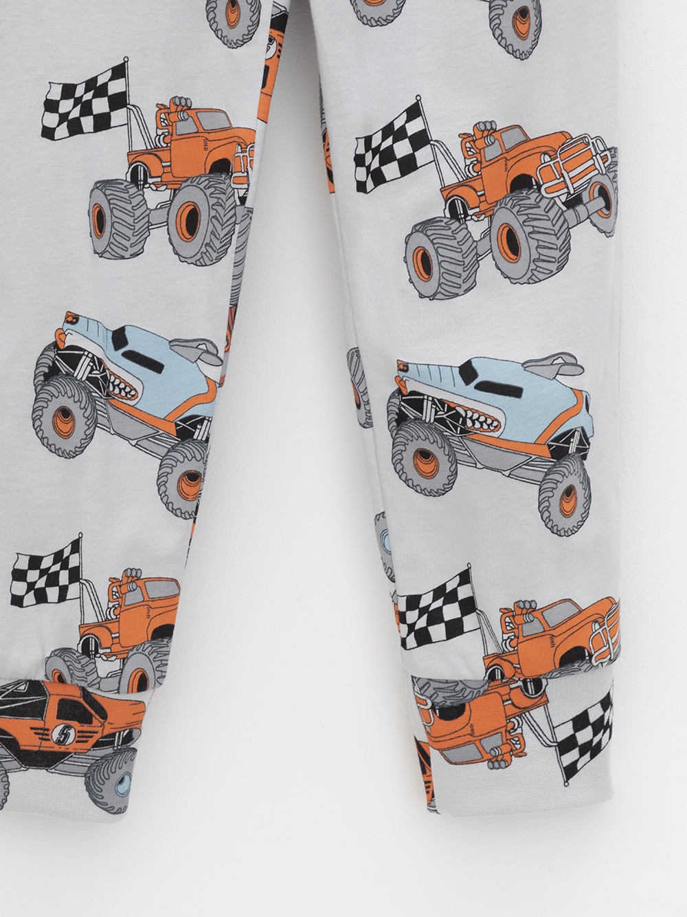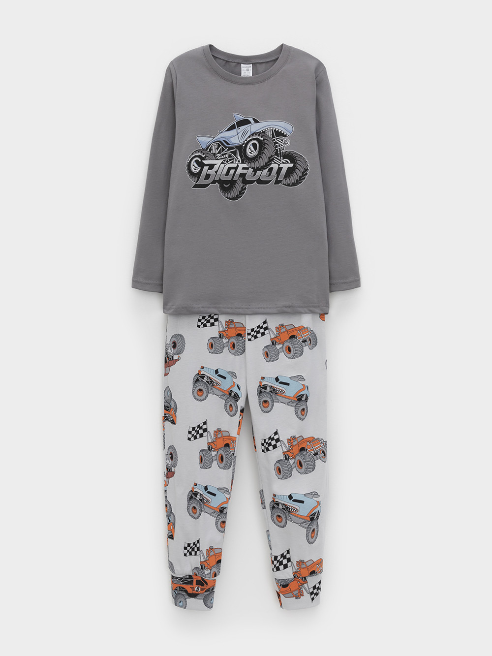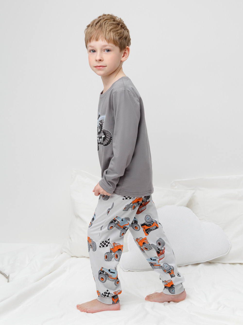Трикотажная пижама из натурального хлопка. Джемпер с длинными втачными рукавами и брюки с эластичной резинкой в поясе. Мягкие манжеты по низу брюк. Оригинальные набивка и принт выполнены из стойких гипоаллергенных текстильных гипоаллергенных красителей. Изделие сохраняет цвет и форму после многократных стирок. Все трикотажные полотна производятся в соответсвии с нормами швейцарского сертификата ЭкоТекс.