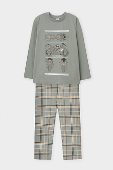 Трикотажный пижамный комплект из натурального хлопка. У джемпера длинные втачные рукава и эластичная мягкая горловина. Брюки с удобным поясом на резинке. Оригинальная набивка и принт выполнены из стойких, гипоаллергенных текстильных красителей. Все трикотажные полотна производятся в соответствии с нормами Швейцарского сертификата ЭкоТекс.