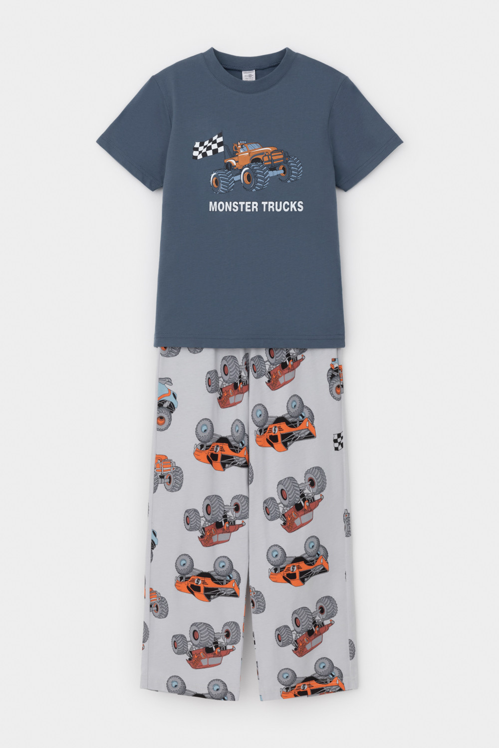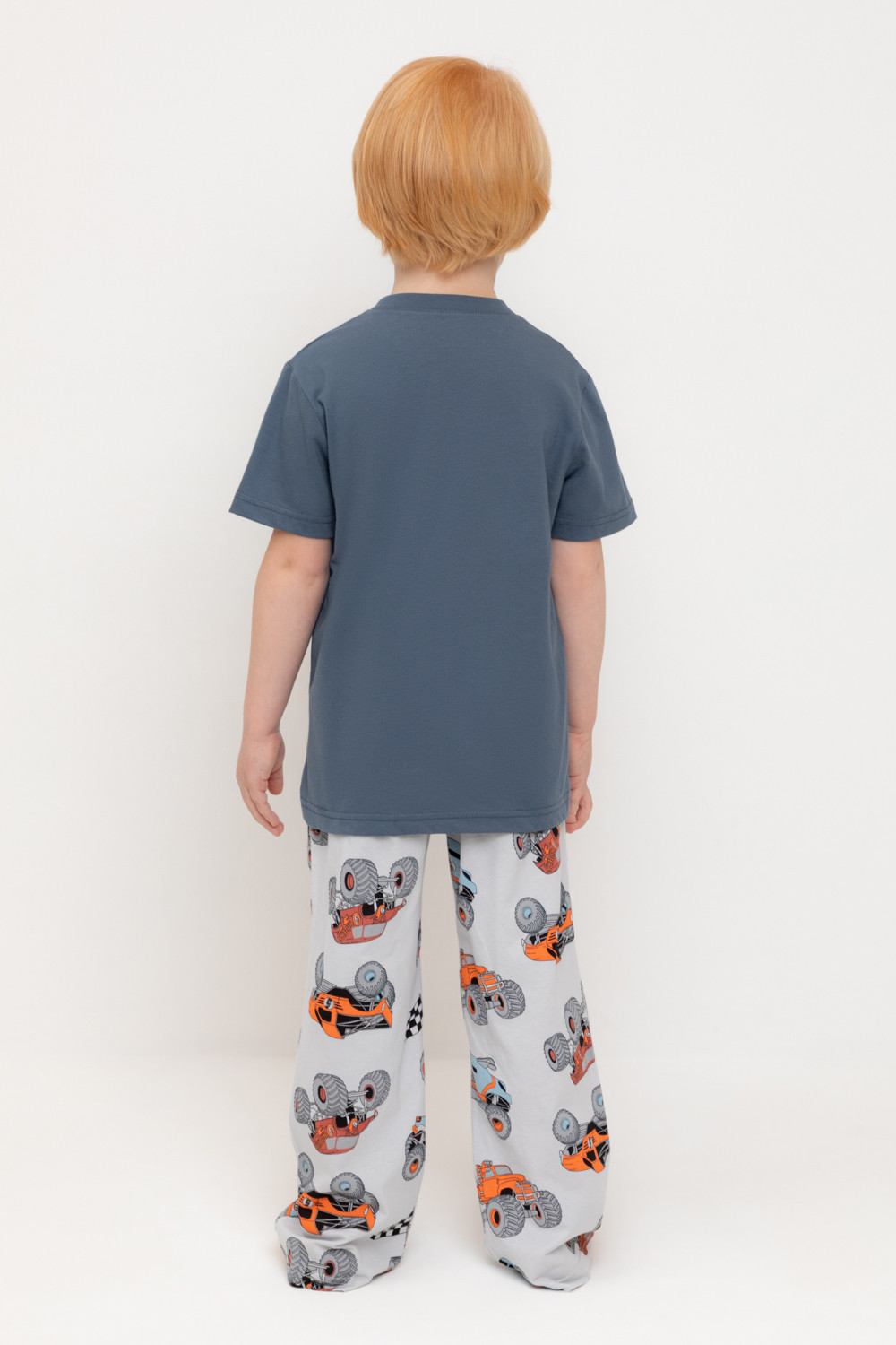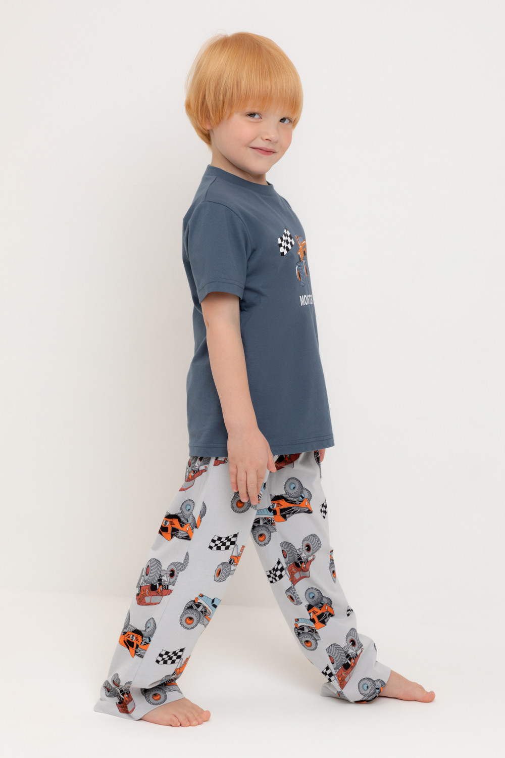 Трикотажная пижама из натурального хлопка. Футболка с короткими втачными рукавами и прямые брюки с эластичной резинкой в поясе. Оригинальные набивка и принт выполнены из стойких гипоаллергенных текстильных гипоаллергенных красителей. Изделие сохраняет цвет и форму после многократных стирок. Все трикотажные полотна производятся в соответсвии с нормами швейцарского сертификата ЭкоТекс.