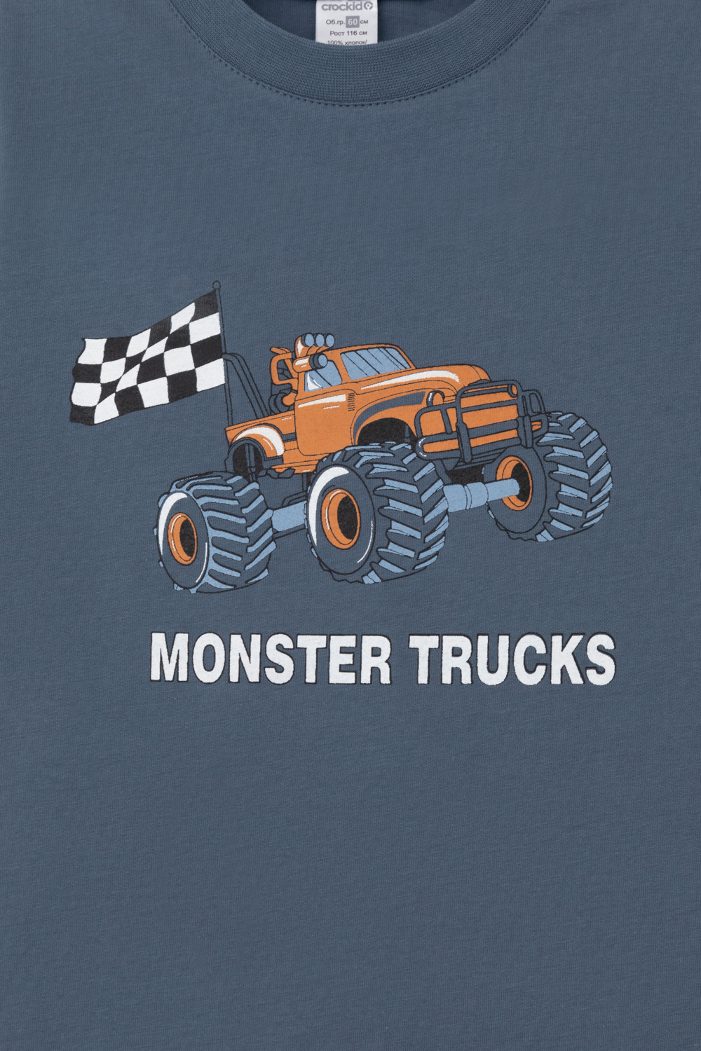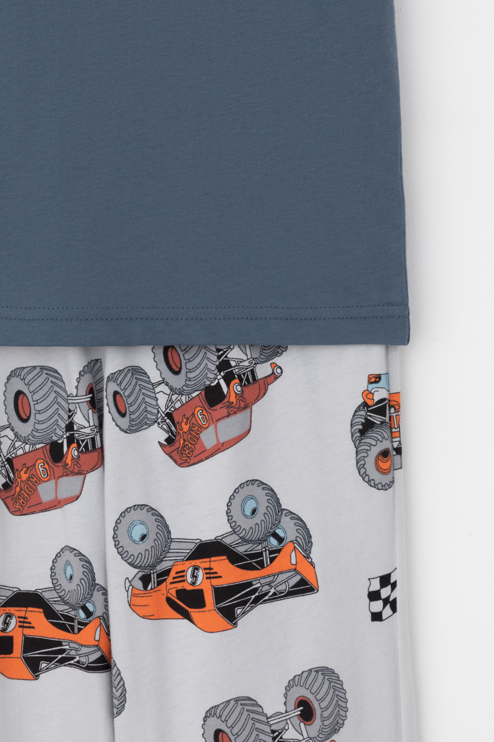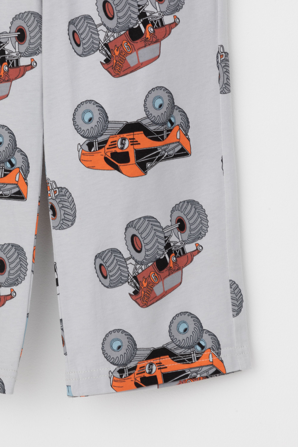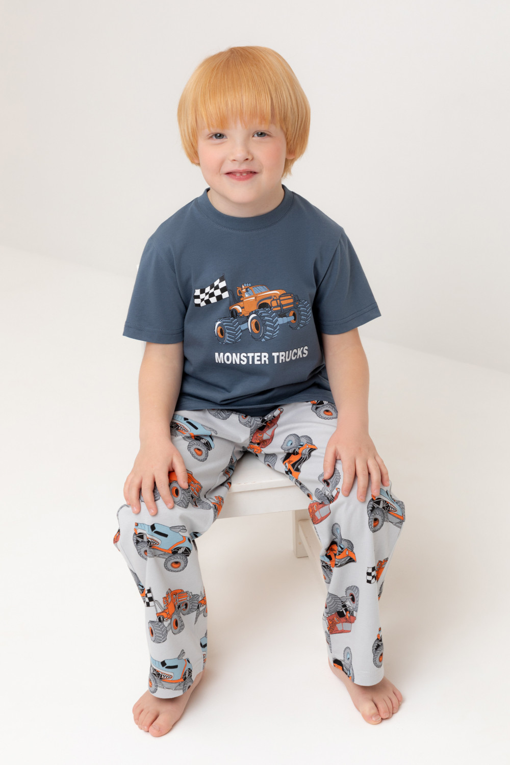 Трикотажная пижама из натурального хлопка. Футболка с короткими втачными рукавами и прямые брюки с эластичной резинкой в поясе. Оригинальные набивка и принт выполнены из стойких гипоаллергенных текстильных гипоаллергенных красителей. Изделие сохраняет цвет и форму после многократных стирок. Все трикотажные полотна производятся в соответсвии с нормами швейцарского сертификата ЭкоТекс.