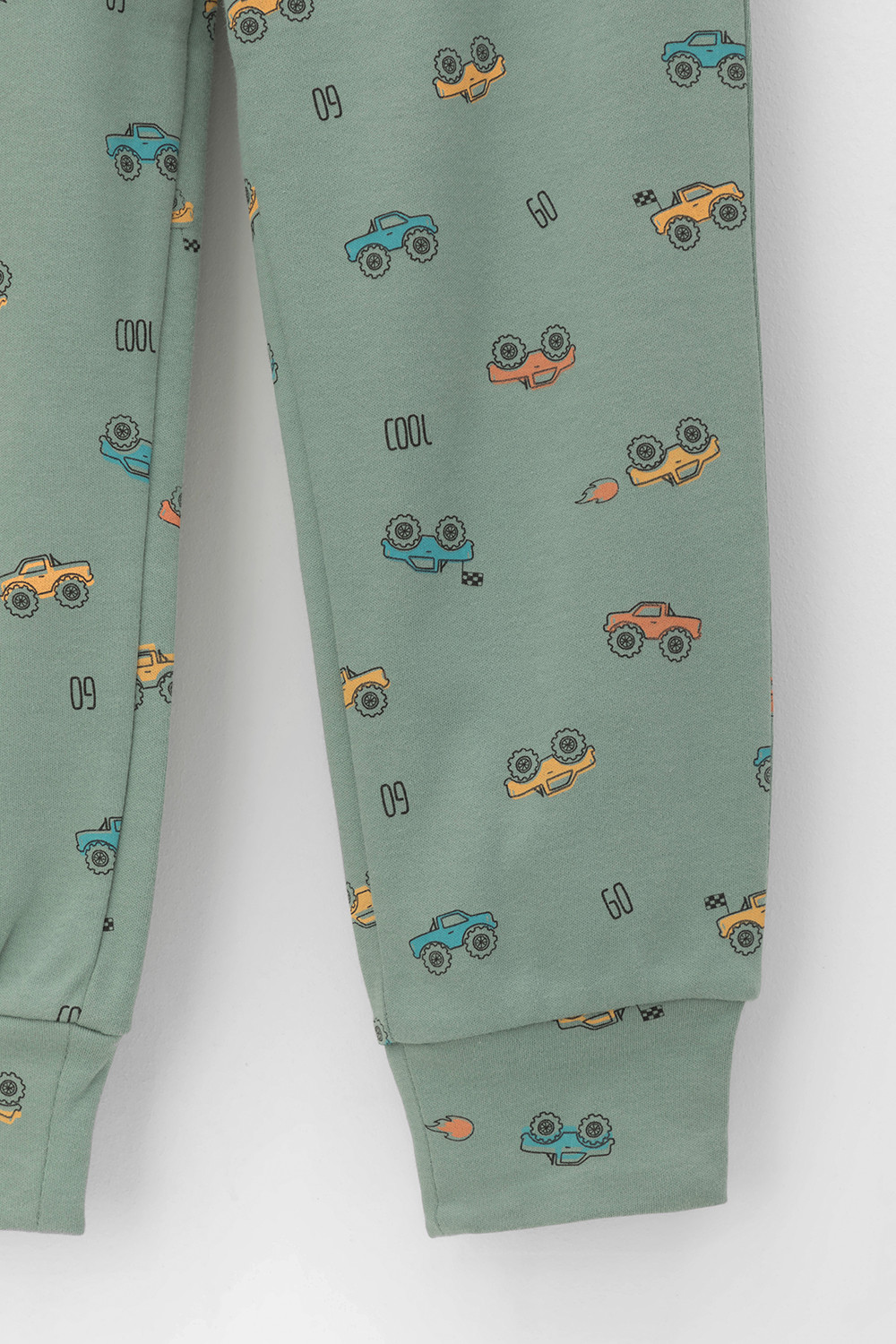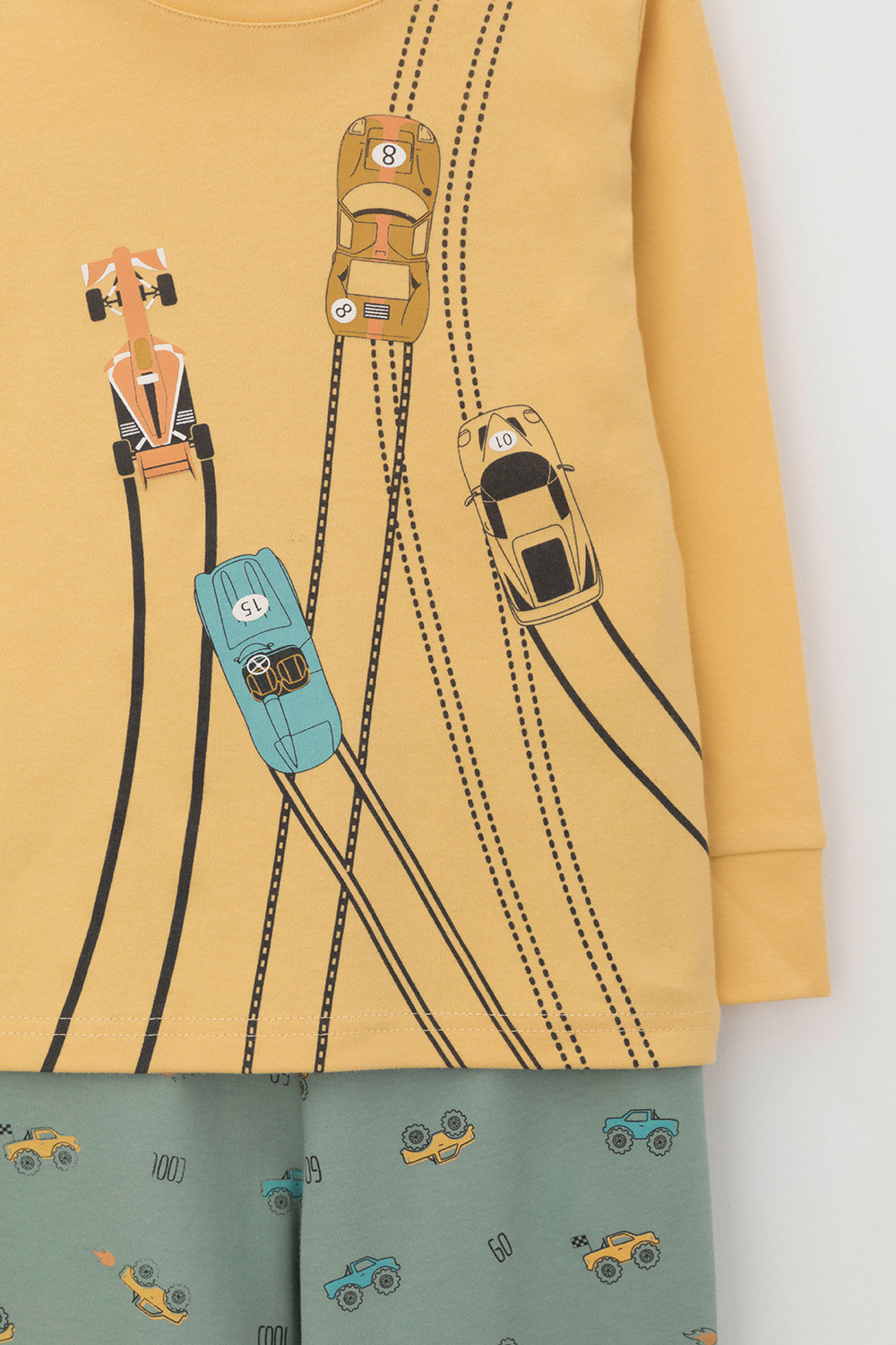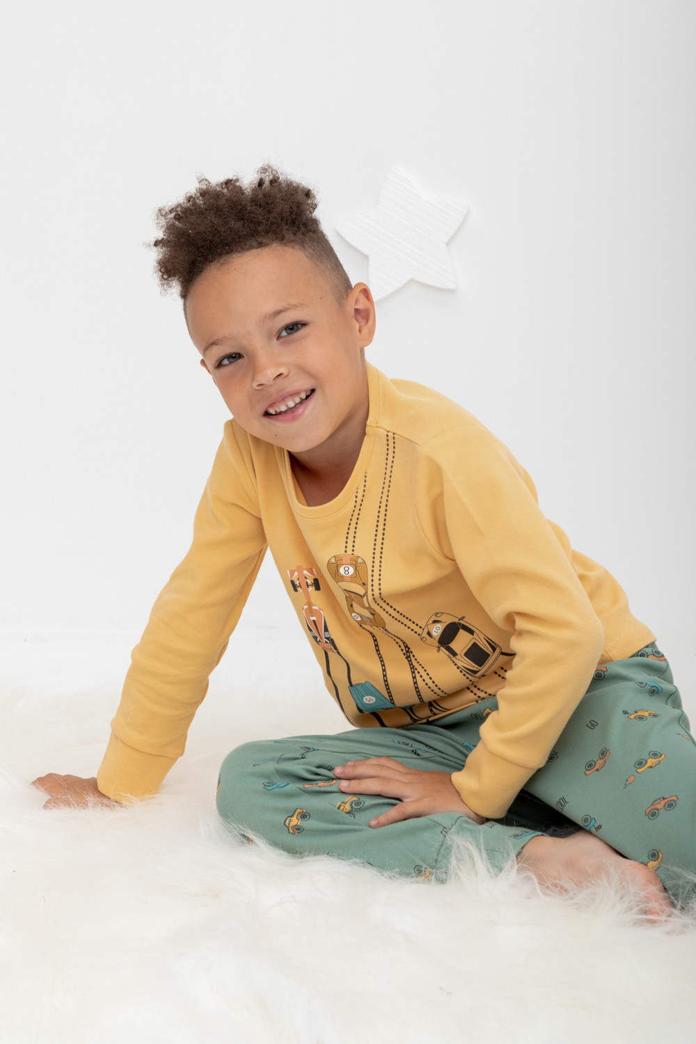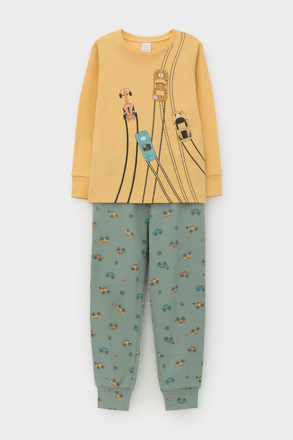 Трикотажная пижама из натурального хлопка. Джемпер с длинными рукавами с эластичными манжетами. У брюк эластичный пояс на резинке. Оригинальная набивка и принт выполнены из стойких, гипоаллергенных текстильных красителей. Пижама сохраняет цвет и форму после многократных стирок. Все трикотажные полотна производятся в соответствии с нормами Швейцарского сертификата ЭкоТекс.