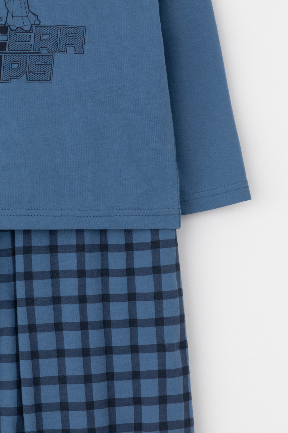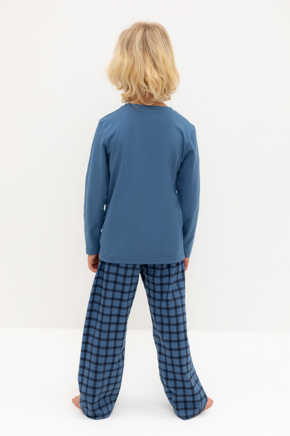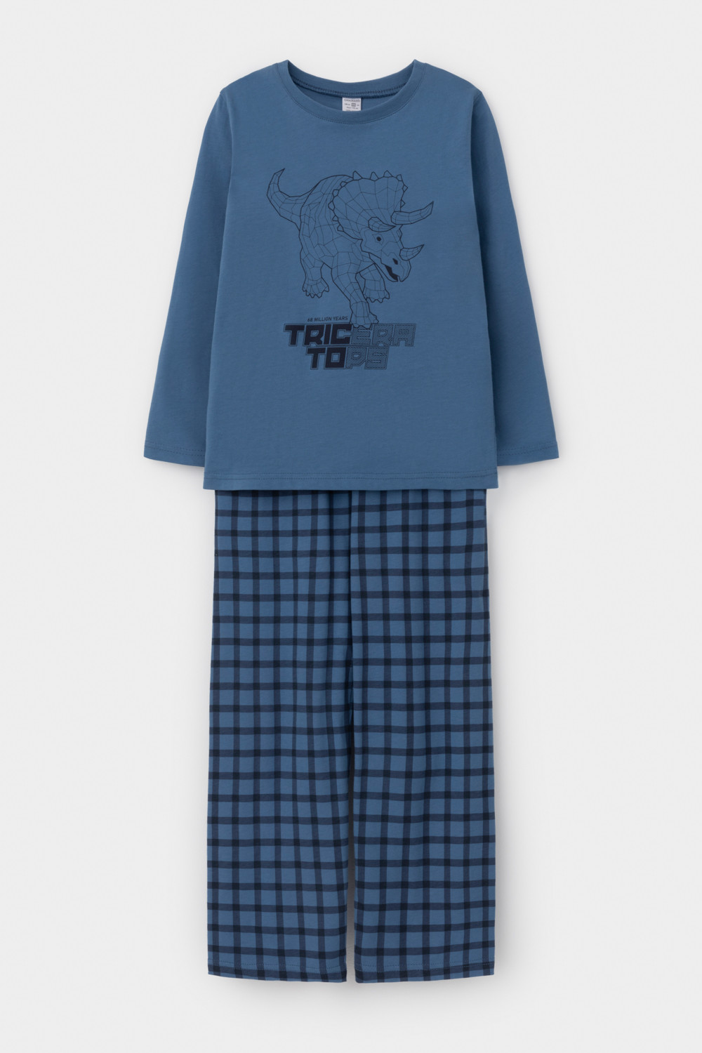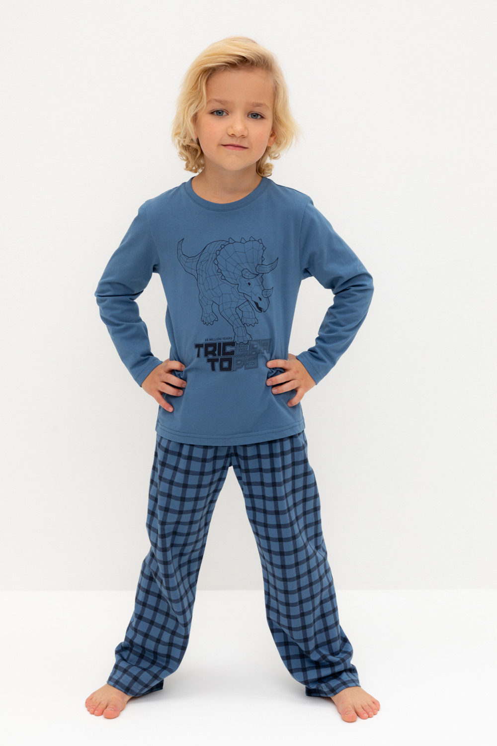 Трикотажная пижама из натурального хлопка. Джемпер с длинными втачными рукавами и прямые брюки с эластичной резинкой в поясе. Оригинальные набивка и принт выполнены из стойких гипоаллергенных текстильных гипоаллергенных красителей. Изделие сохраняет цвет и форму после многократных стирок. Все трикотажные полотна производятся в соответсвии с нормами швейцарского сертификата ЭкоТекс.