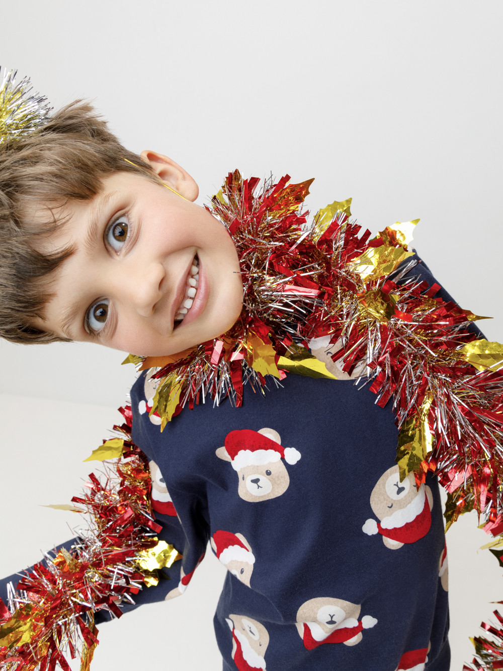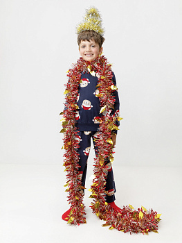 Новогодняя пижама из натурального хлопка.  Джемпер с длинными втачными рукавами и брюки с эластичной резинкой в поясе. Мягкие манжеты на рукавах и по низу брюк. Пижама отлично подойдёт для создания уютных домашних образов или в качестве подарка на Новый год и Рождество. Оригинальная набивка выполнена из стойких текстильных гипоаллергенных красителей. Изделие сохраняет цвет и форму после многократных стирок. Все трикотажные полотна производятся в соответствии с нормами швейцарского сертификата ЭкоТекс.