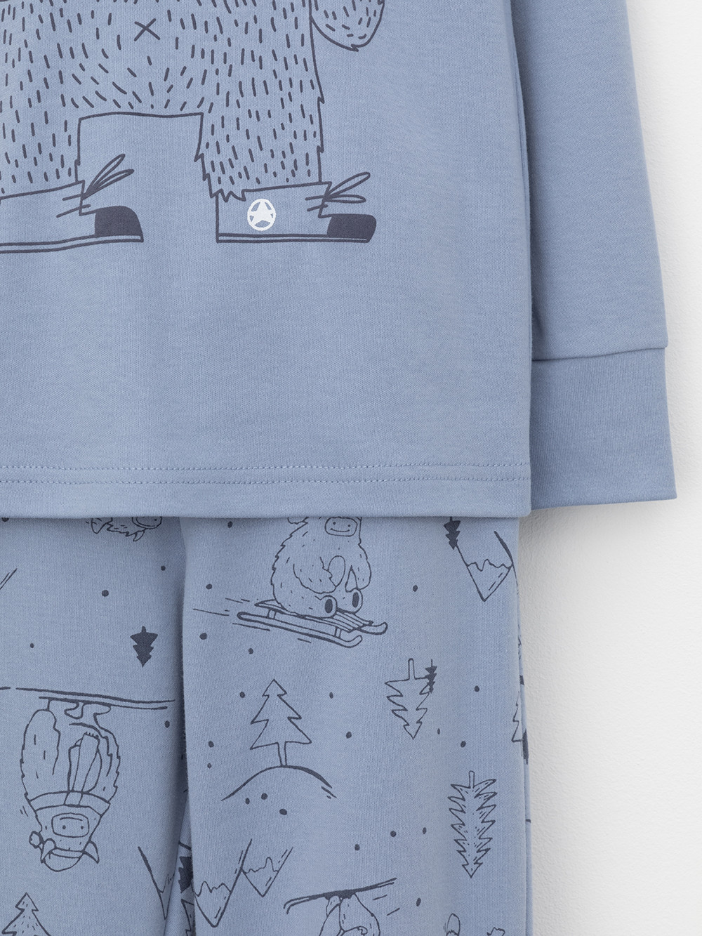 Трикотажная пижама из натурального хлопка. Джемпер с длинными втачными рукавами и брюки с эластичной резинкой в поясе. Мягкие манжеты на рукавах и по низу брюк. Оригинальная набивка и принт выполнены из стойких текстильных гипоаллергенных красителей. Изделие сохраняет цвет и форму после многократных стирок. Все трикотажные полотна производятся в соответствии с нормами швейцарского сертификата ЭкоТекс.