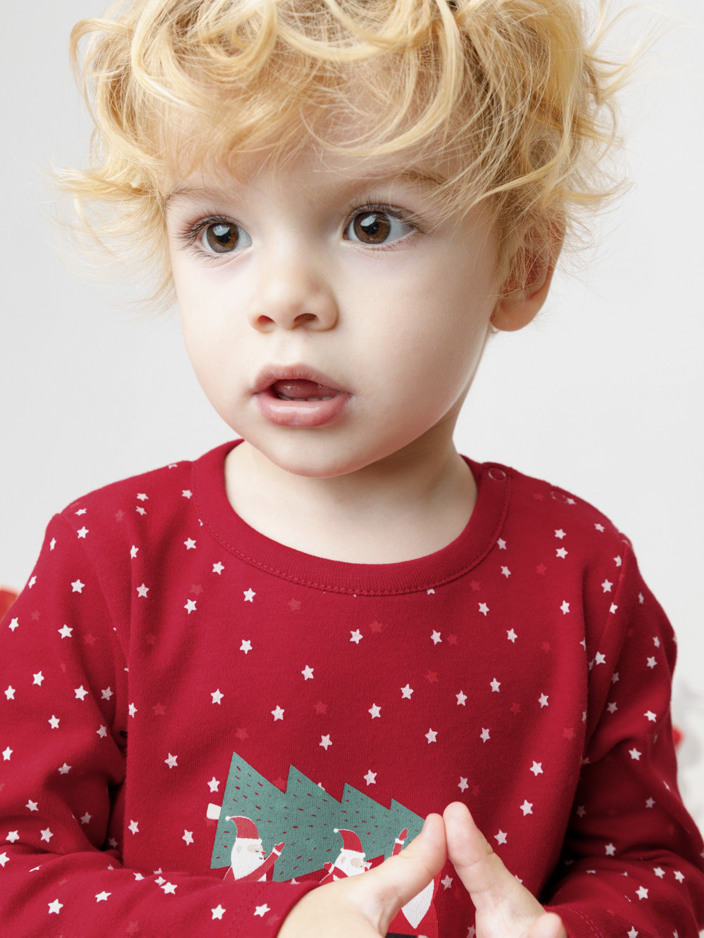Трикотажная пижама из натурального хлопка.  Джемпер с длинными втачными рукавами и брюки с эластичной резинкой в поясе. Отлично подойдёт для создания праздничных образов или в качестве подарка малышу на Новый год и Рождество. Джемпер застёгивается на кнопки. По низу брюк мягкие манжеты. Оригинальная набивка и принт выполнены из стойких текстильных гипоаллергенных красителей. Изделие сохраняет цвет и форму после многократных стирок. Все трикотажные полотна производятся в соответствии с нормами швейцарского сертификата ЭкоТекс.