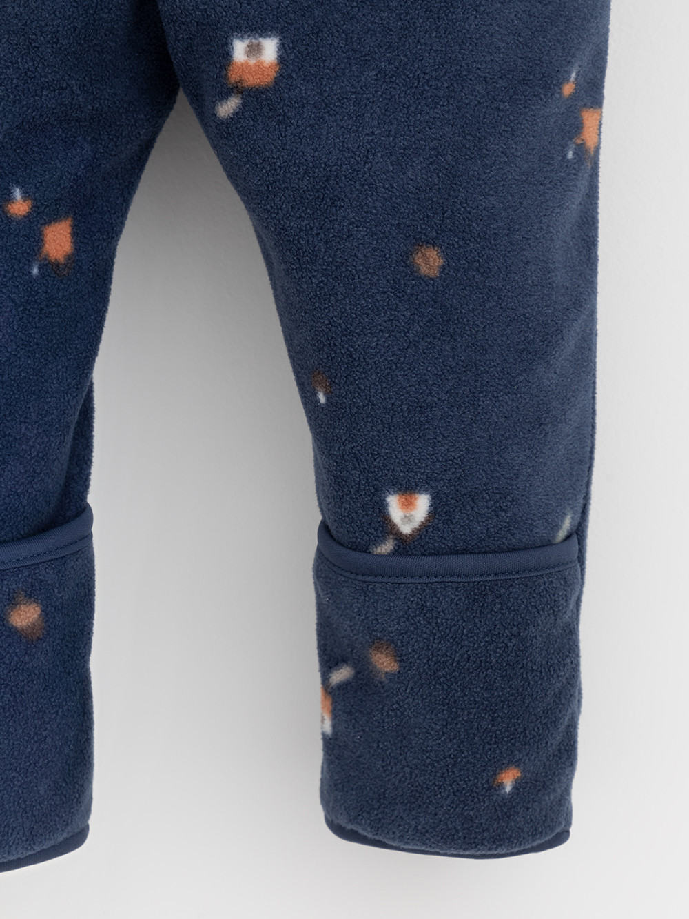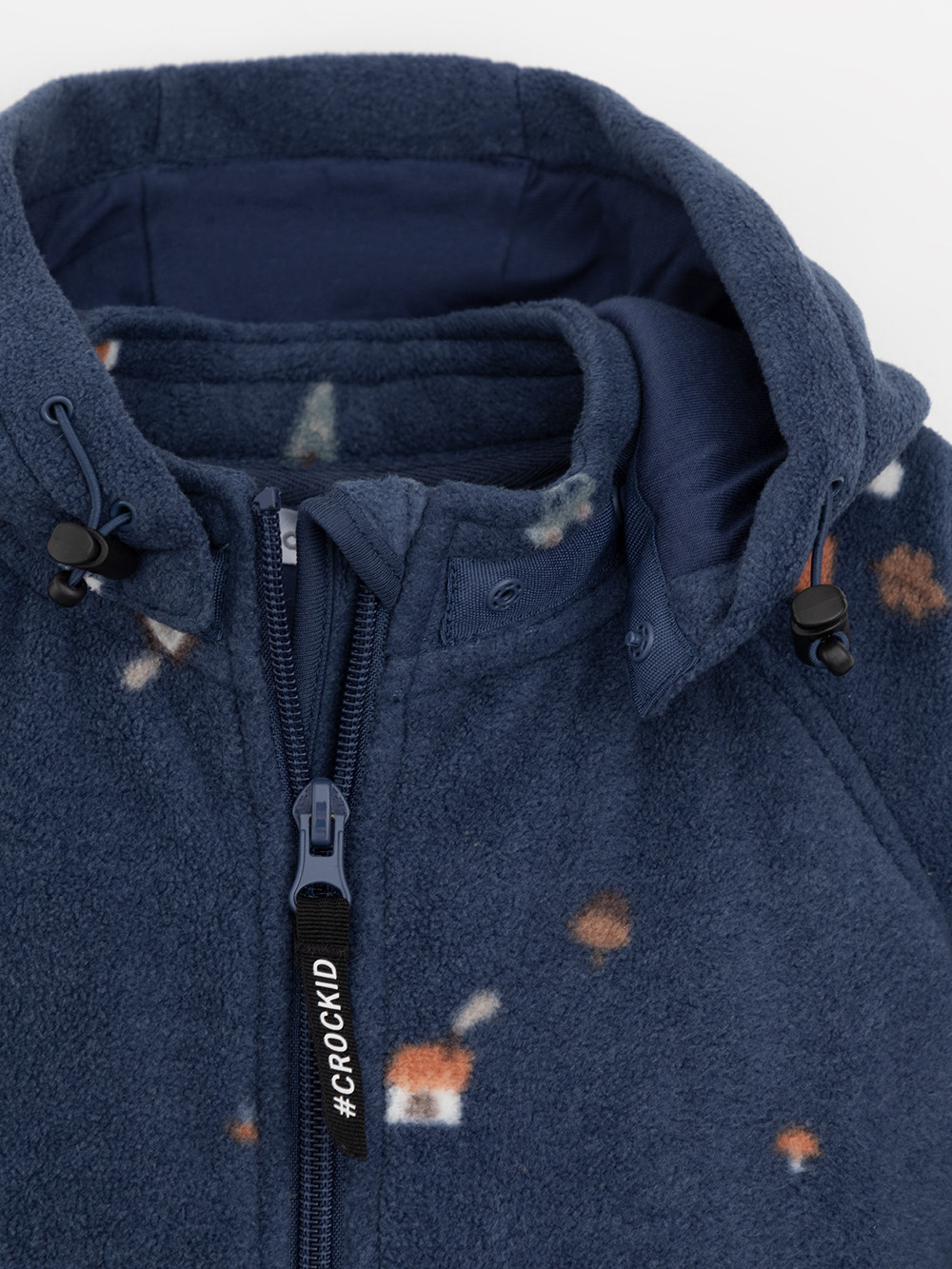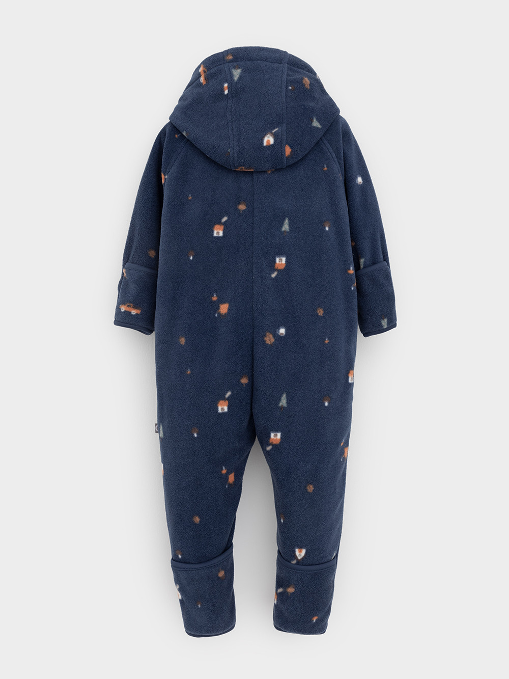 Флисовый комбинезон для мальчика со съёмным капюшоном. Капюшон регулируется по ширине с помощью эластичной утяжки со стопперами. Подклад выполнен из гладкого трикотажа супрем, произведённого из высококачественного натурального хлопка. Застёгивается на удлинённую молнию с мягкой защитой шеи и подбородка. В размерах 62, 68 и 74 на рукавах и ножках есть отвороты. Оригинальная набивка выполнена из стойких гипоаллергенных текстильных красителей. Комбинезон сохраняет цвет и форму после многократных стирок.