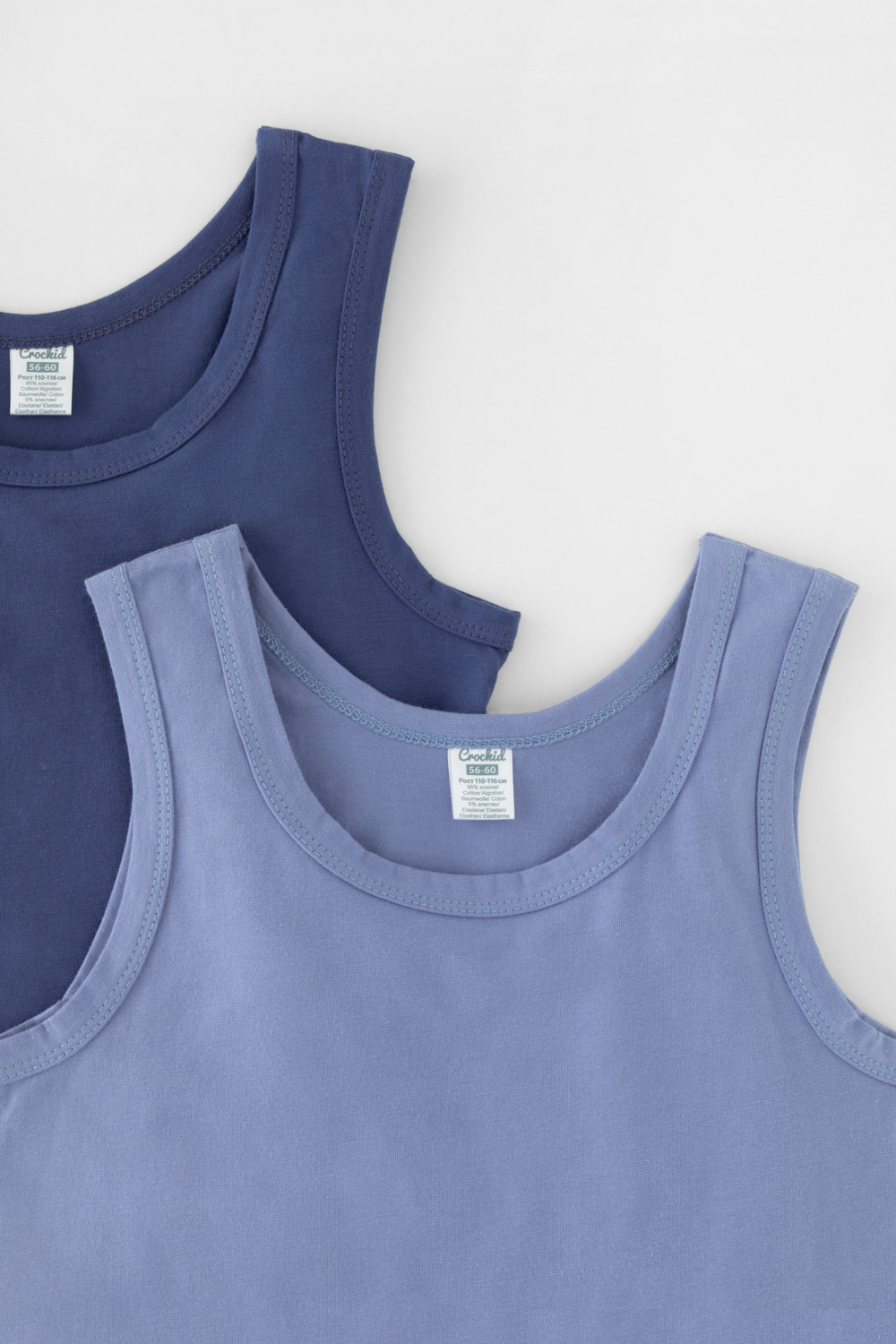 Трикотажные майки в комплекте 2 шт на лямках из натурального хлопка с добавлением эластана. Изделие сохраняет цвет и форму после многократных стирок. Все трикотажные полотна производятся в соответсвии с нормами Швейцарского сертификата ЭкоТекс.