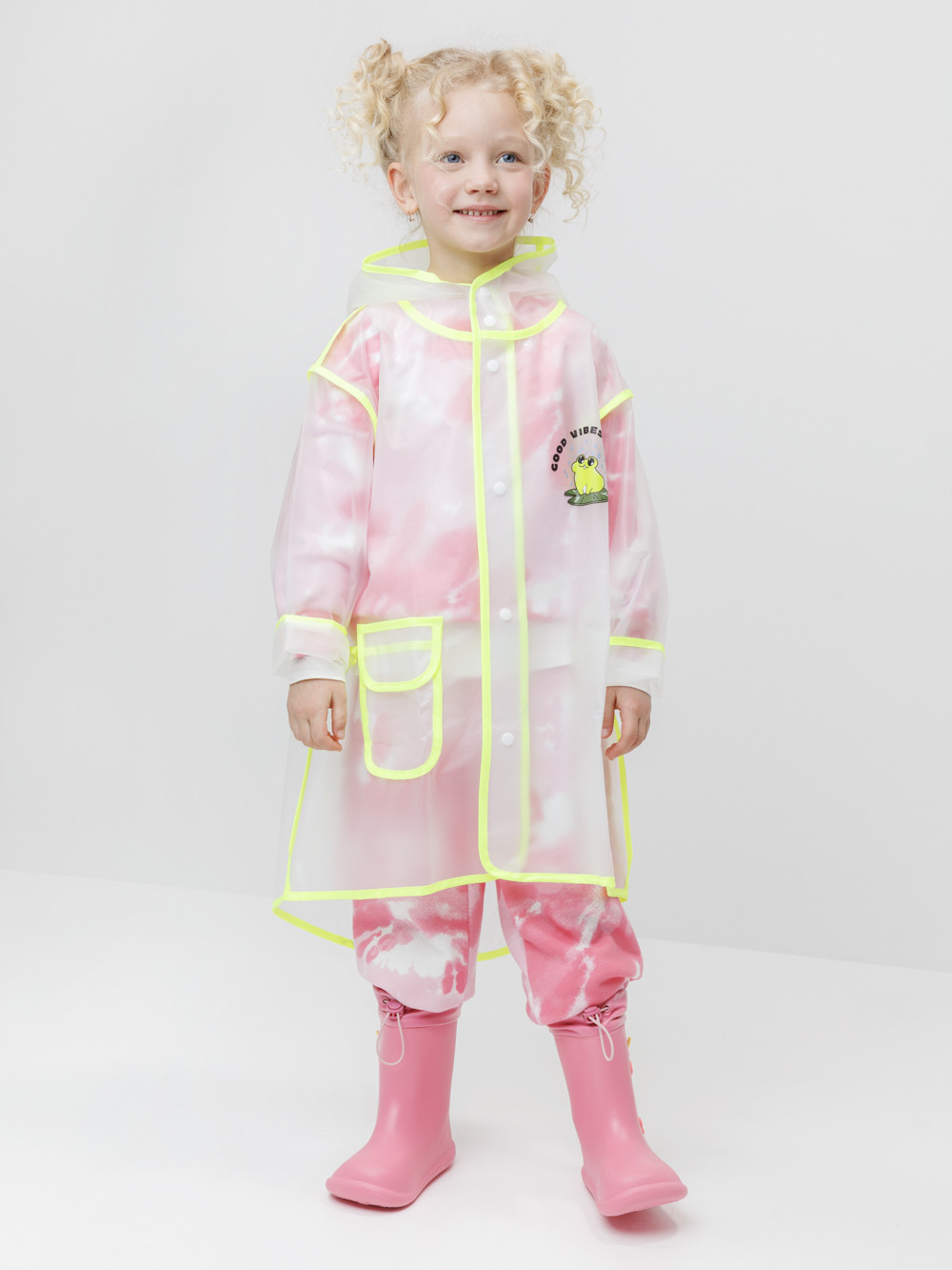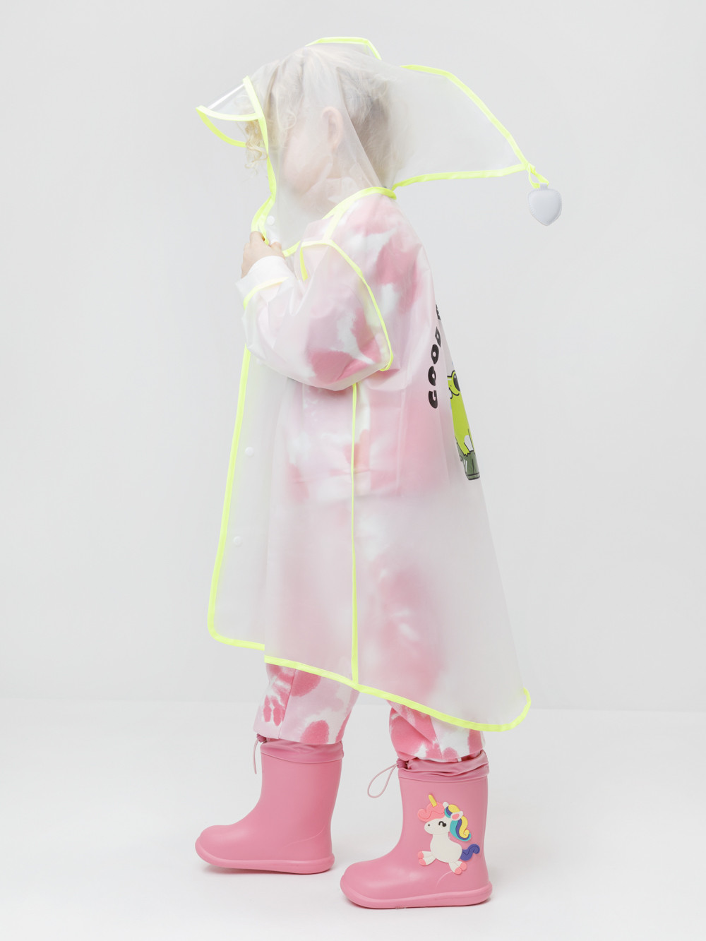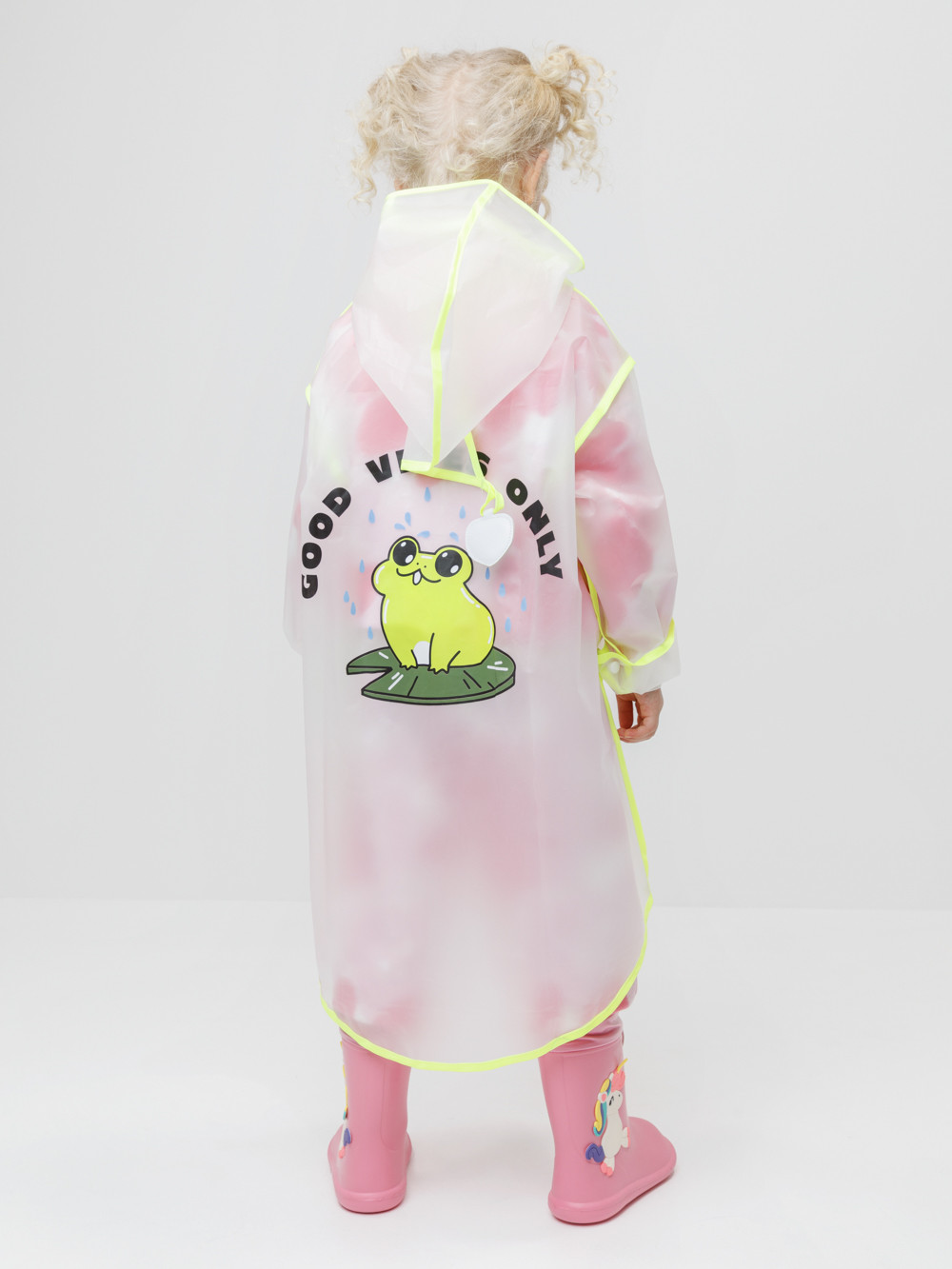 Лёгкий водонепроницаемый дождевик с капюшоном. Выполнен из плотного износостойкого материала ЭВА. В дождливую погоду защищает одежду ребёнка от влаги и грязи, помогая ей оставаться сухой и чистой. Спереди застёгивается на кнопки. Сбоку предусмотрен кармашек для мелочей. Украшен яркой окантовкой и забавным принтом. Свободный крой подходит для детей с разным типом телосложения. Дождевик упакован в удобный мешочек для хранения, поэтому его легко взять с собой на прогулку, в детский сад или в школу.