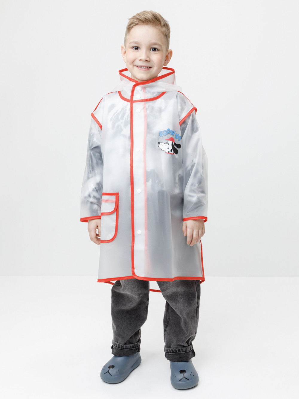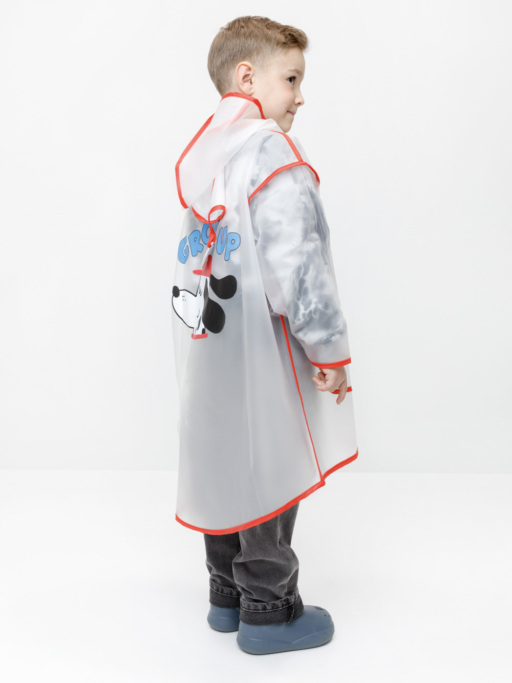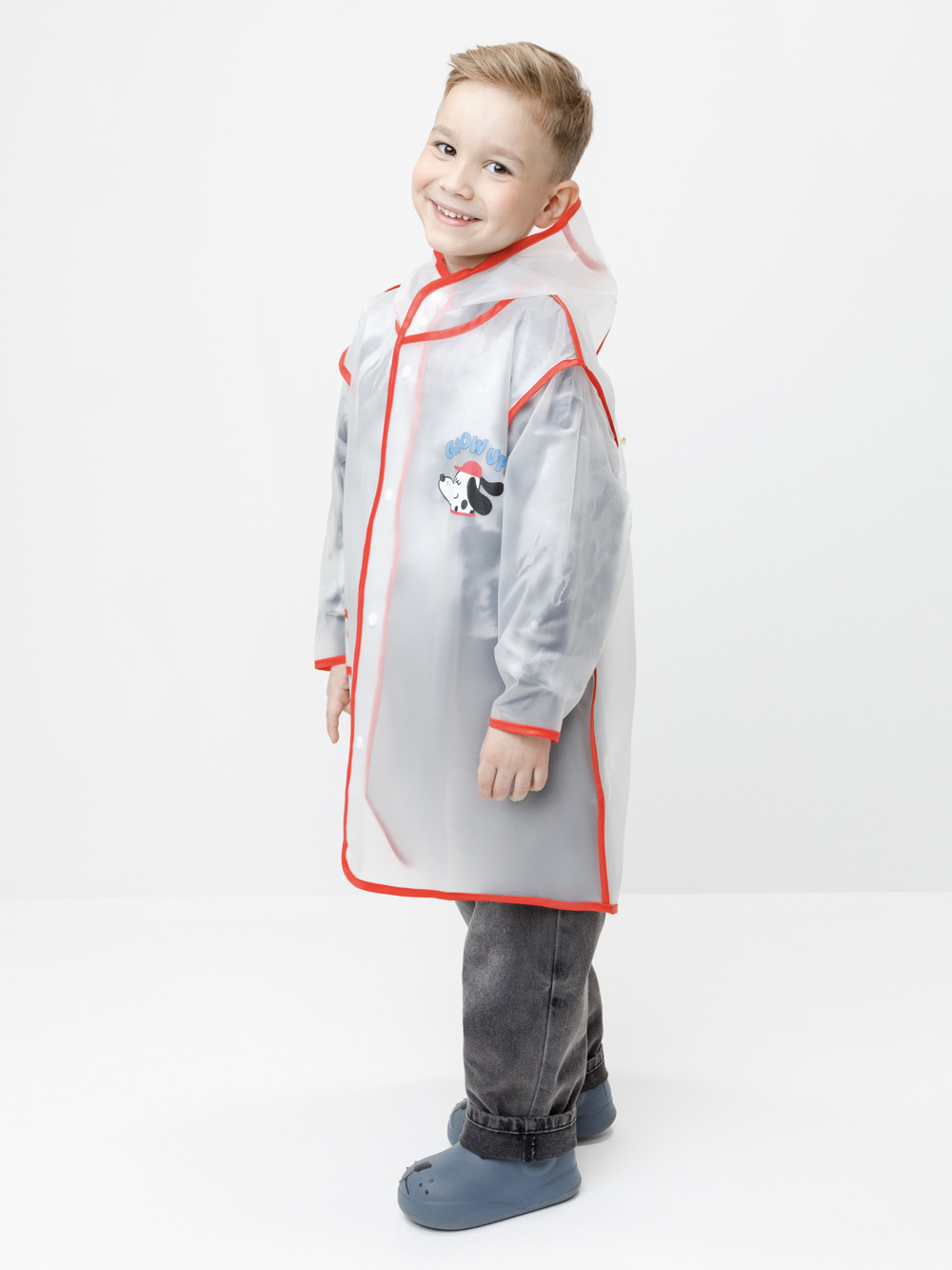 Лёгкий водонепроницаемый дождевик с капюшоном. Выполнен из плотного износостойкого материала ЭВА. В дождливую погоду защищает одежду ребёнка от влаги и грязи, помогая ей оставаться сухой и чистой. Спереди застёгивается на кнопки. Сбоку предусмотрен кармашек для мелочей. Украшен яркой окантовкой и забавным принтом. Свободный крой подходит для детей с разным типом телосложения. Дождевик упакован в удобный мешочек для хранения, поэтому его легко взять с собой на прогулку, в детский сад или в школу.