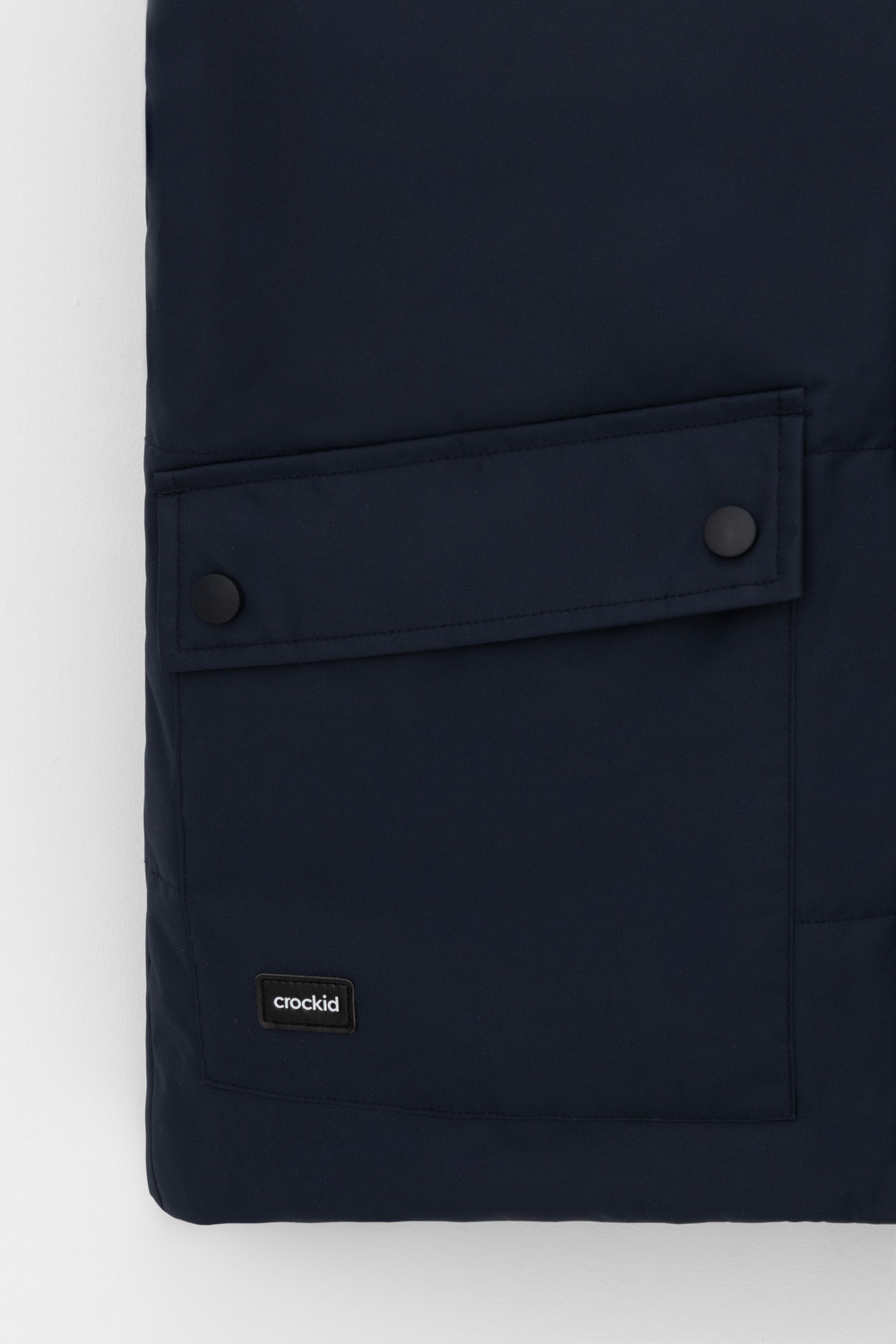 Стеганый жилет с капюшоном для мальчика с утеплителем Fellex®: 120 г/м2. Выполнен из мембранной ткани с дополнительной тефлоновой обработкой. Данный вид обработки предохраняет изделие от загрязнения и лучше отводит влагу. Подклад из 100% полиэстра. У изделия предусмотрена защита подбородка. Капюшон утягивается при помощи эластичного шнура со стопперами. Накладные карманы с клапанами на кнопках. Во всех изделиях верхнего ассортимента для безопасности ребенка предусмотрены светоотражающие элементы.