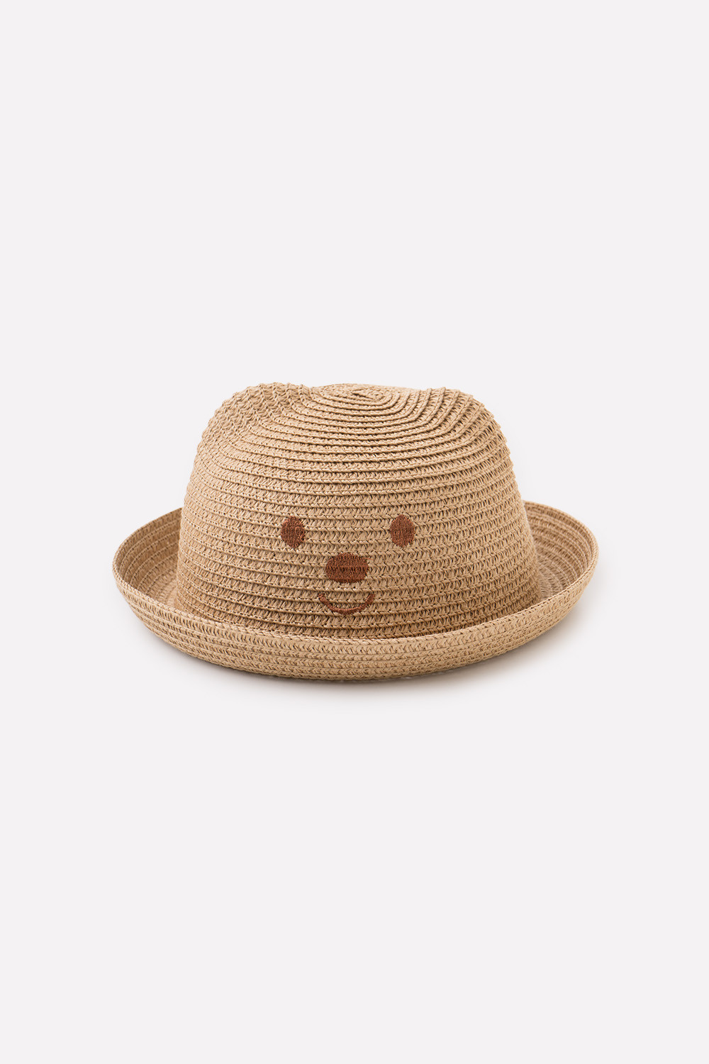 Модная соломенная шляпа с короткими полями и декоративными ушками. Спереди украшена очаровательным принтом в виде мордочки медвежонка. Защищает голову от солнца и хорошо подходит для тёплой и жаркой погоды. Натуральный материал пропускает воздух и позволяет коже дышать. Легко очищается влажной мягкой щёткой или губкой.