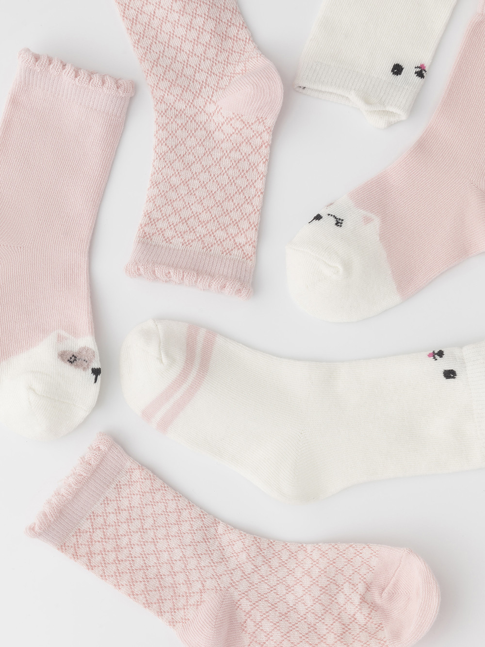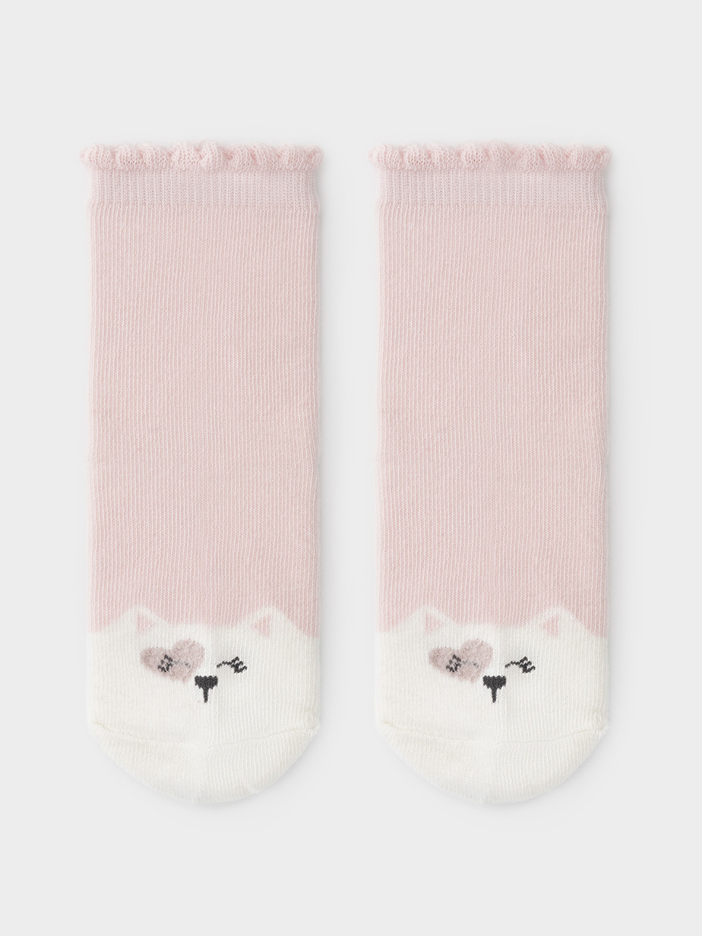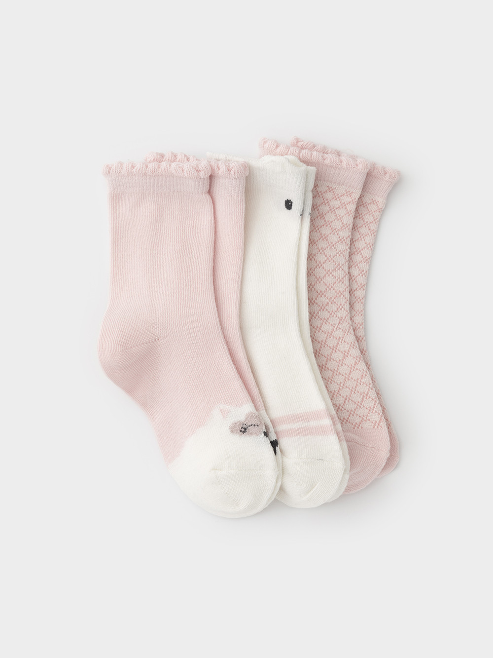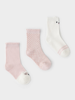 Носки с формованной пяткой и эластичной резинкой по краю. Украшены рисунком и объёмными элементами. В комплекте 3 пары. Изделия сохраняют форму и стойкий цвет после многочисленных стирок.